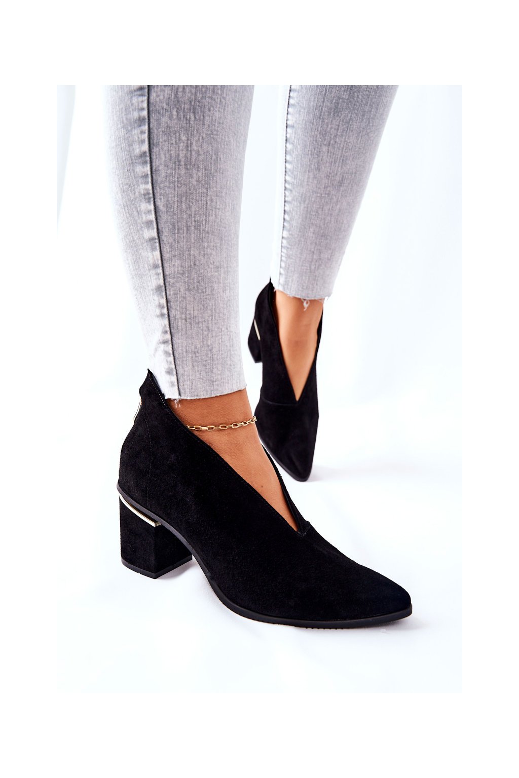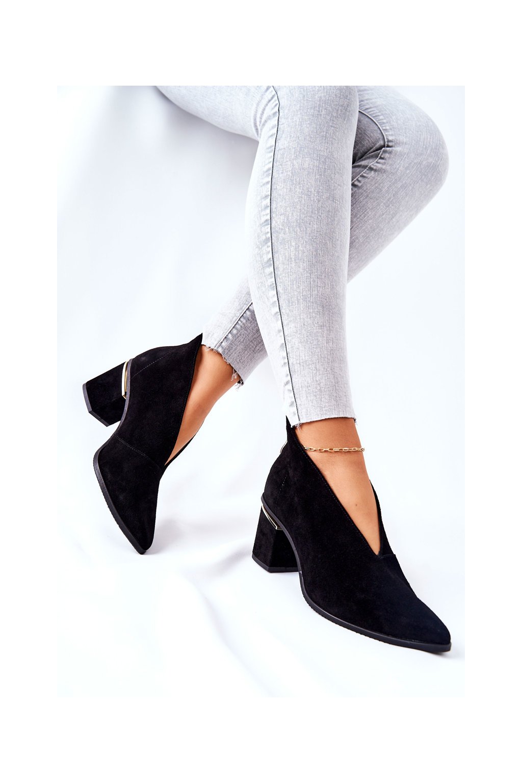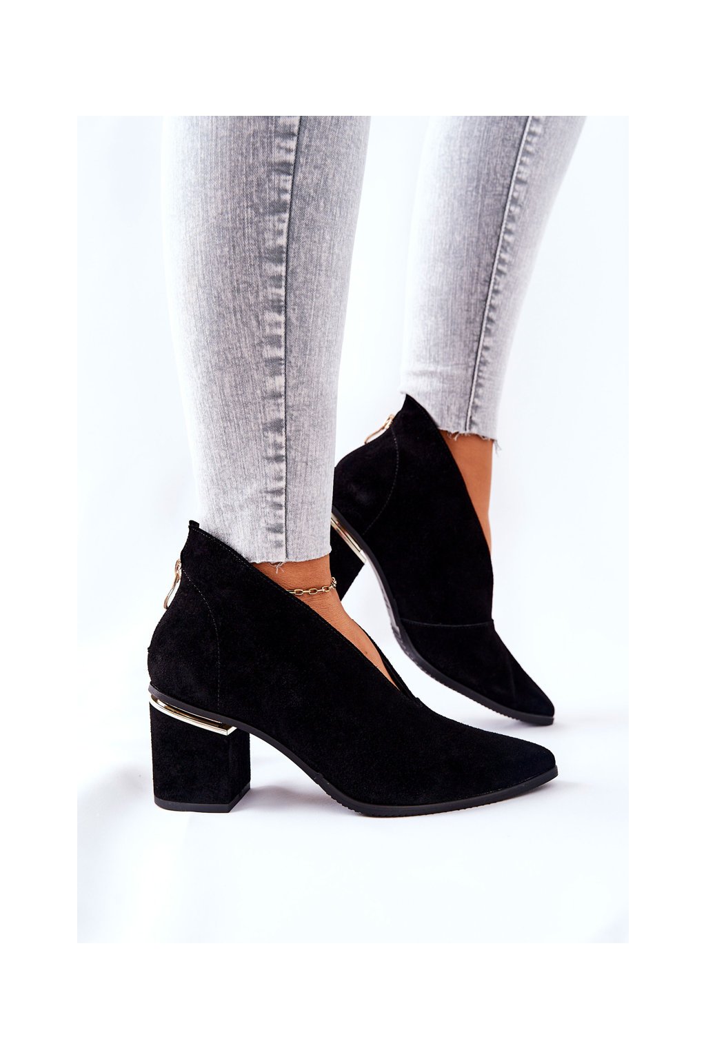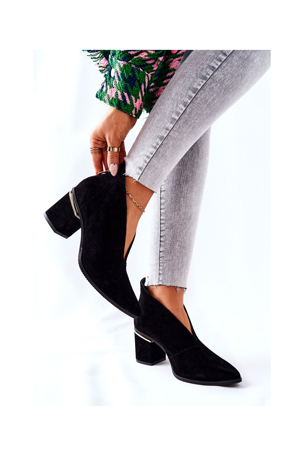 Čierne dámske kožené členkové topánky na podpätku Laura Messi 2344 500 BLK