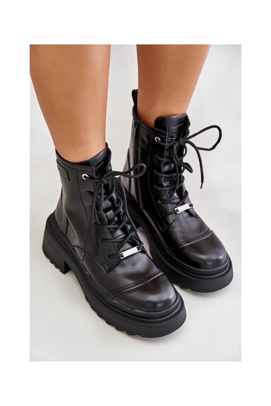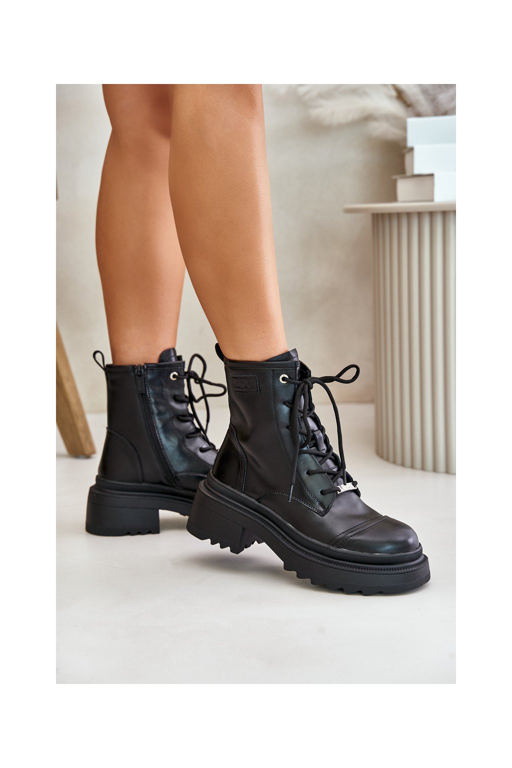 Sú vyrobené z prírodnej kože, majú platformu a plochý podpätok, čo zaručuje pohodlie a istotu pri vašom kroku. Vďaka kombinácii zipsu a šnurovania sa ľahko prispôsobia vašej nohe. Zaoblená špička dodáva jemnú eleganciu, vďaka čomu sa tieto topánky skvele hodia na každodenné nosenie. Pri výbere veľkosti sa riaďte tabuľkou veľkostí.