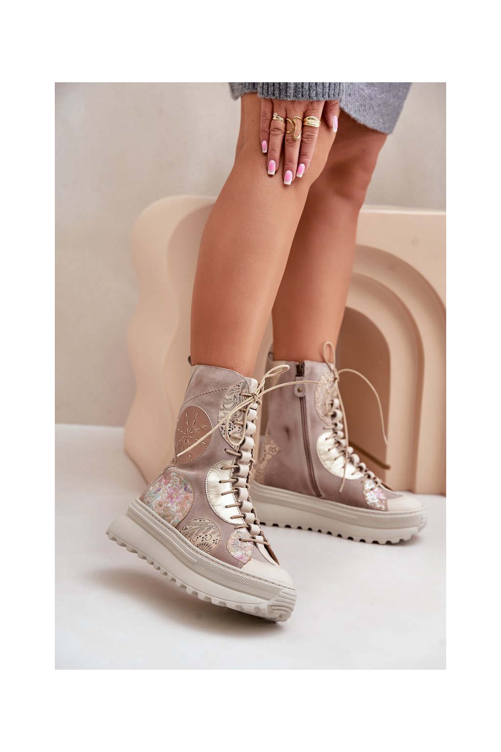 Béžové dámske semišové členkové topánky na plošine Maciejka, kód produktu 06565-04/00-8 BEŻ