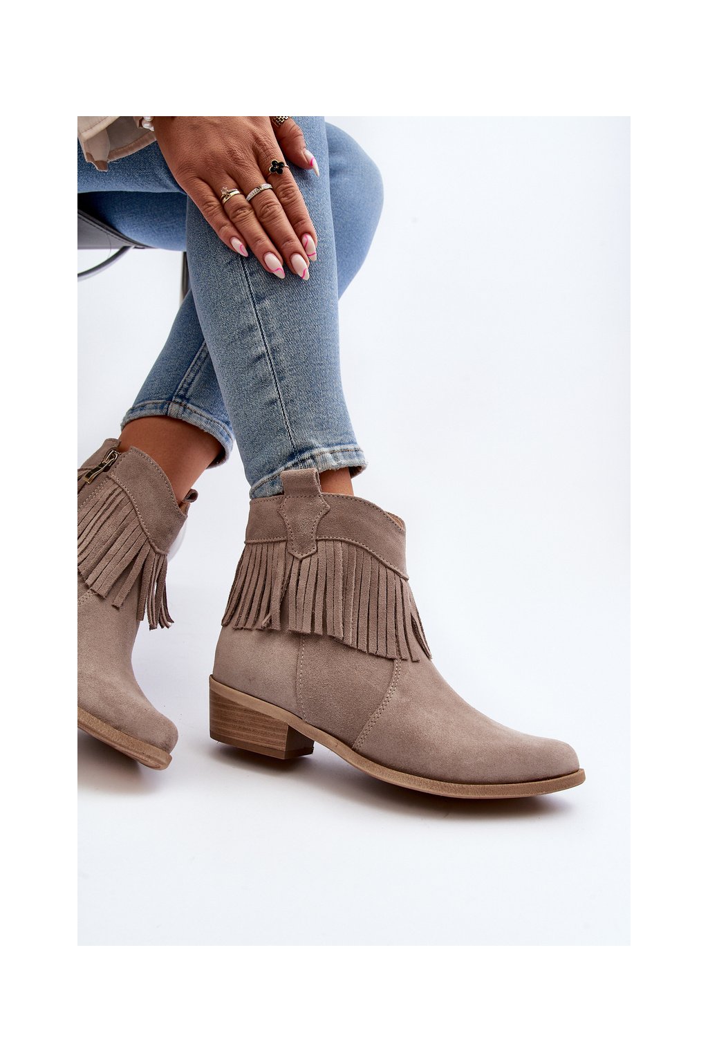 Zazoo 3430 Dámské zamszové botky s řemínky Cappucino