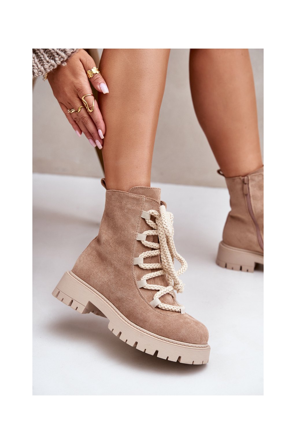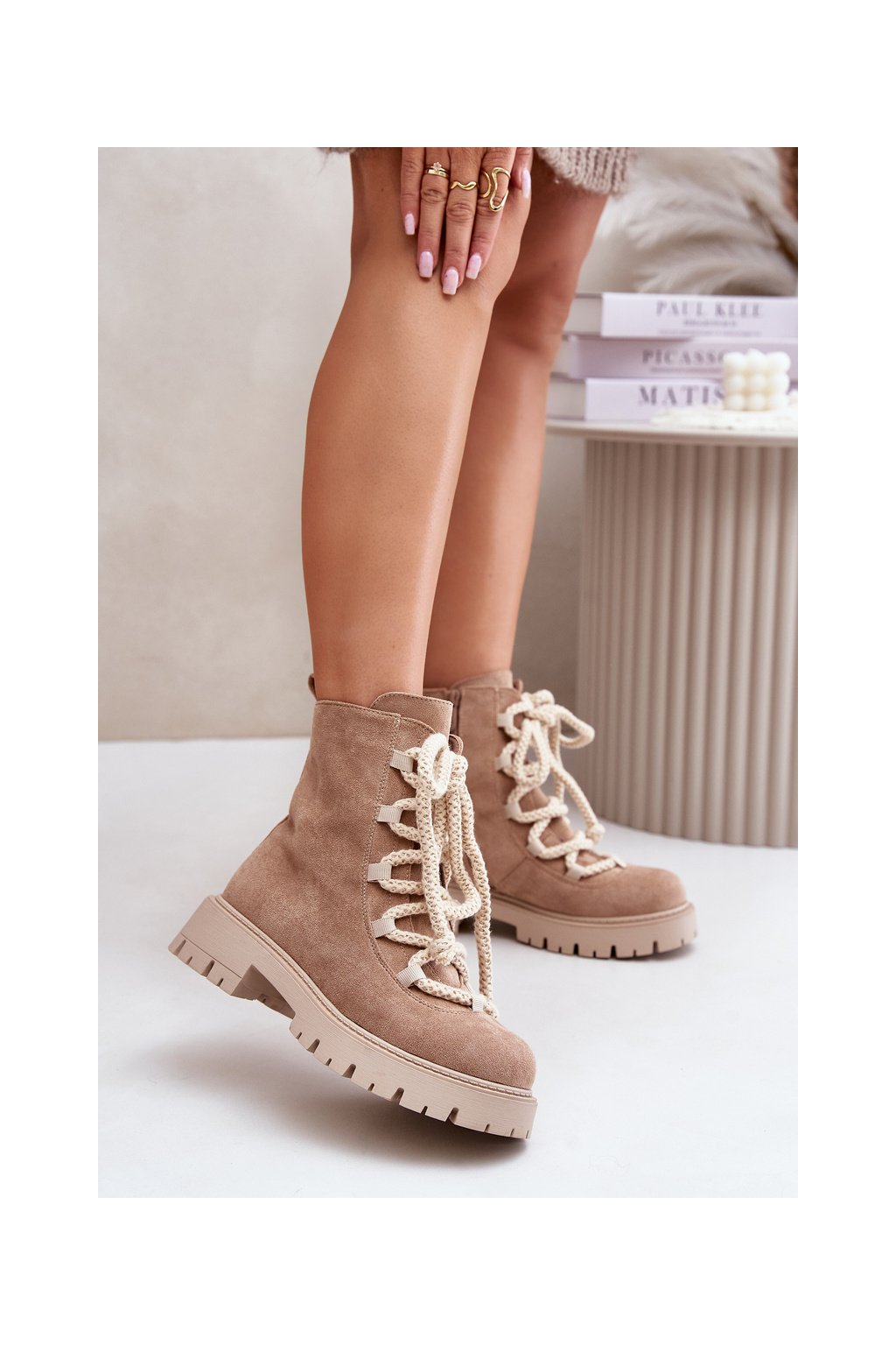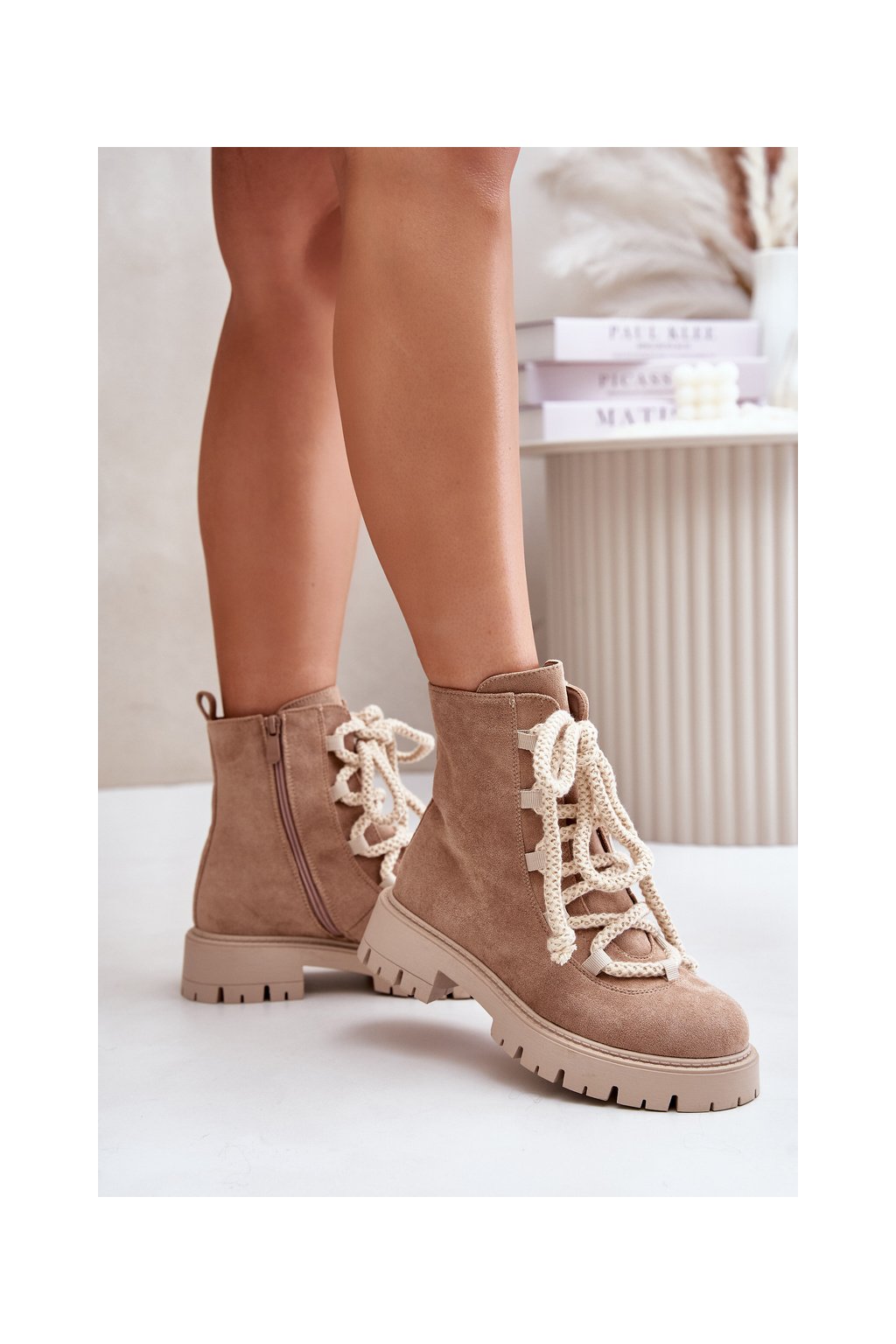 Béžové dámske členkové topánky z eko semišu na rovnej podrážke s zipsom, kód produktu NS539P KHAKI