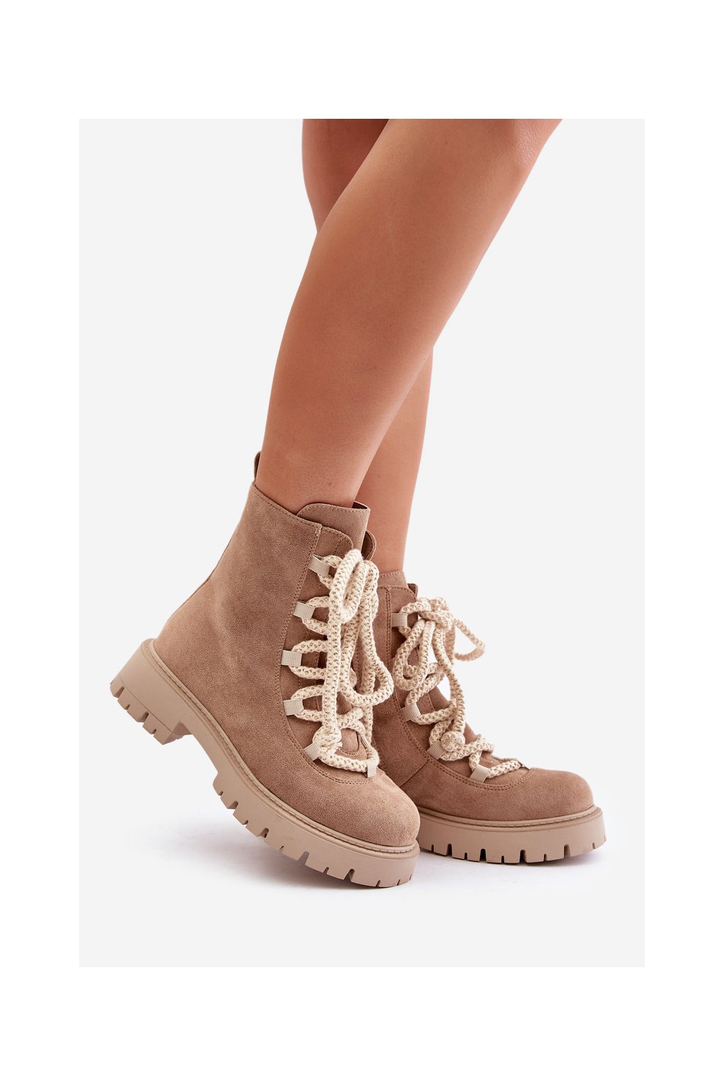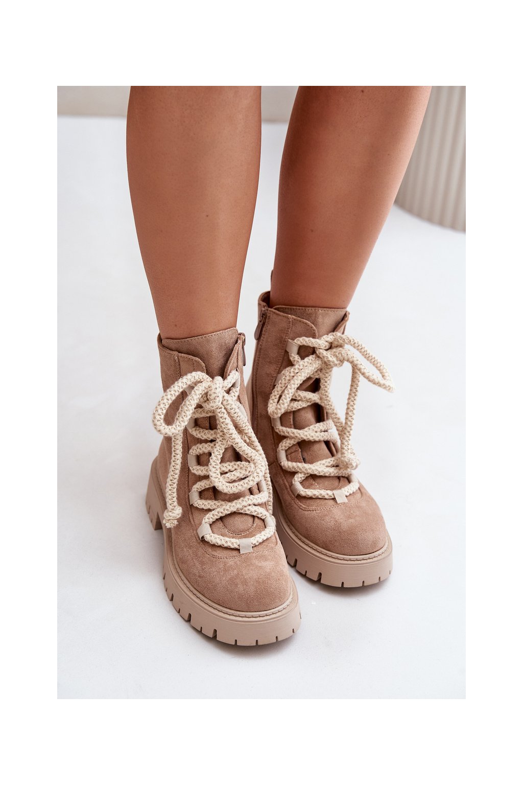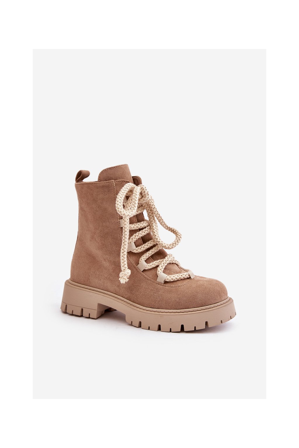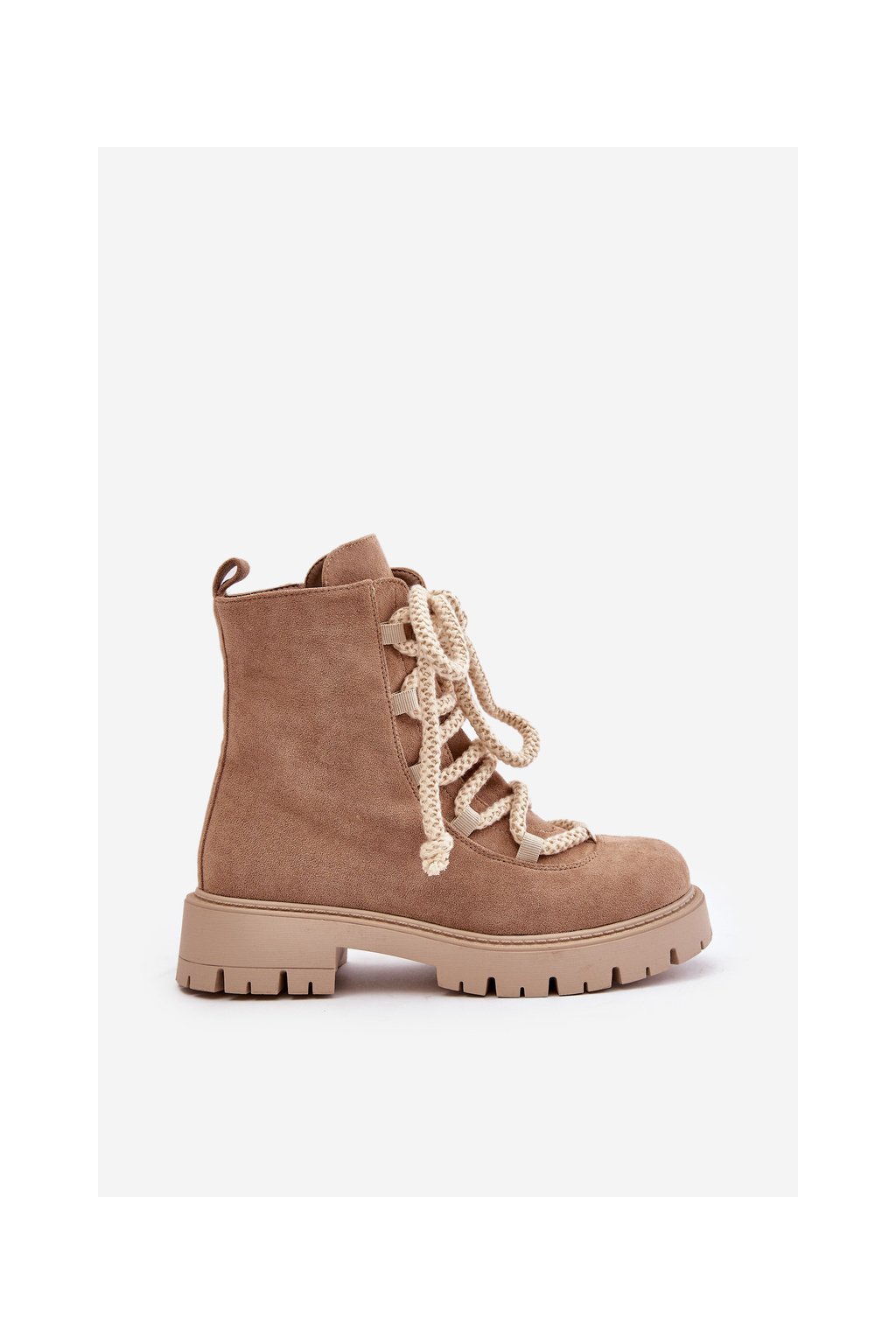 Béžové dámske členkové topánky z eko semišu na rovnej podrážke s zipsom, kód produktu NS539P KHAKI