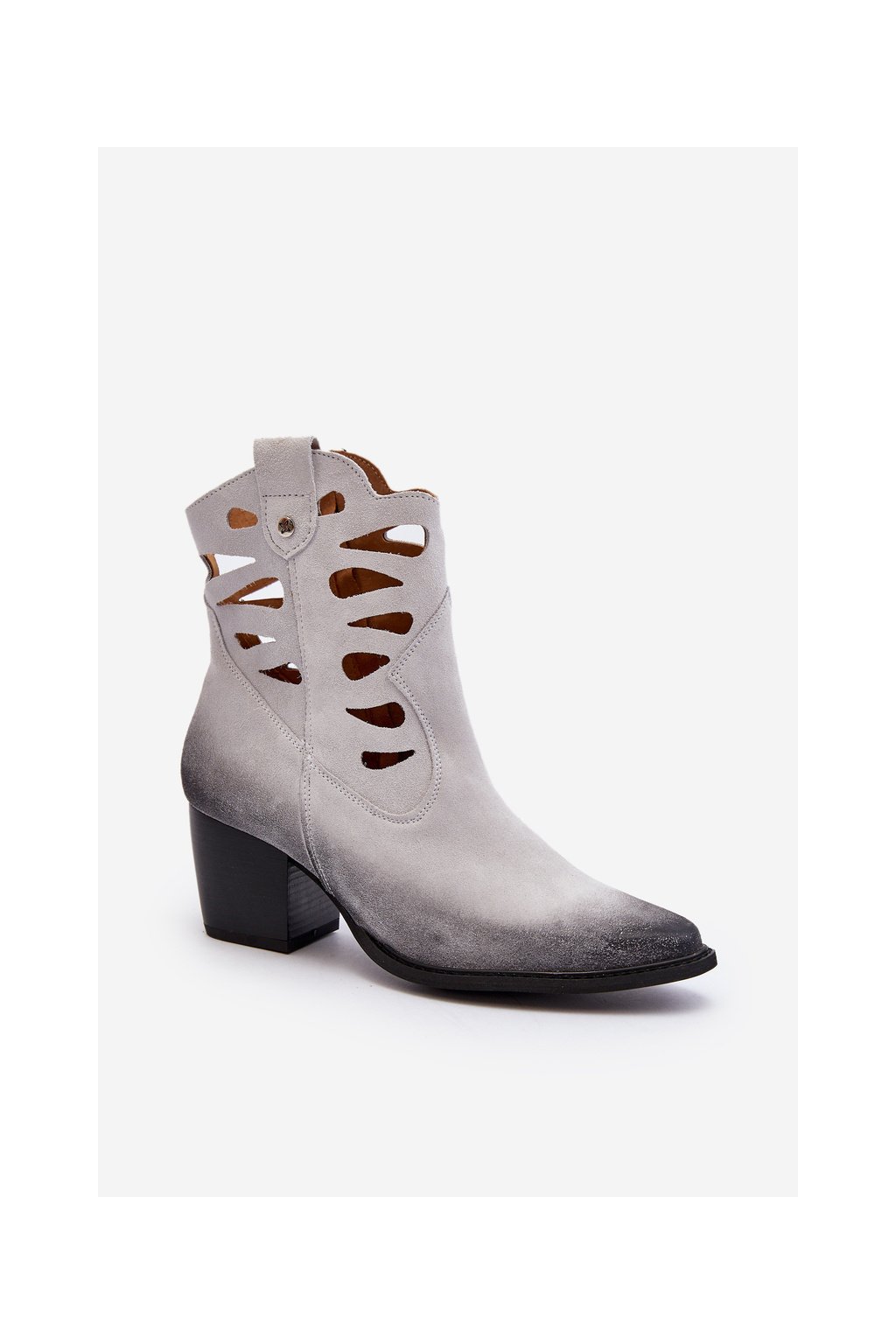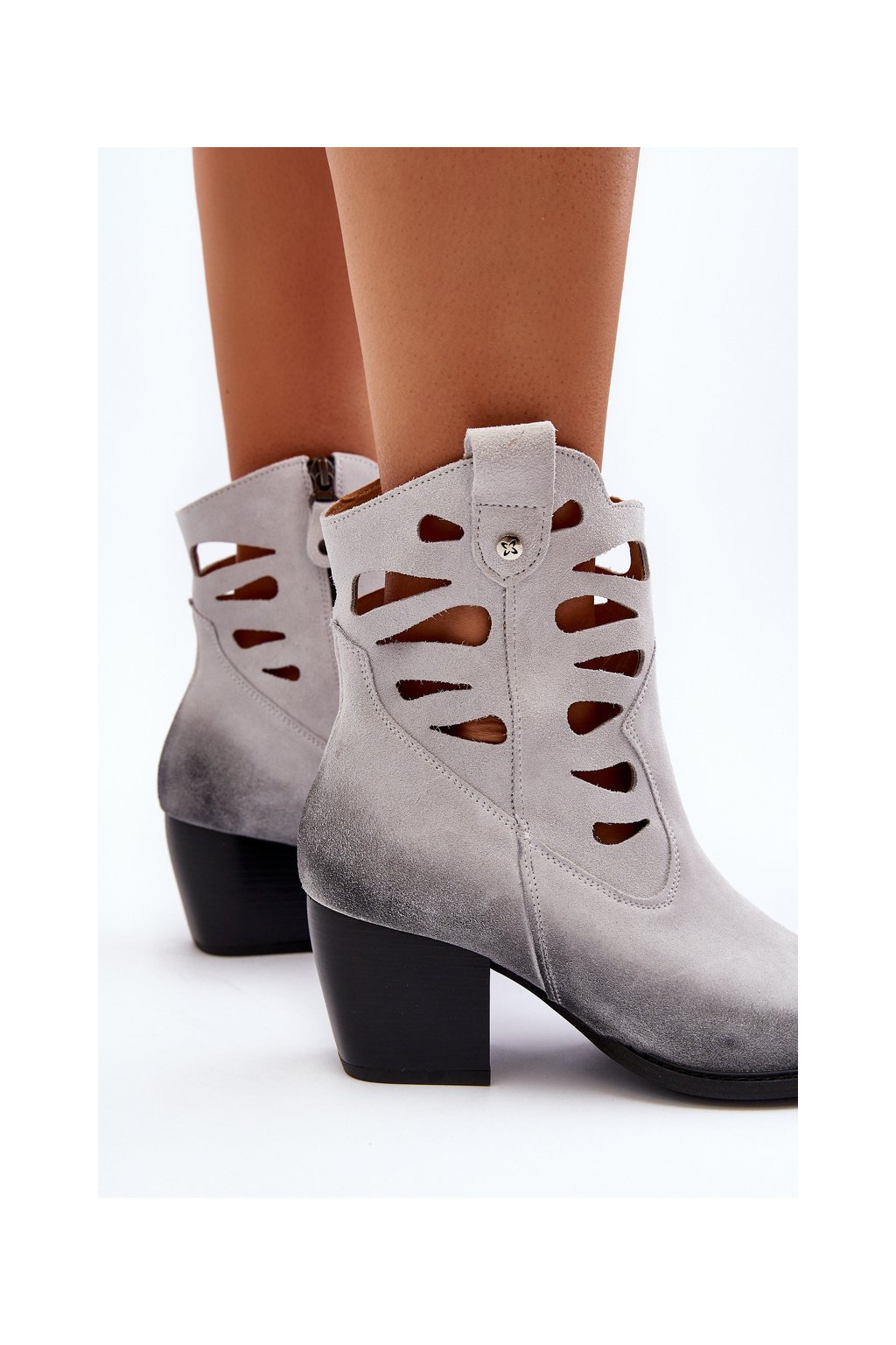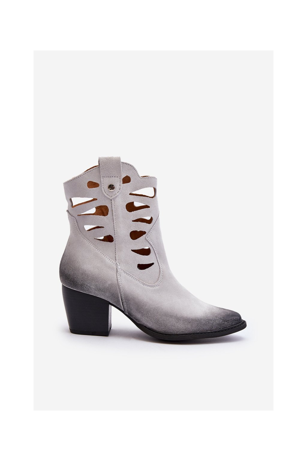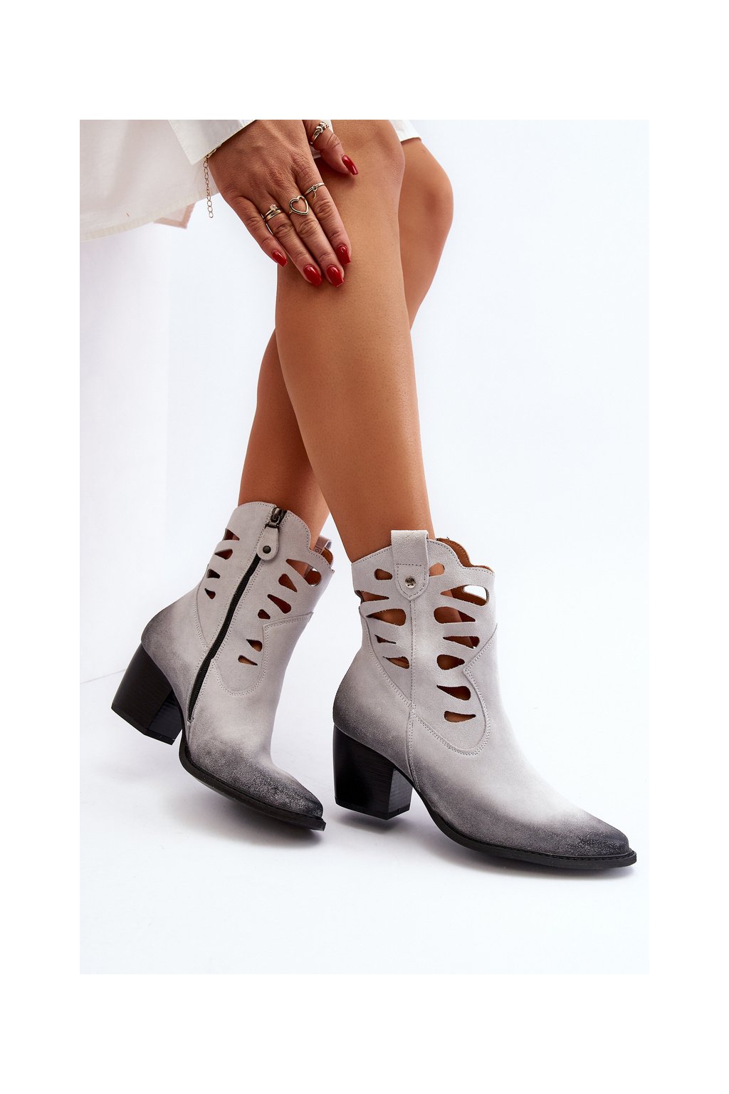 Biele dámske členkové topánky z eko semišu na nízkom 6cm podpätku, kód produktu 06412-11/00-5 BIAŁ+CZAR