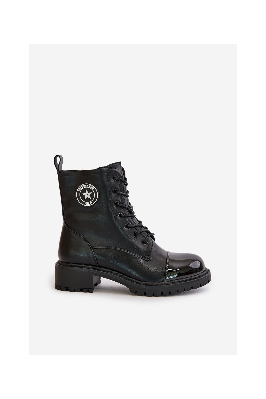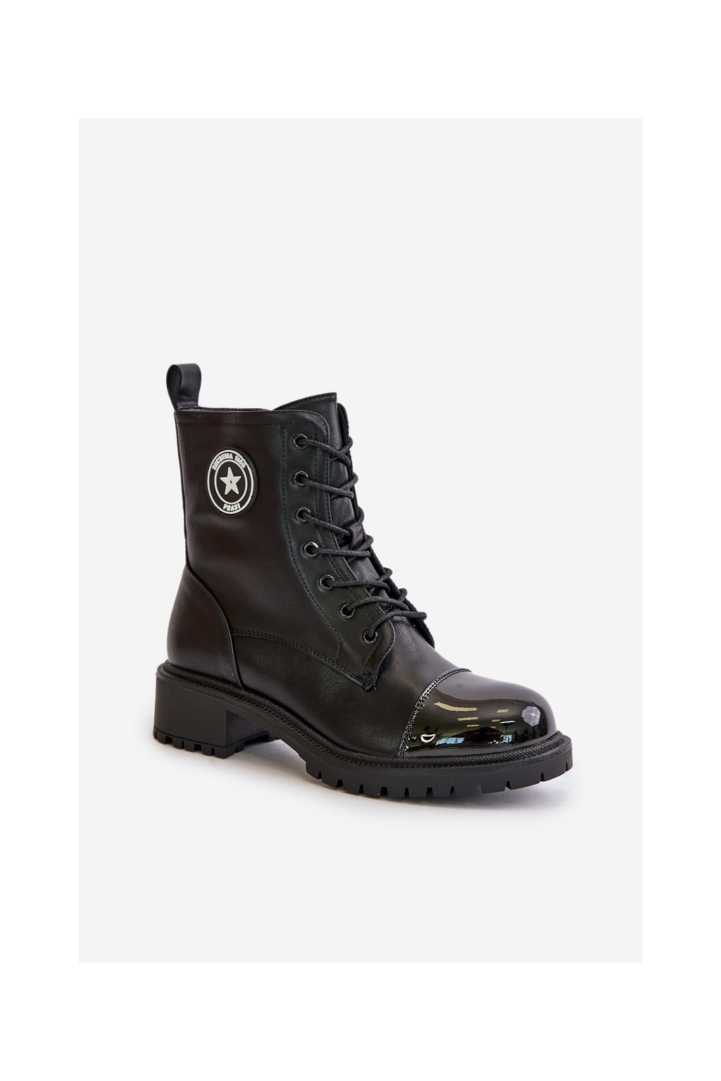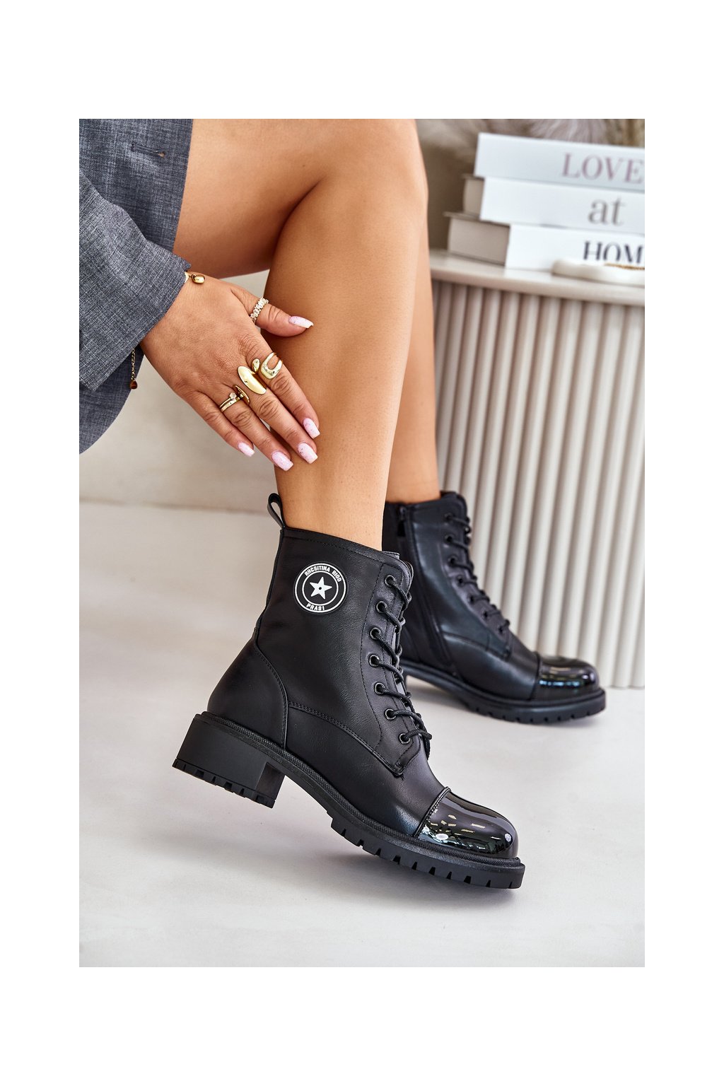 Čierne dámske členkové topánky z eko kože na rovnej podrážke s rovným podpätkom, kód produktu 089 BLACK
