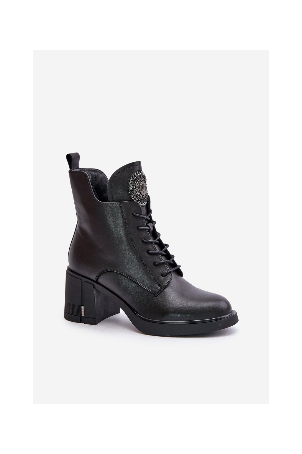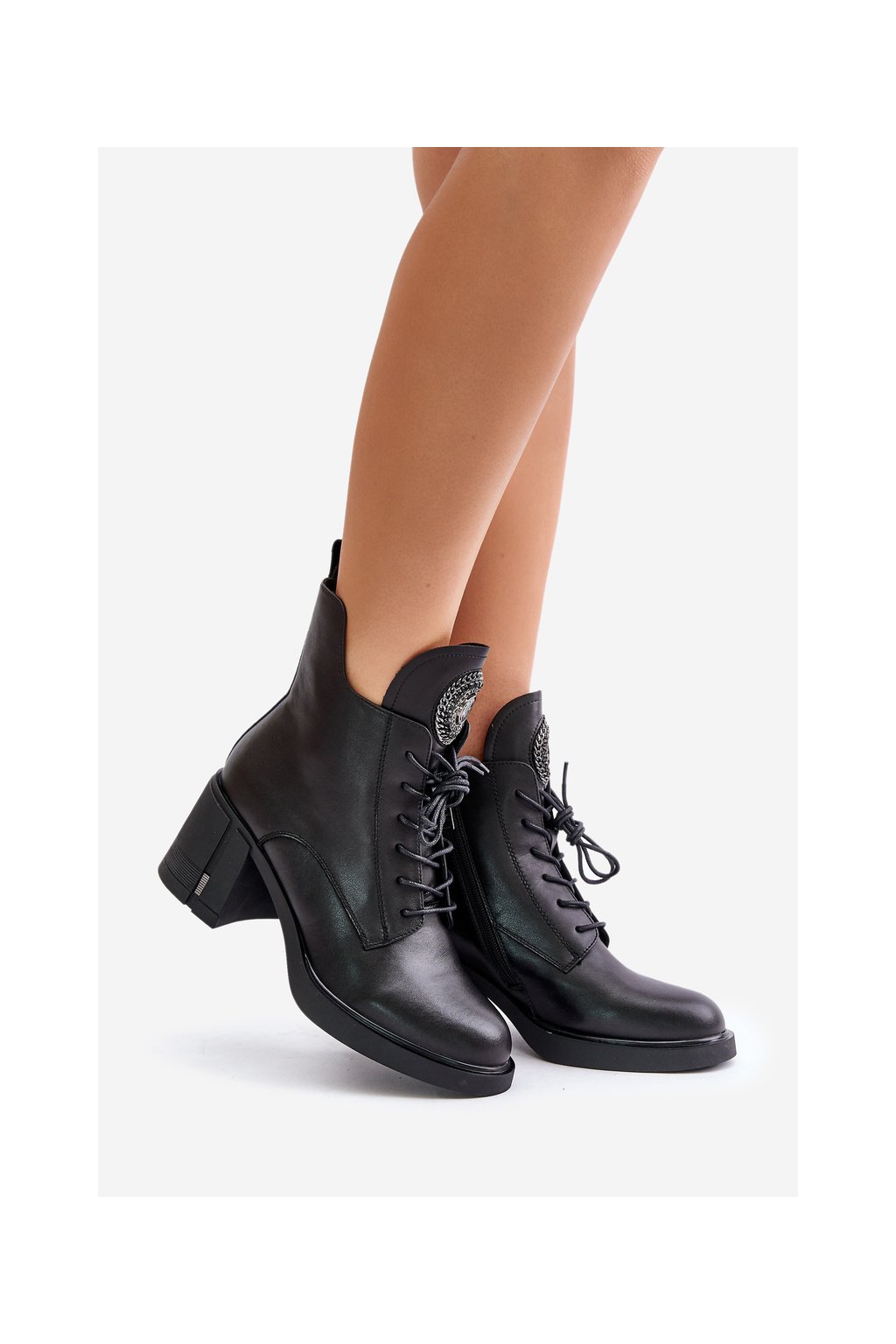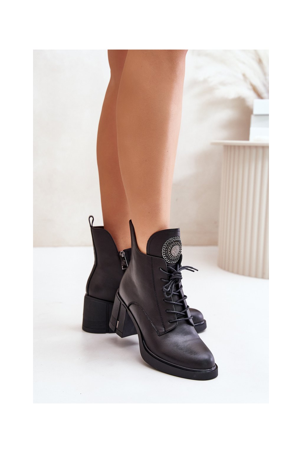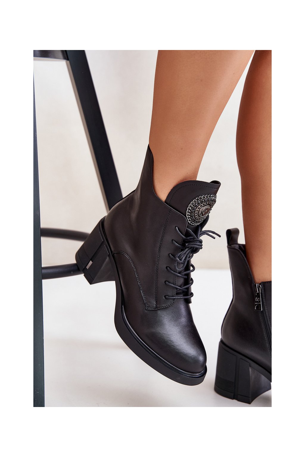 Čierne dámske členkové topánky s prírodnou kožou a stĺpovom podpätku, kód produktu 66676 CZARNY LICO SK