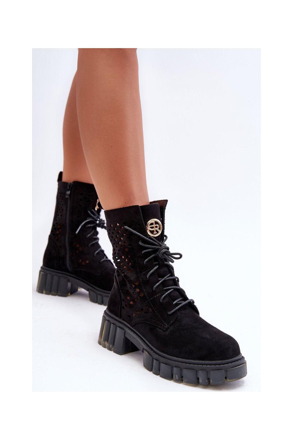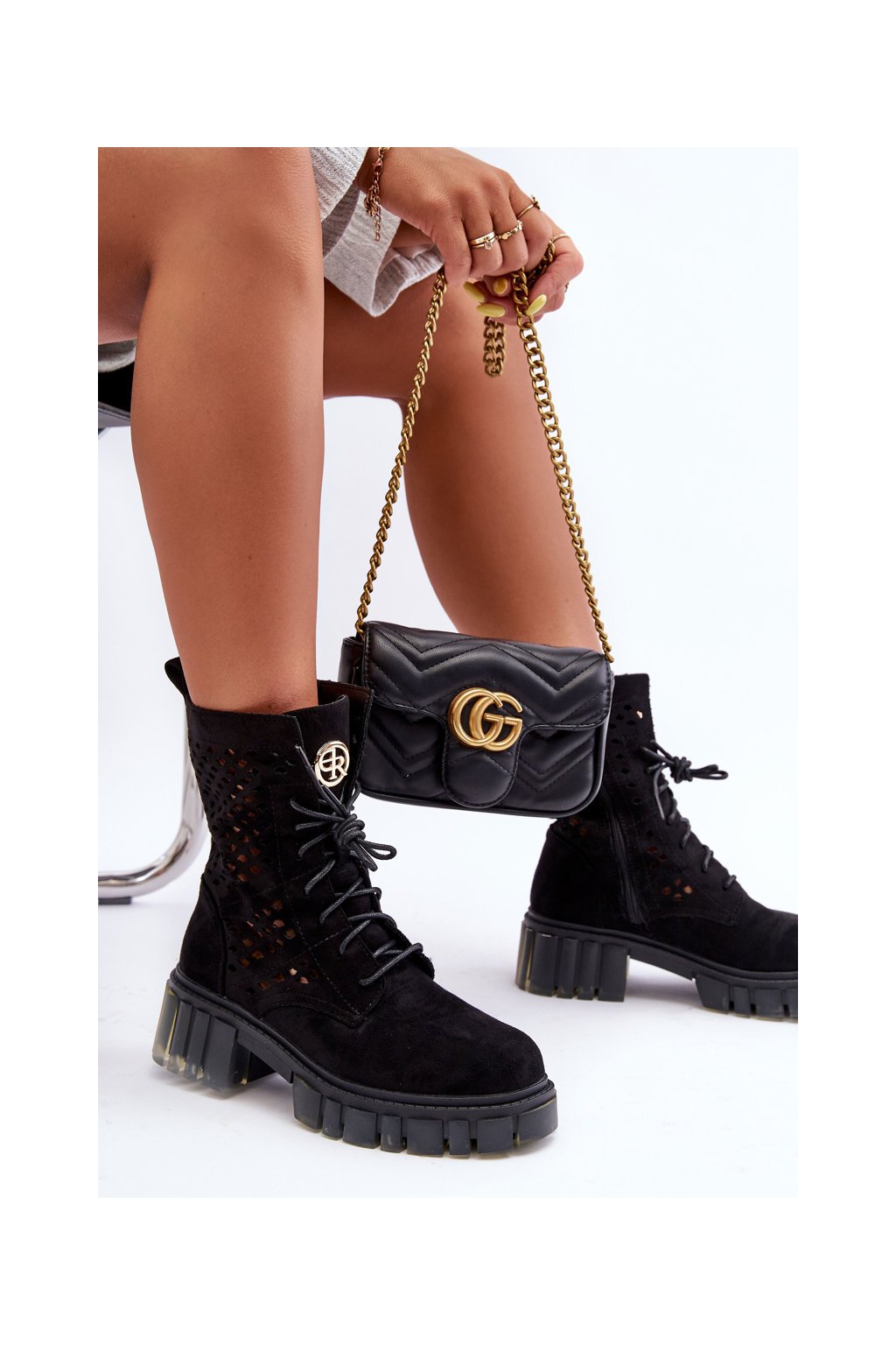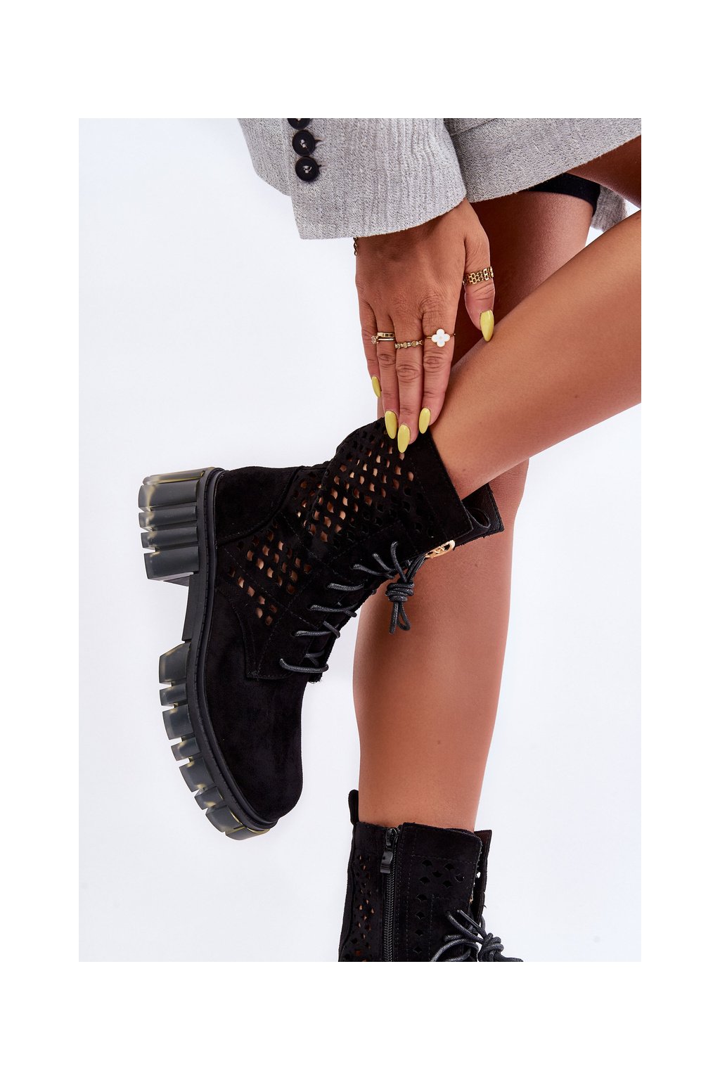 Krásne členkové topánky sú vyrobené z ekologického semišu so sieťovaným vzorom.