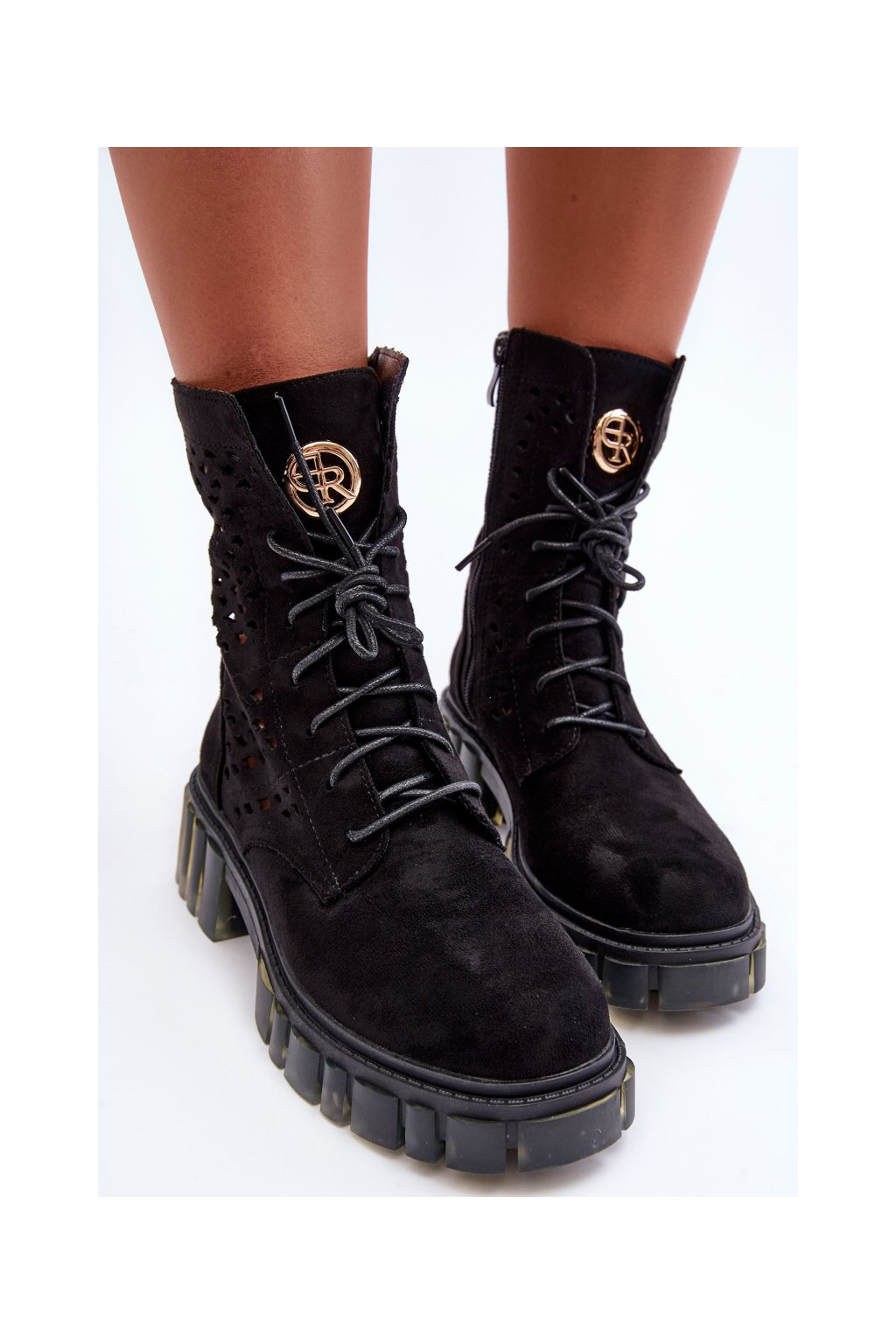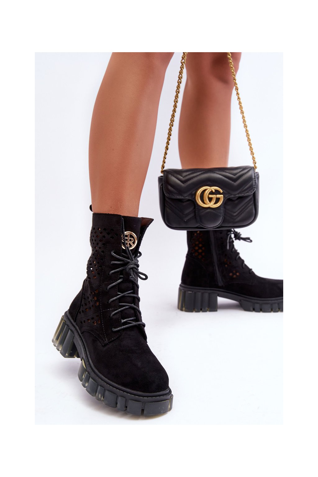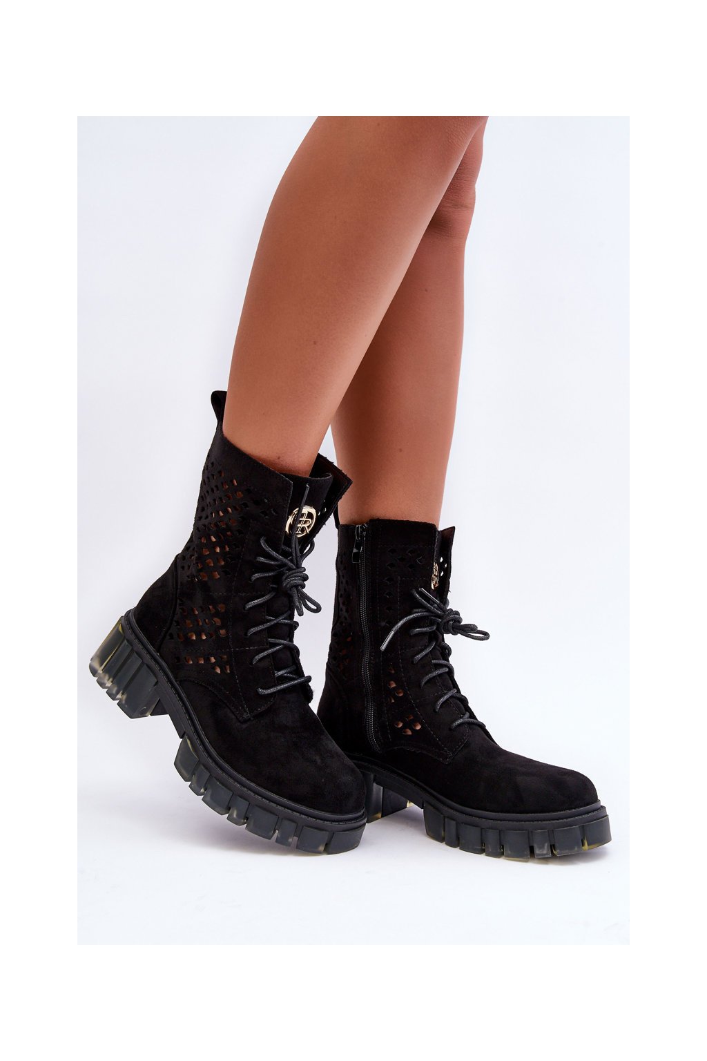 Čižmy sa zapínajú na strane členka pomocou zipsu a tiež šnurovaním. Čižmy majú spevnenú špičku a ozdobu na jazyku. Členkové čižmy sú osadené na pevnom, plochom podpätku a platforme, ktorá chráni pred studenými podlahami. Pri výbere veľkosti sa riaďte tabuľkou veľkostí.