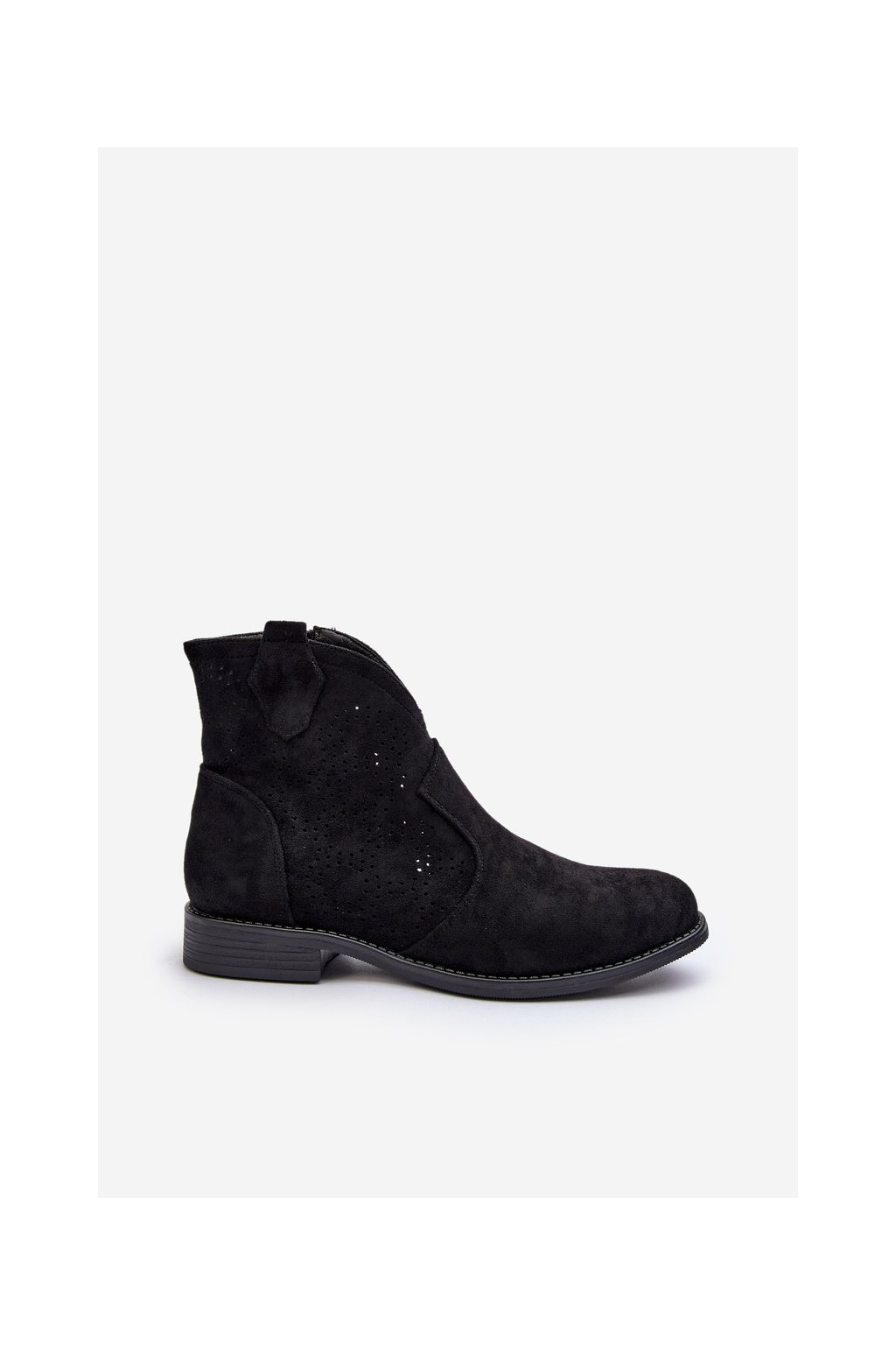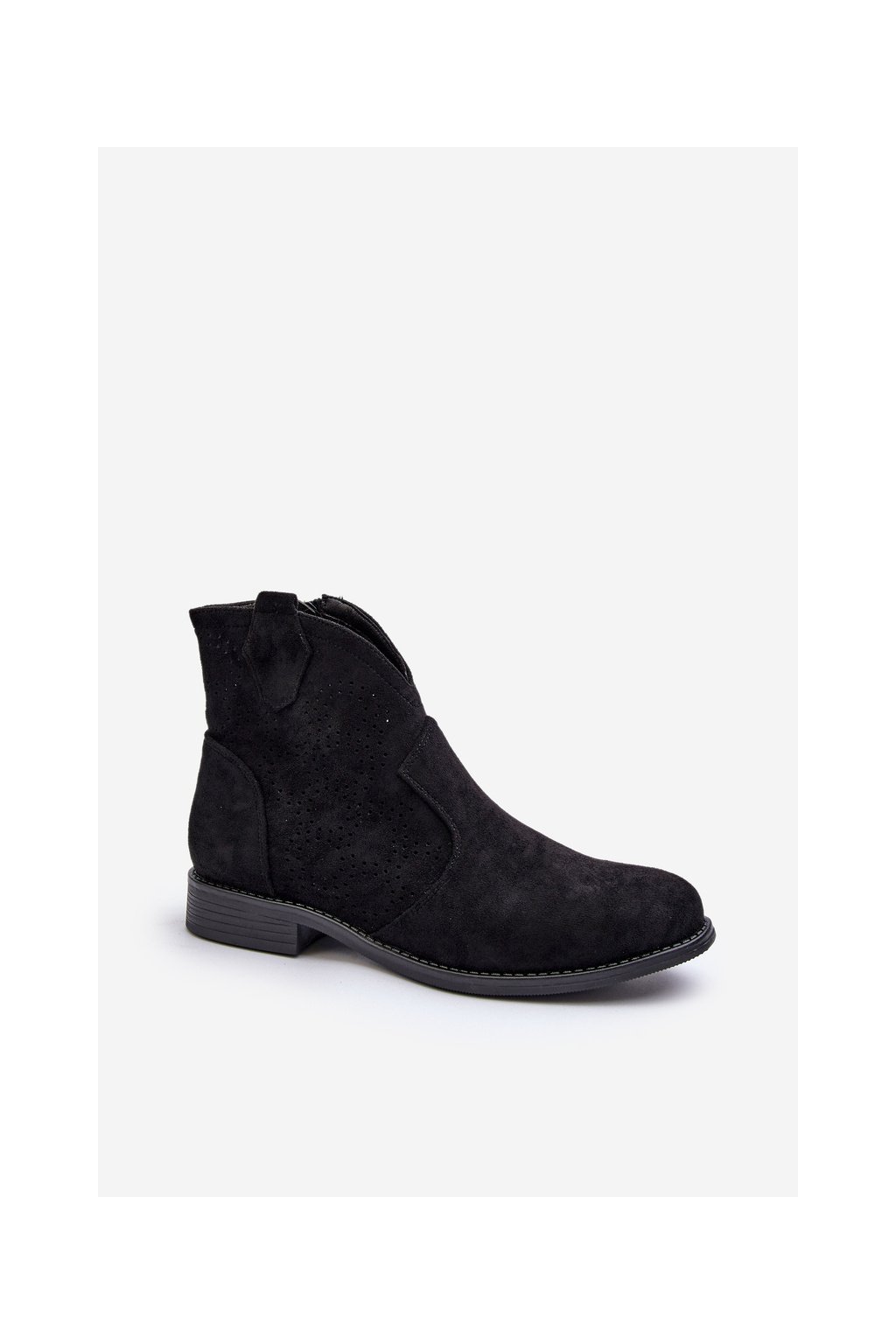 Čierne dámske členkové topánky z eko semišu na rovnej podrážke s zipsom, kód produktu HY66-151/HY42-151 BLK