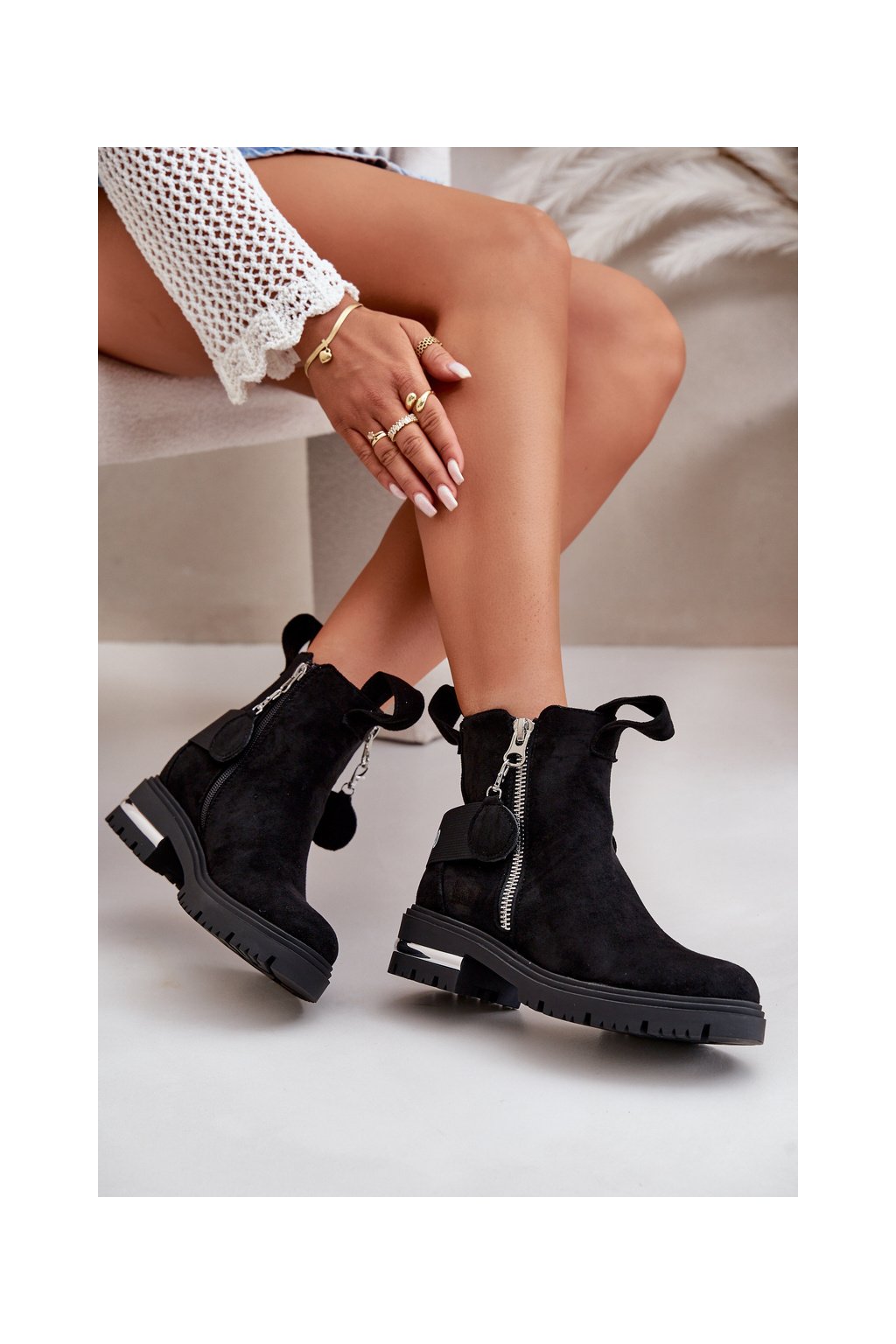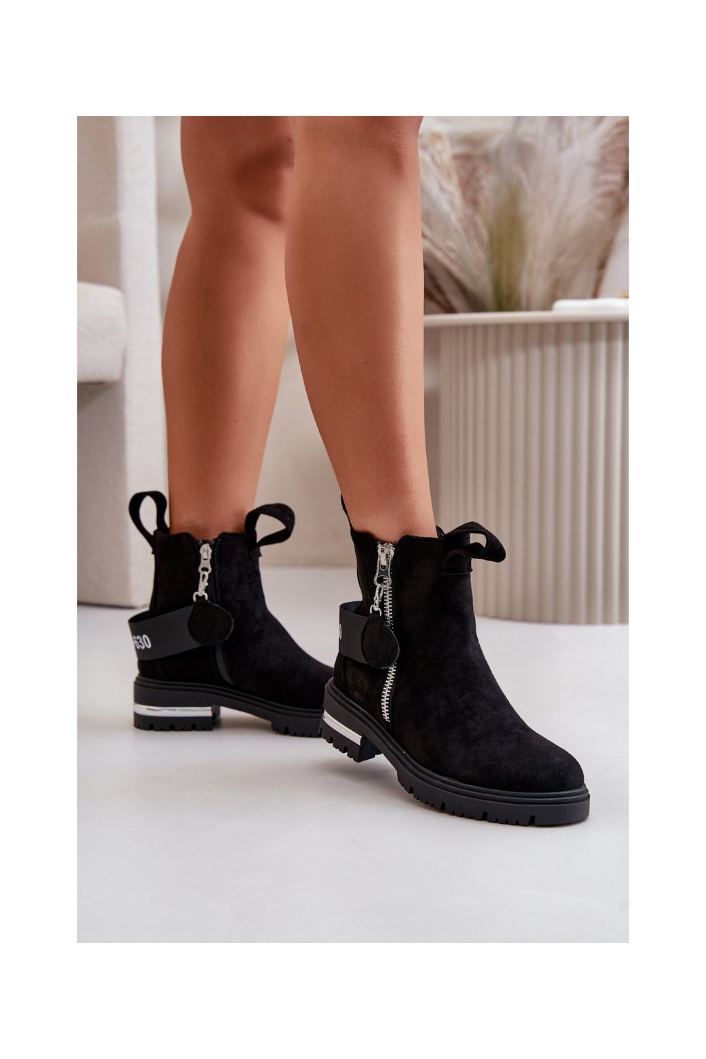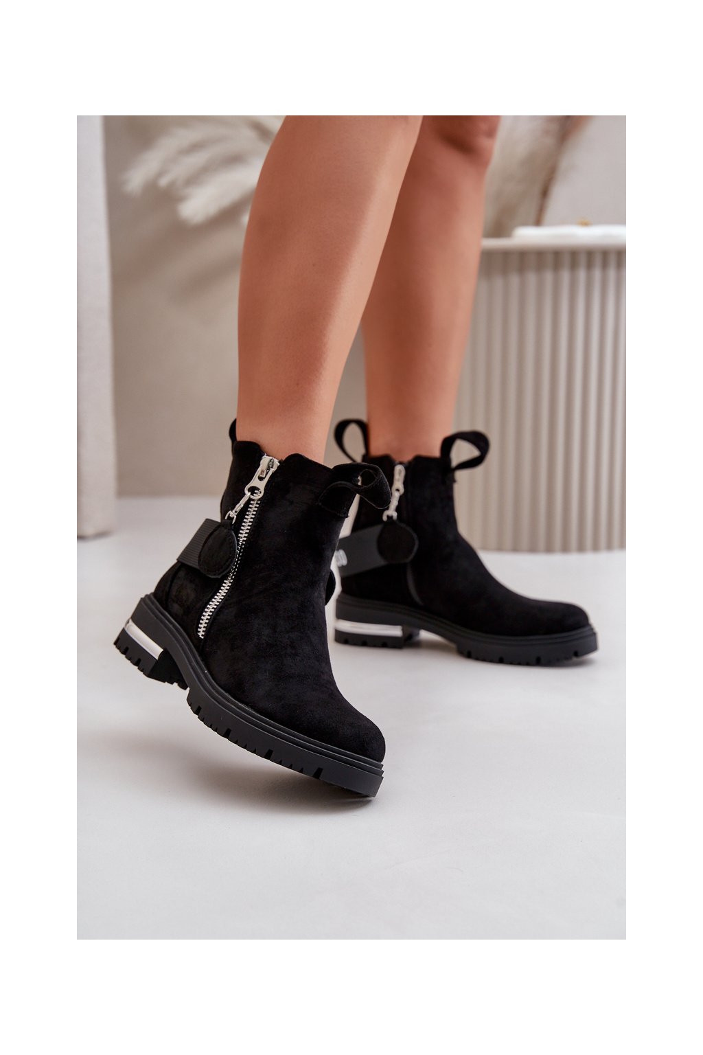 Čierne dámske členkové topánky z eko semišu na rovnej podrážke, kód produktu NC1279 BLACK