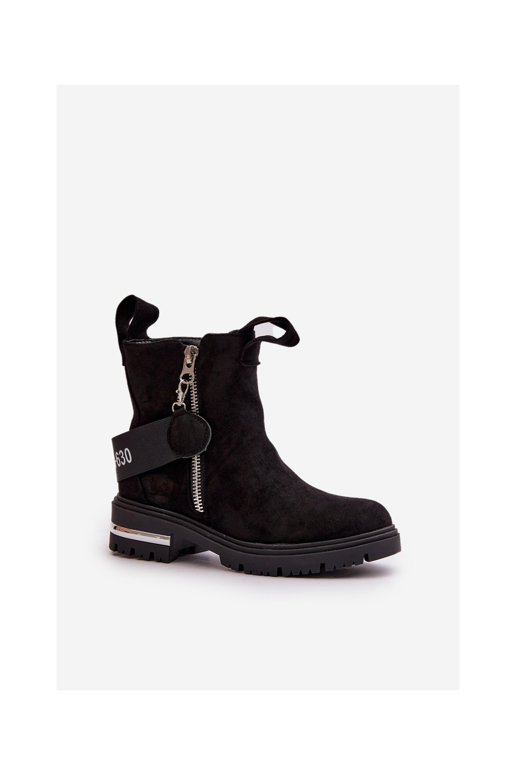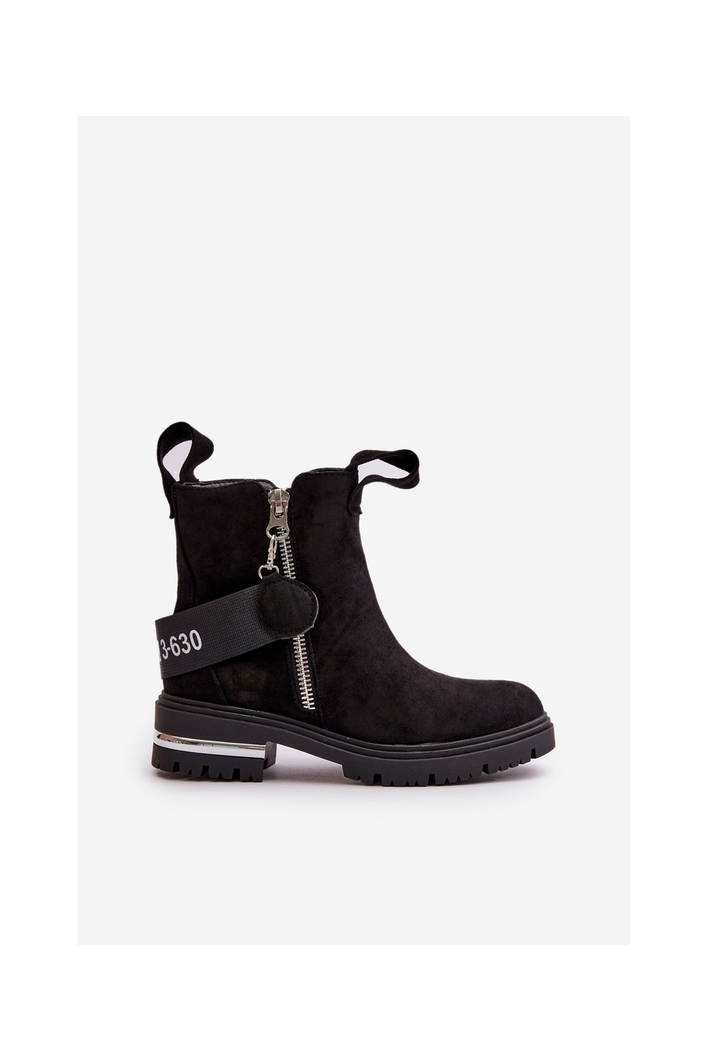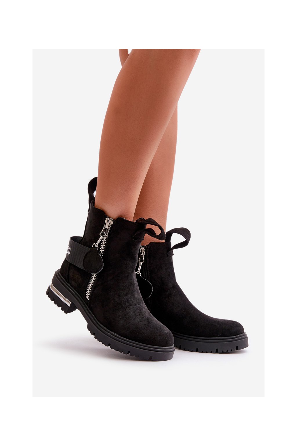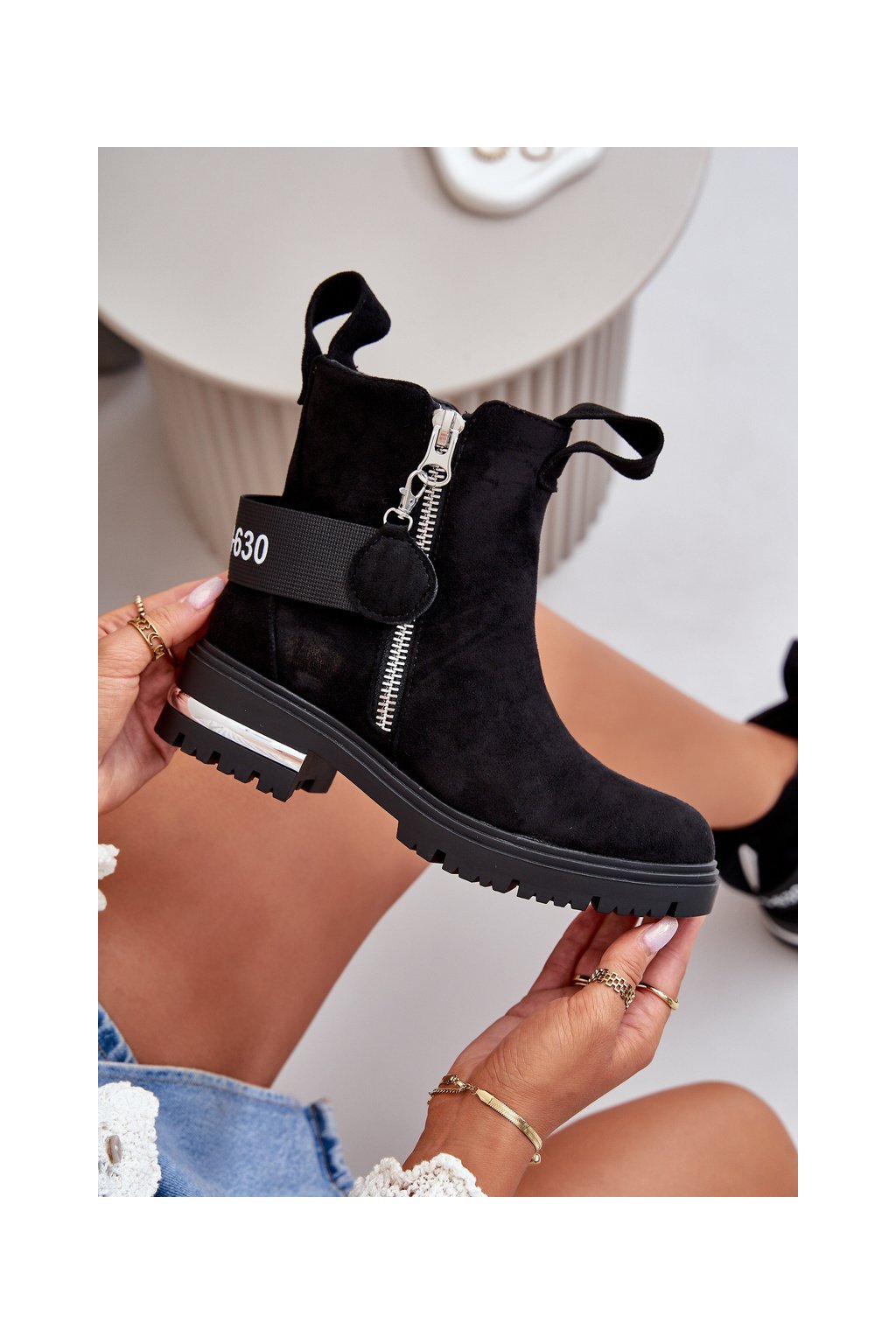 Čierne dámske členkové topánky z eko semišu na rovnej podrážke, kód produktu NC1279 BLACK