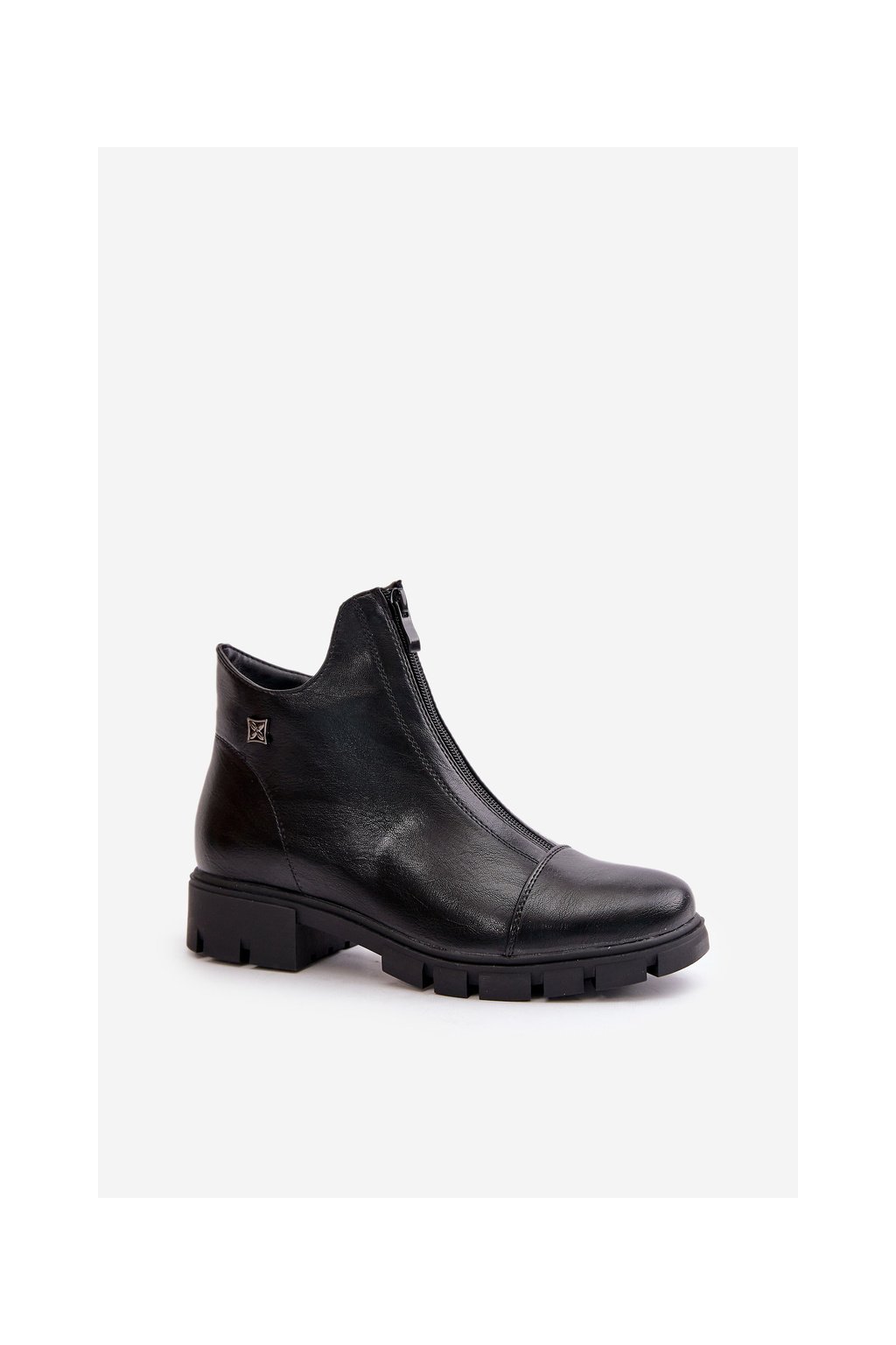 Čierne dámske členkové topánky z eko semišu na rovnej podrážke s zipsom, kód produktu RMR23123-11 CZARNY