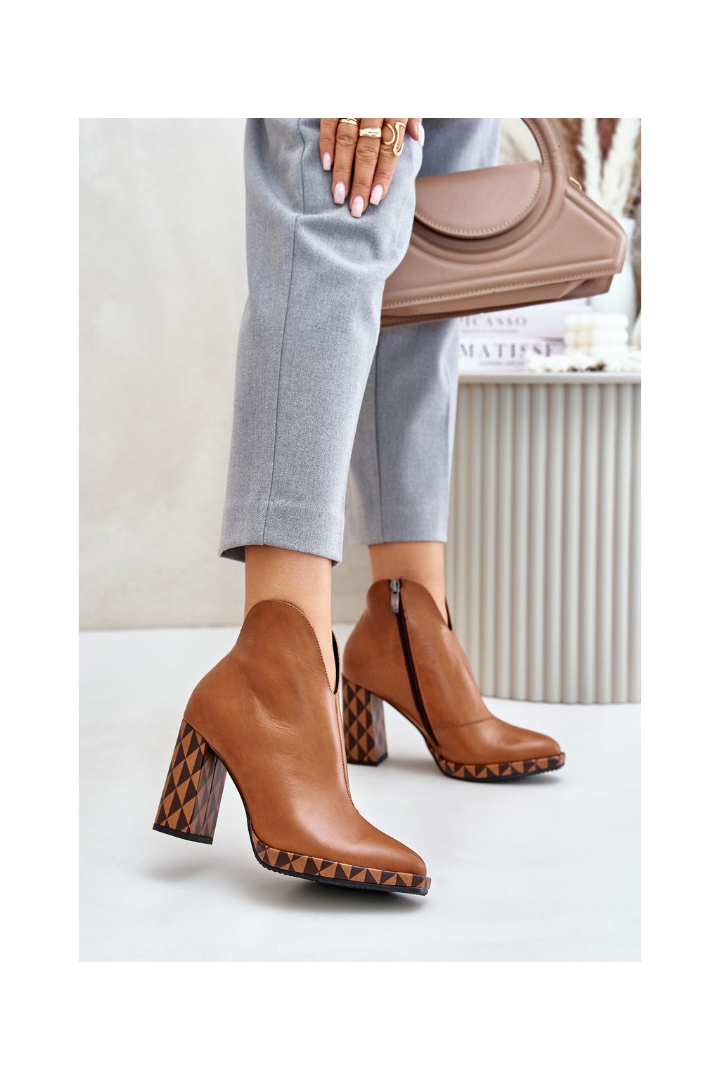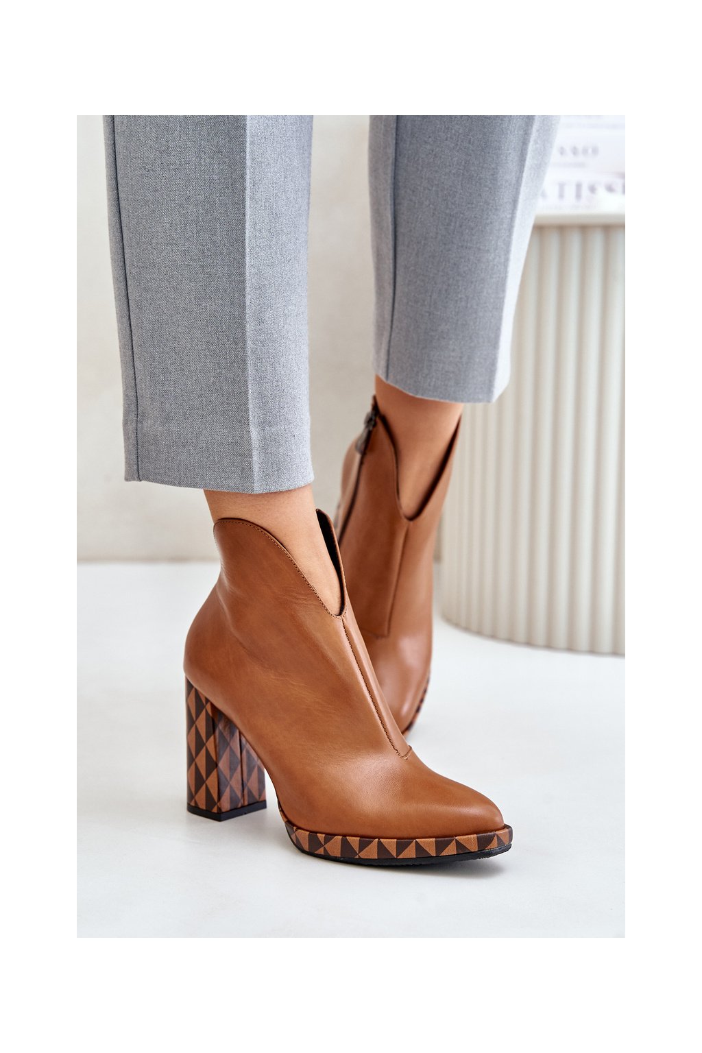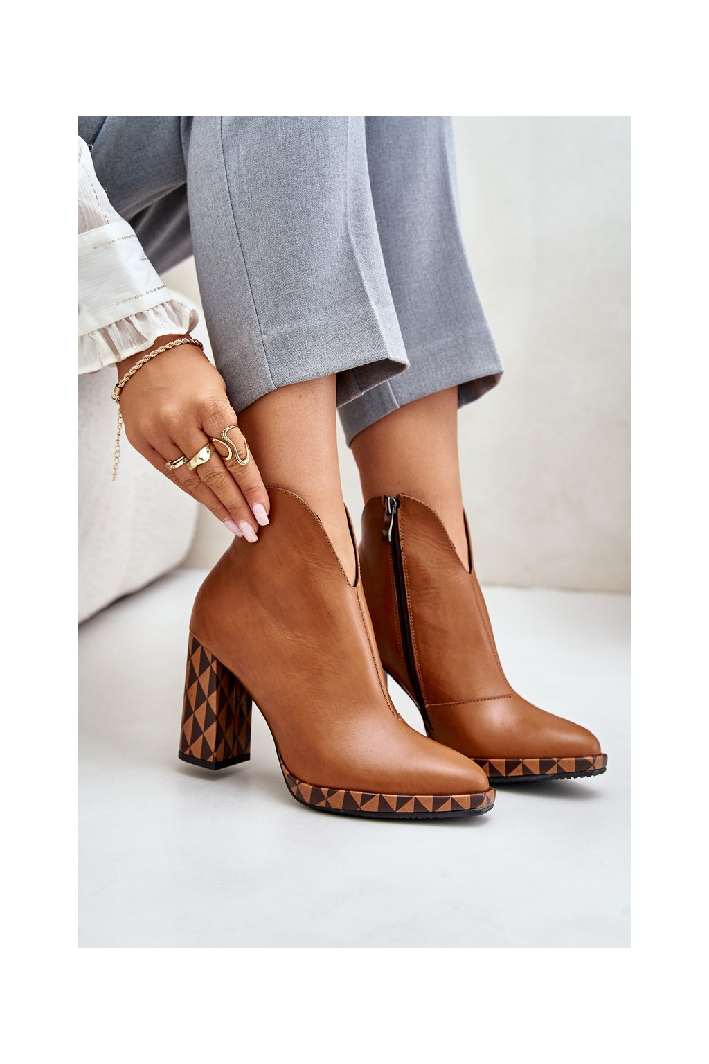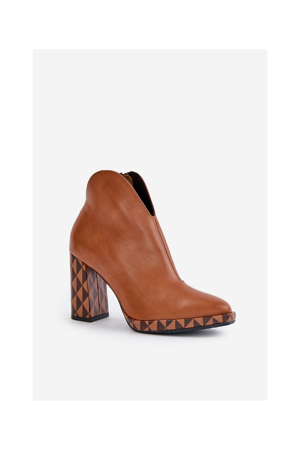 Hnedé dámske členkové topánky z prírodnej kože na stĺpovom podpätku Laura Messi, kód produktu 2836/265-826