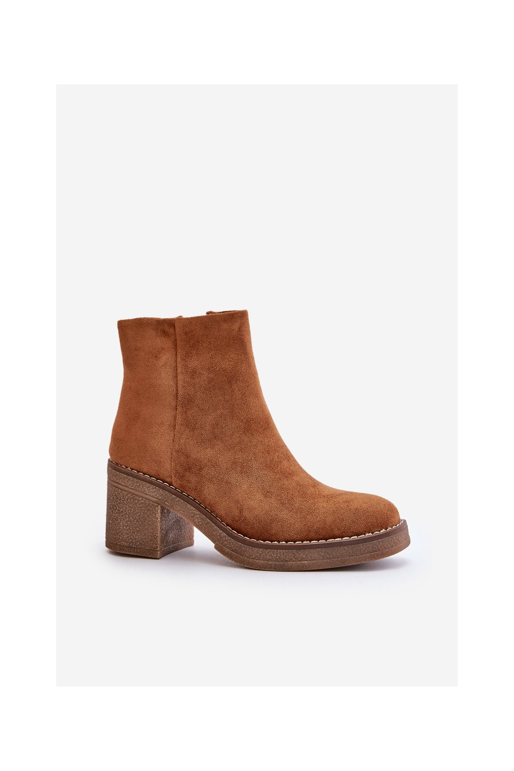 Hnedé dámske členkové topánky z eko semišu na stĺpovom podpätku s rovnou podrážkou, kód produktu 9613 CAMEL
