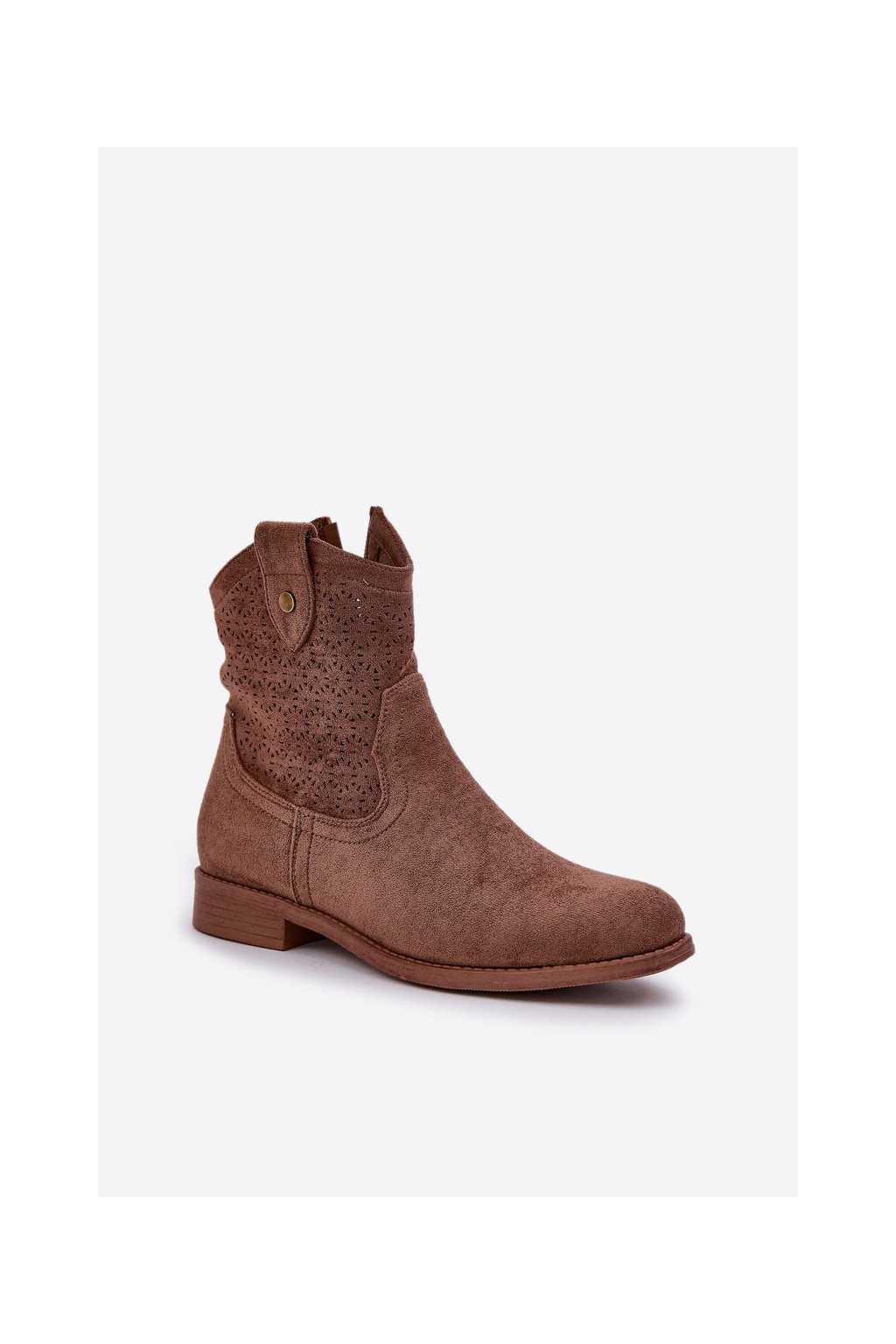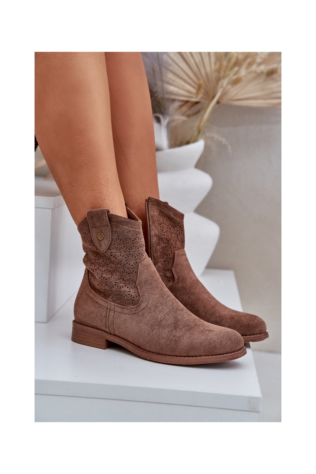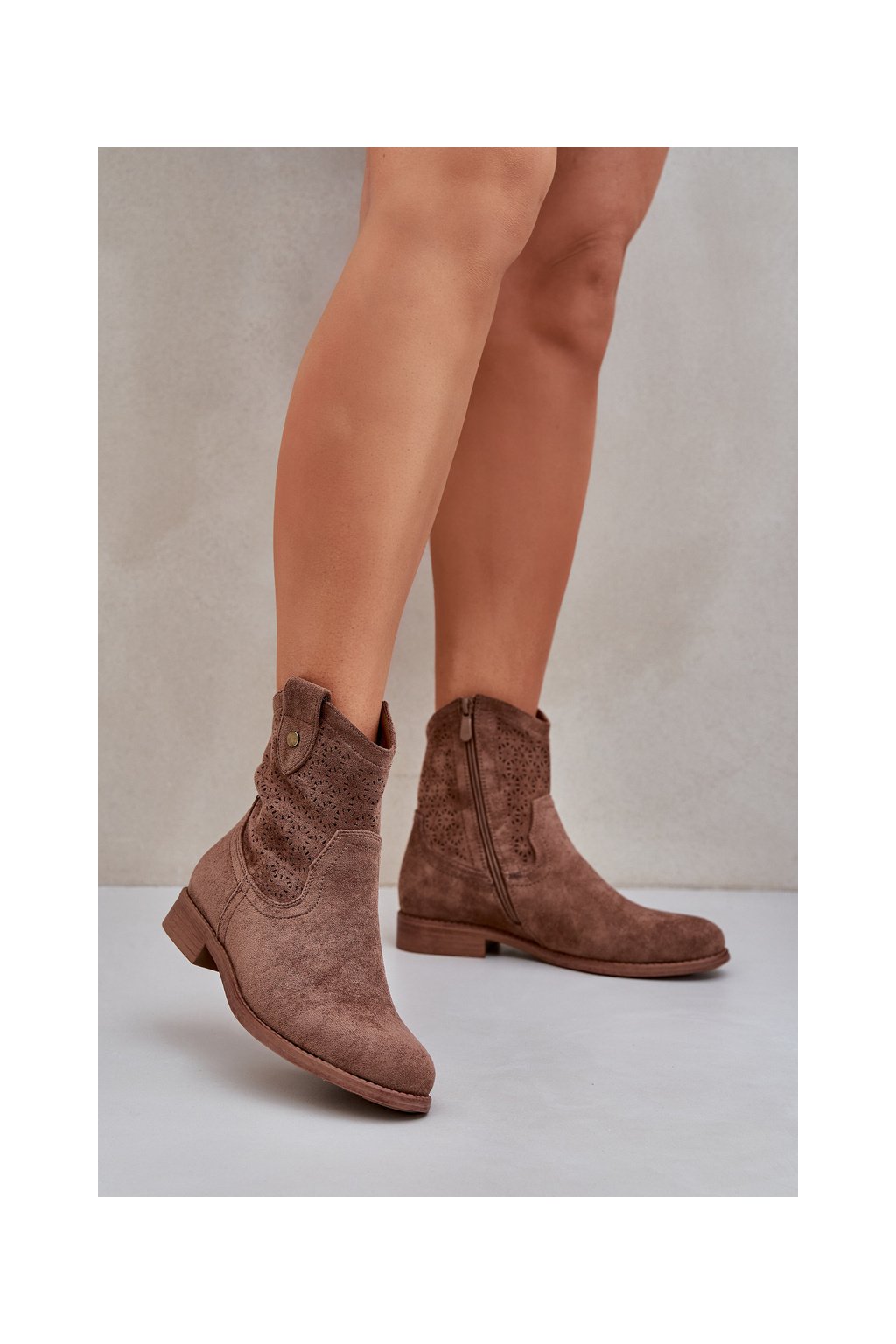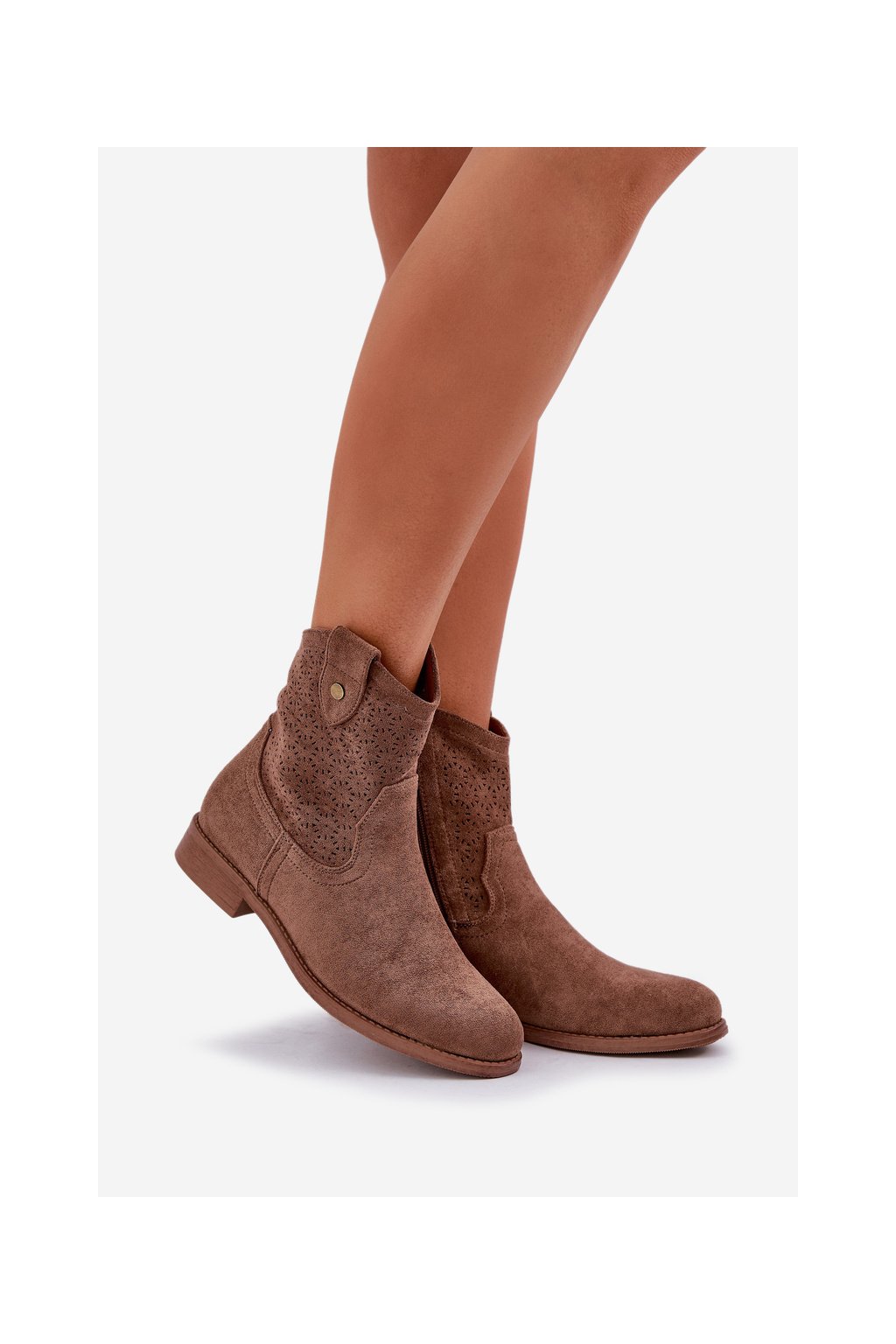 Hnedé dámske členkové topánky z EKO semišu s čipkou, HY51-063 COFFEE