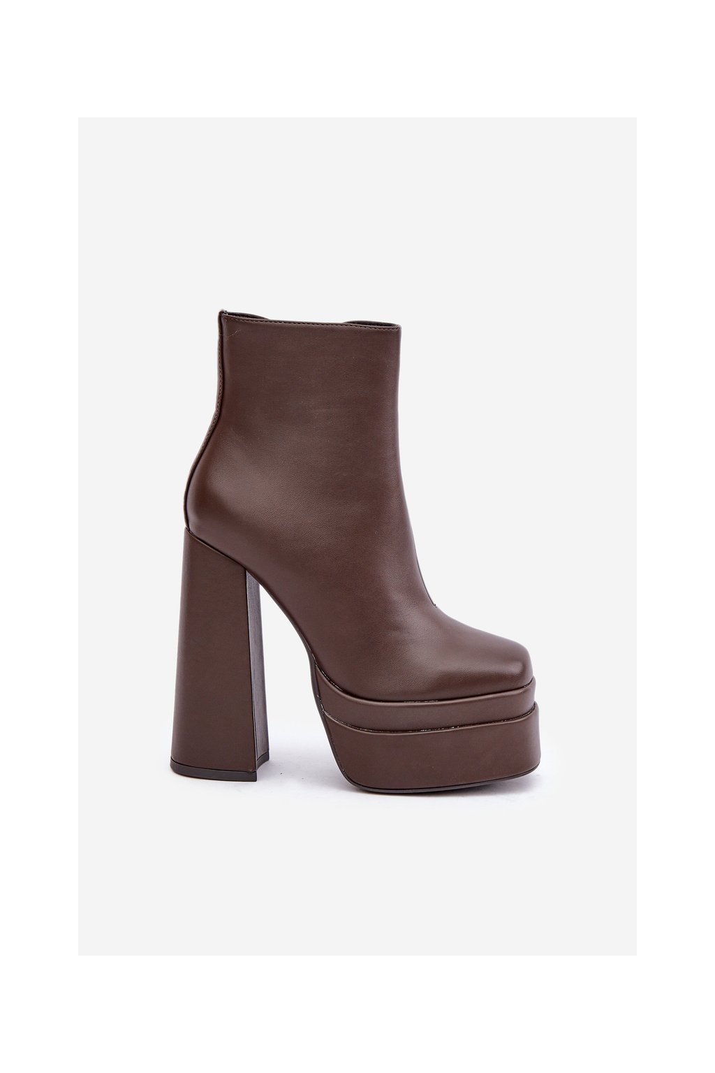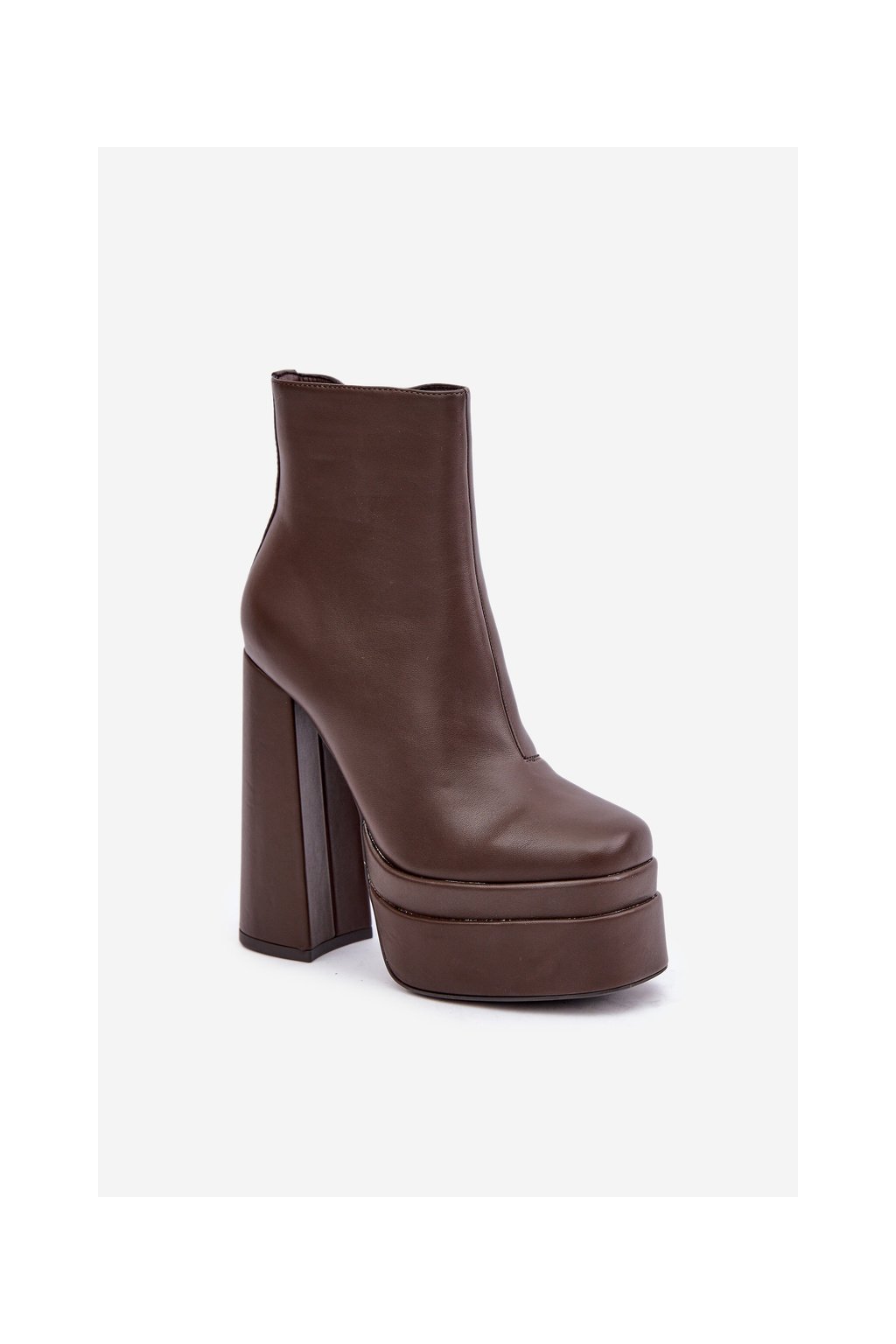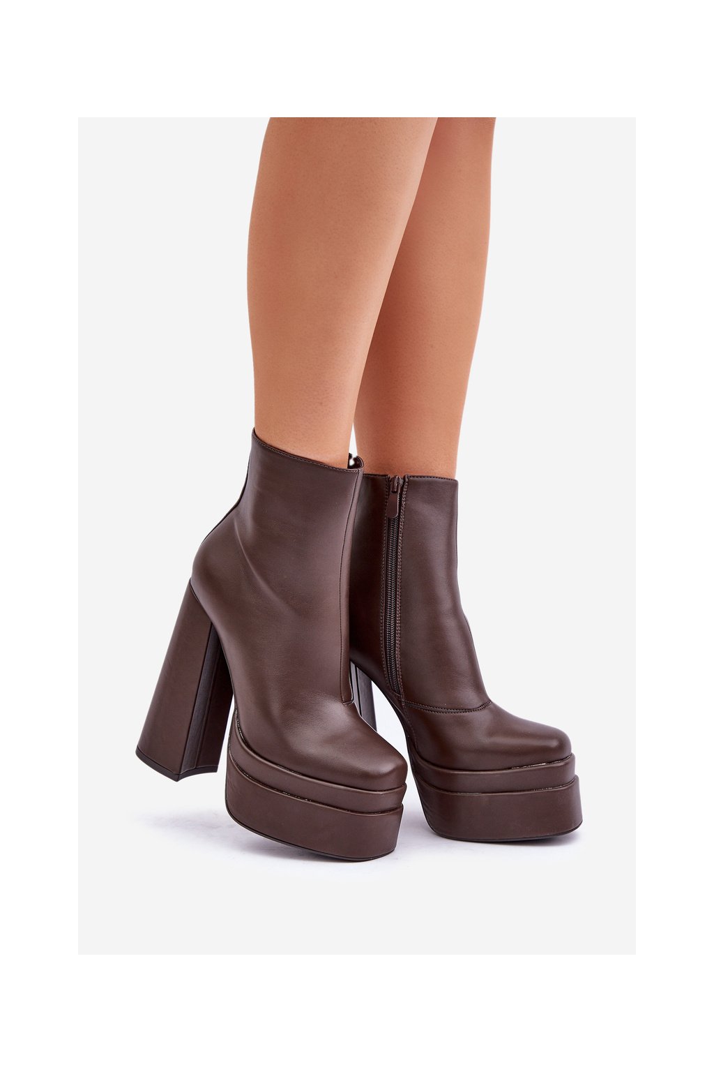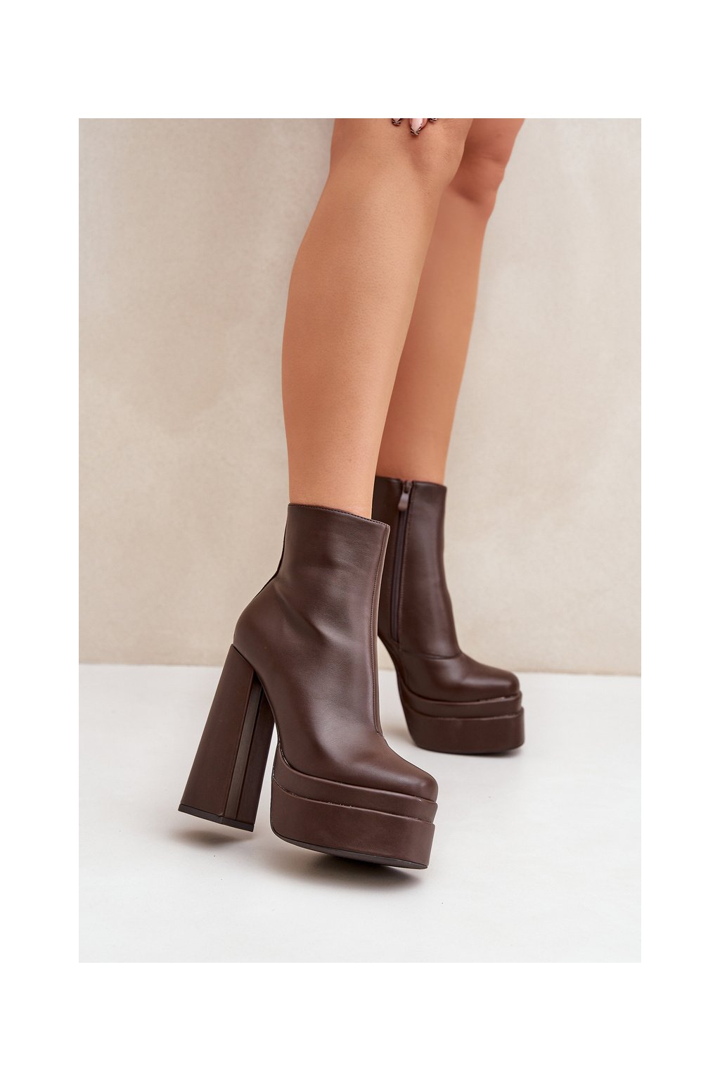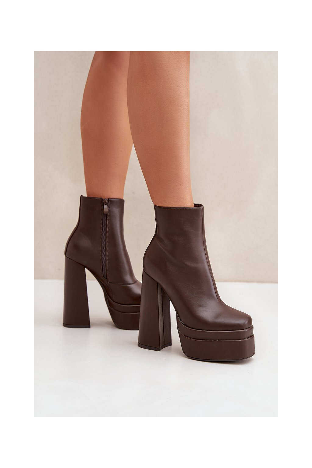 Hnedé dámske členkové topánky na stĺpovom podpätku s eko kožou a zipsom, kód produktu JA-26 COFFEE