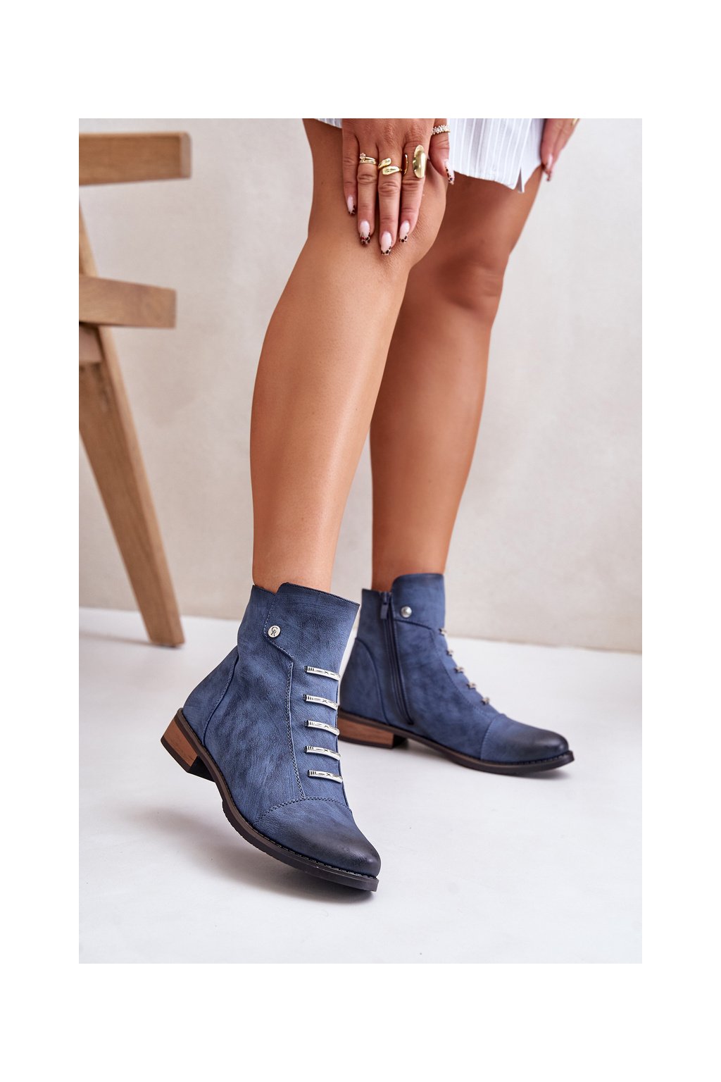 Modré dámske členkové topánky s rovnou podrážkou z eko kože, zips, ASA62-16 NIEBIESKI