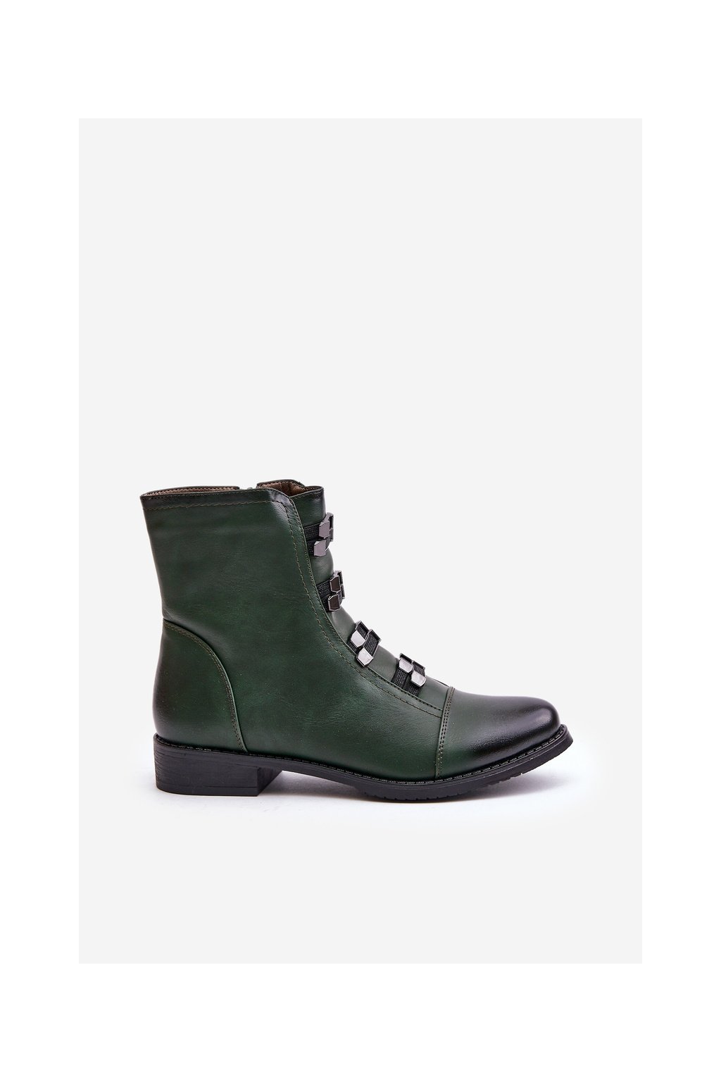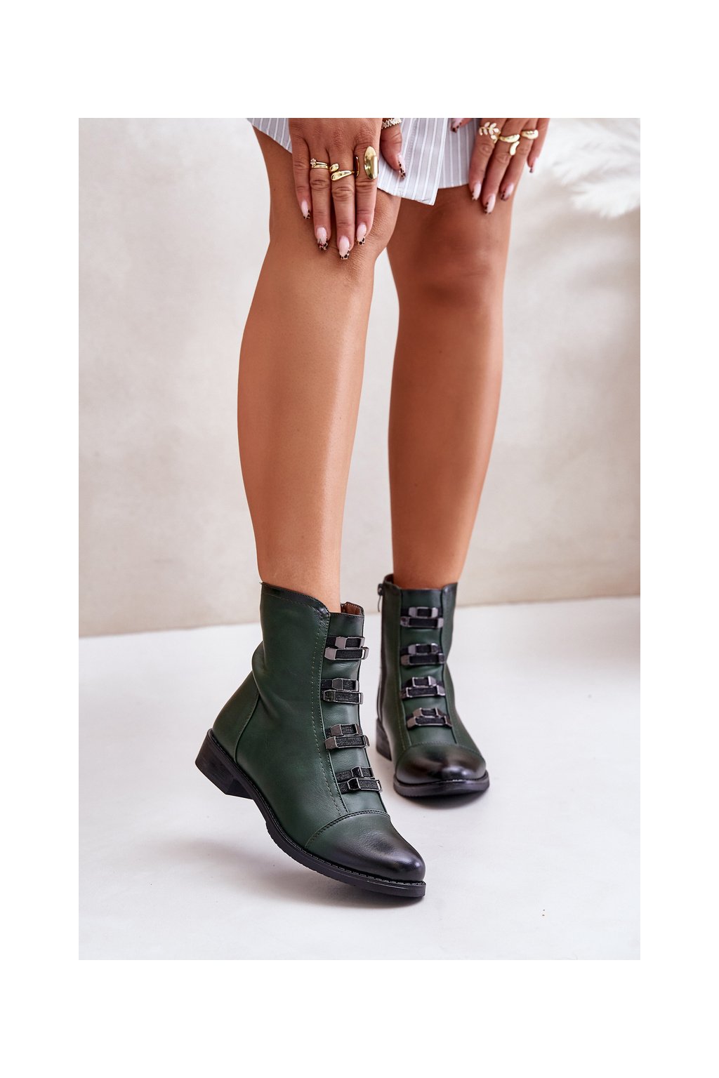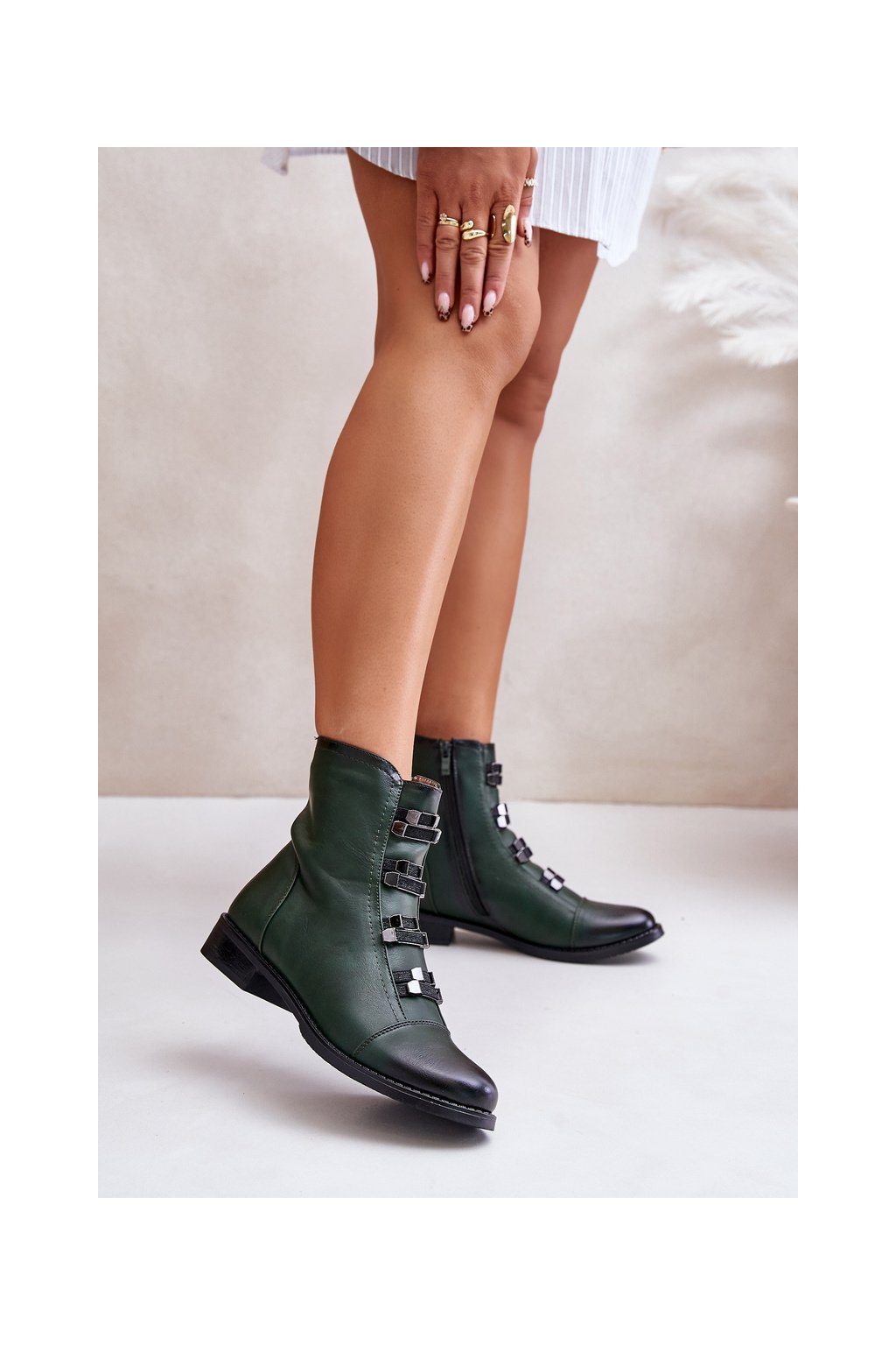 Zelené dámske členkové topánky na rovnej podrážke s eko kožou, zips, ASA62-30 ZIELONY