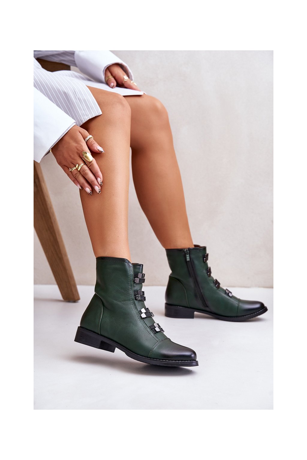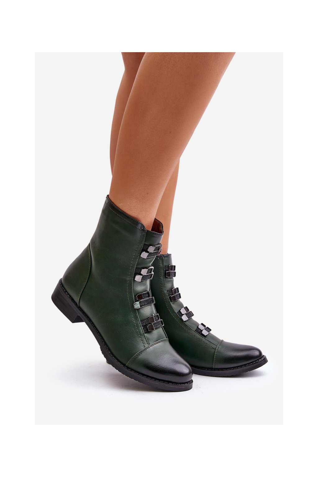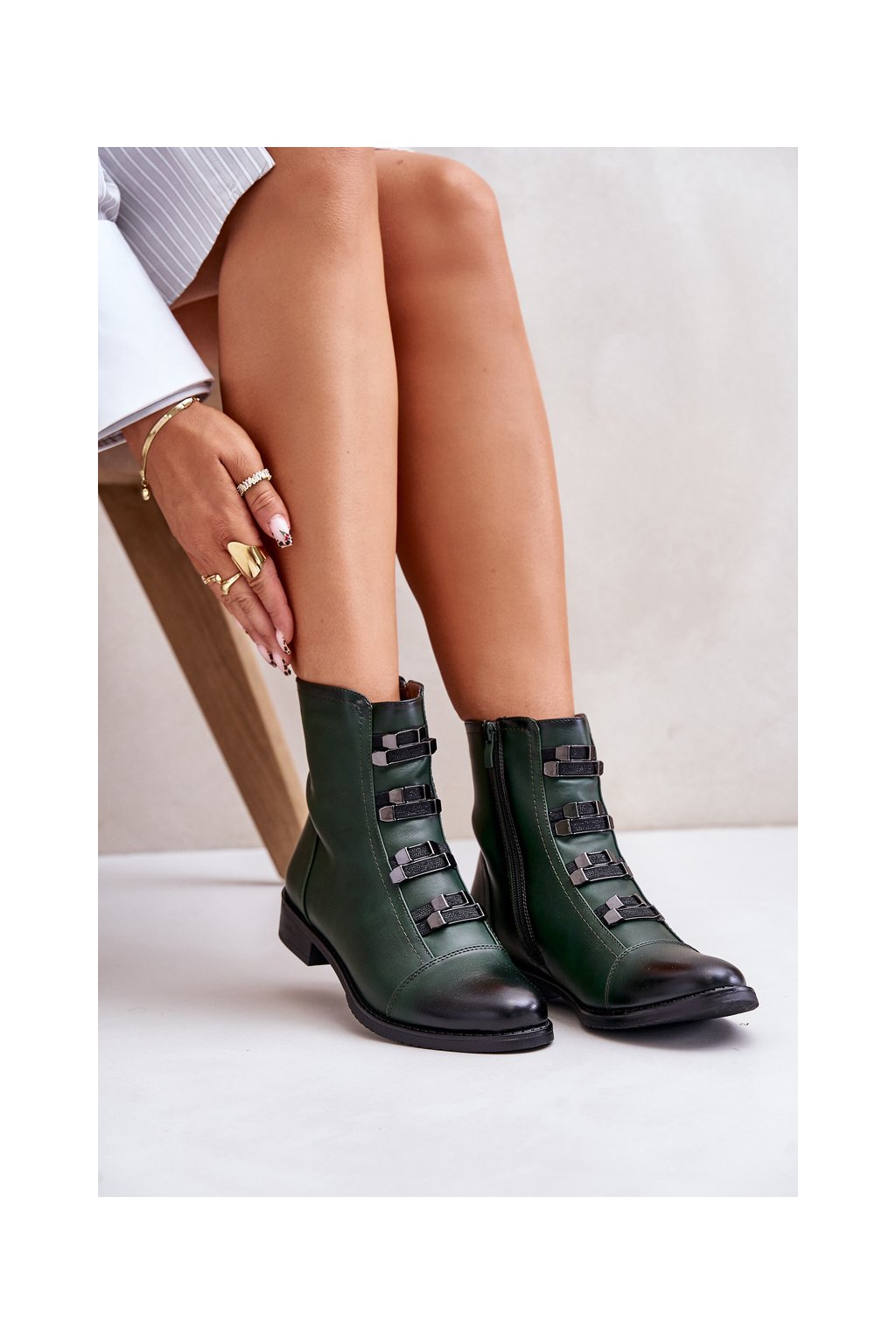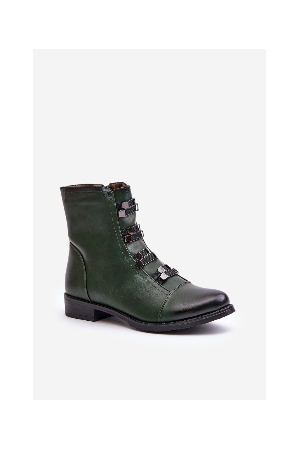Zelené dámske členkové topánky na rovnej podrážke s eko kožou, zips, ASA62-30 ZIELONY