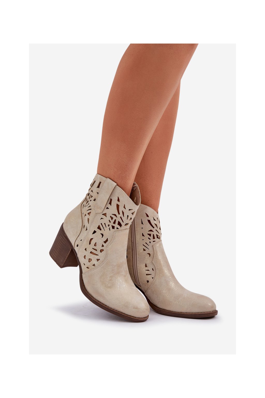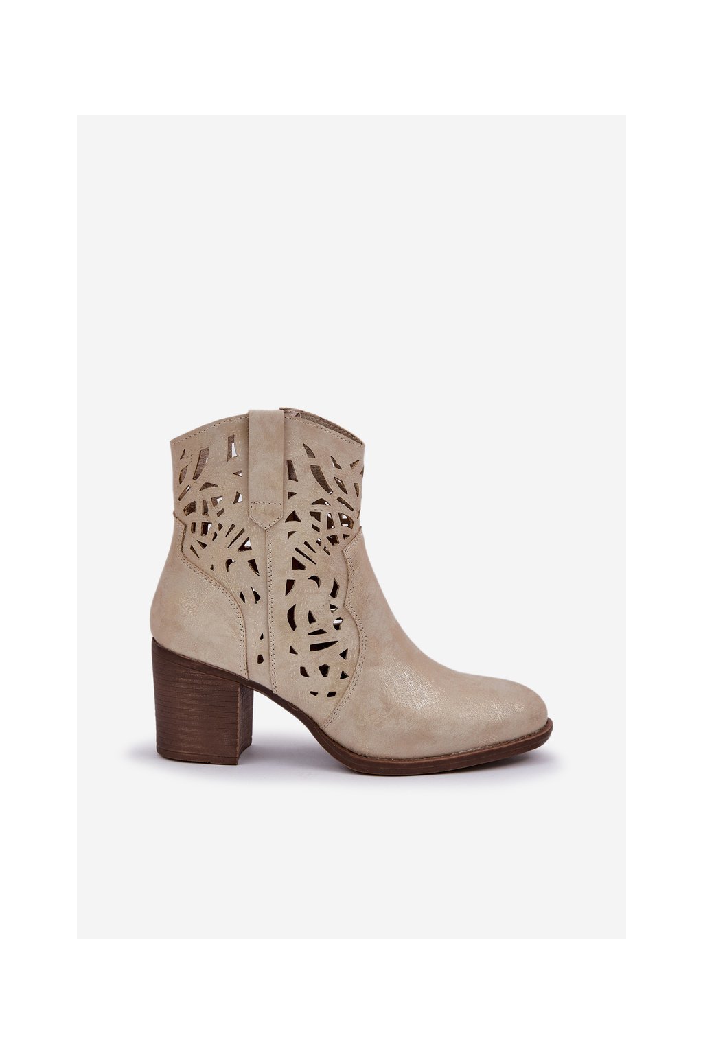 Dámske zlaté členkové topánky na stĺpovom podpätku, eko koža ASA250-5 ZŁOTY
