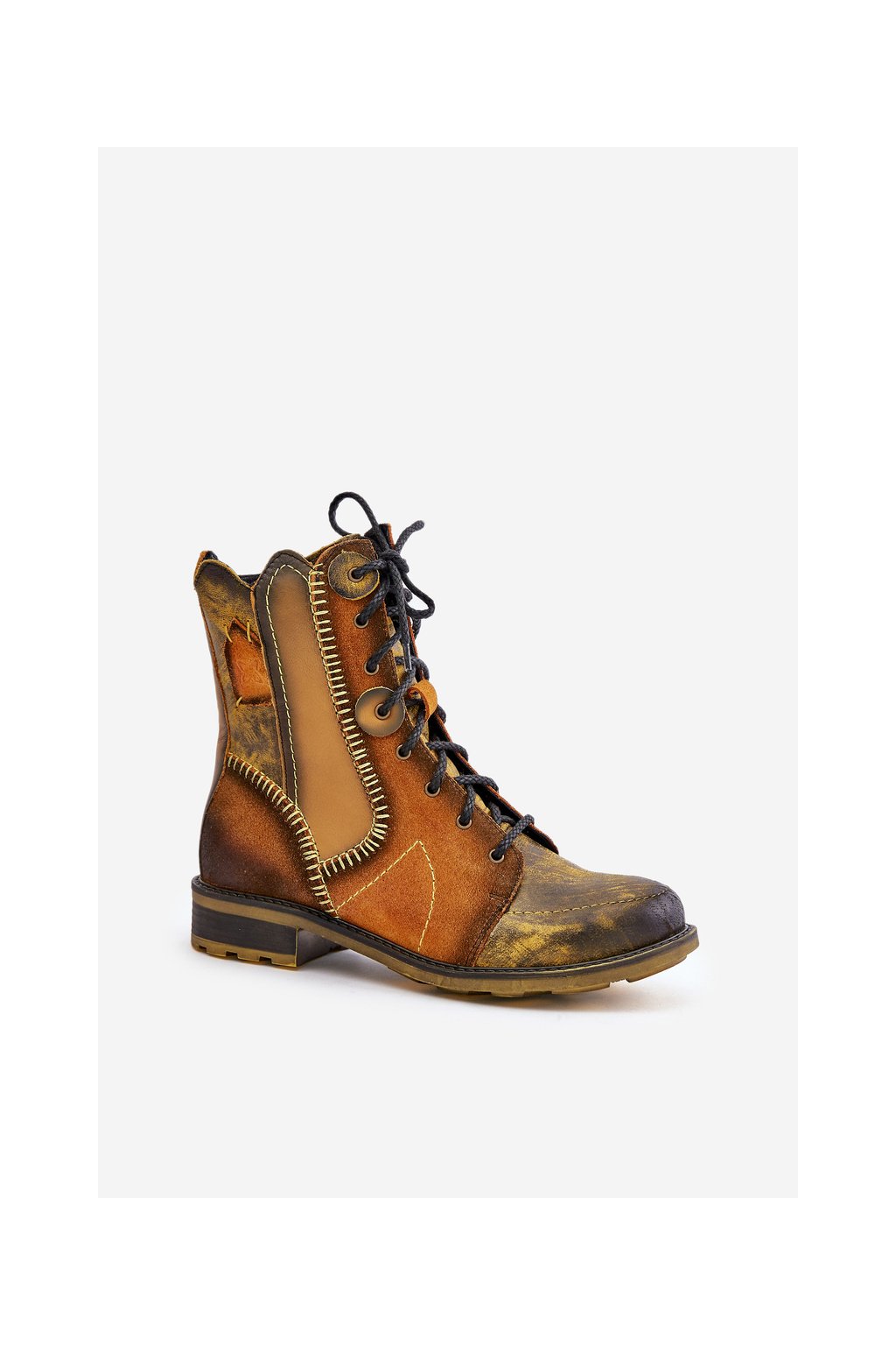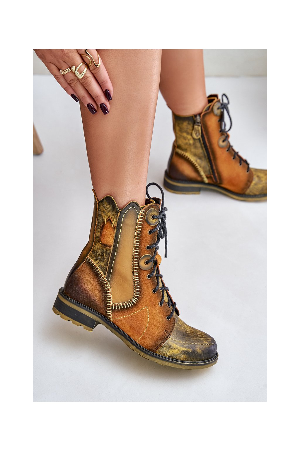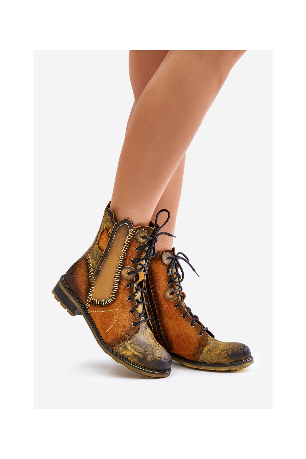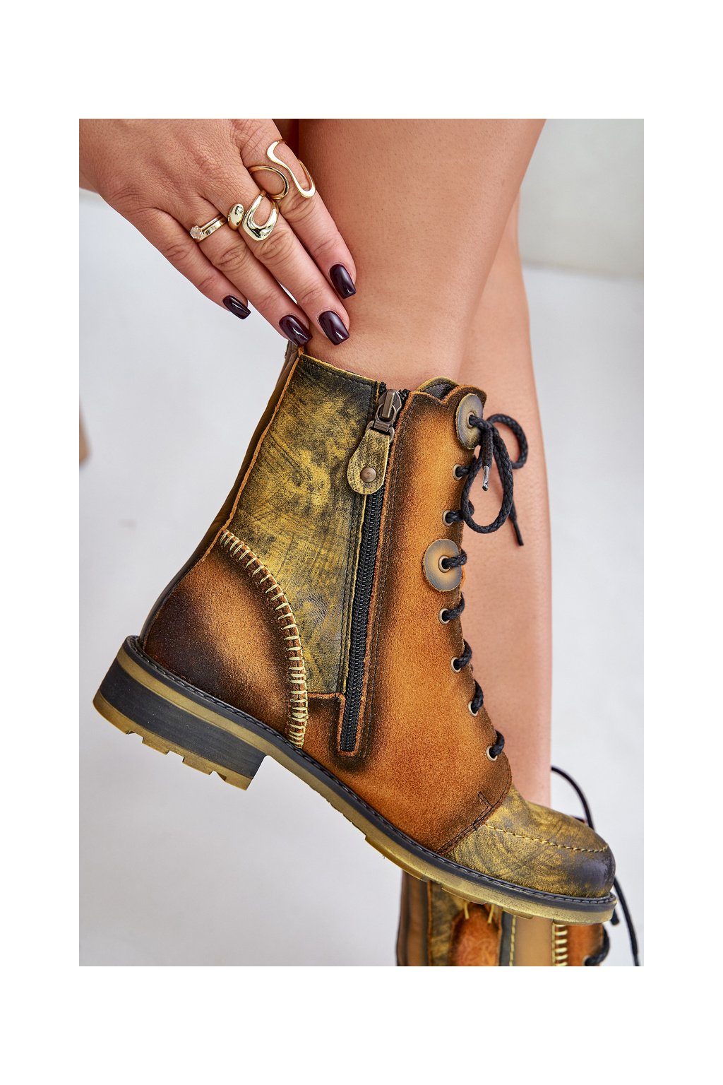 Žlté dámske členkové topánky z prírodnej kože na rovnej podrážke, kód produktu 06719-07/00-8 ŻÓŁTY