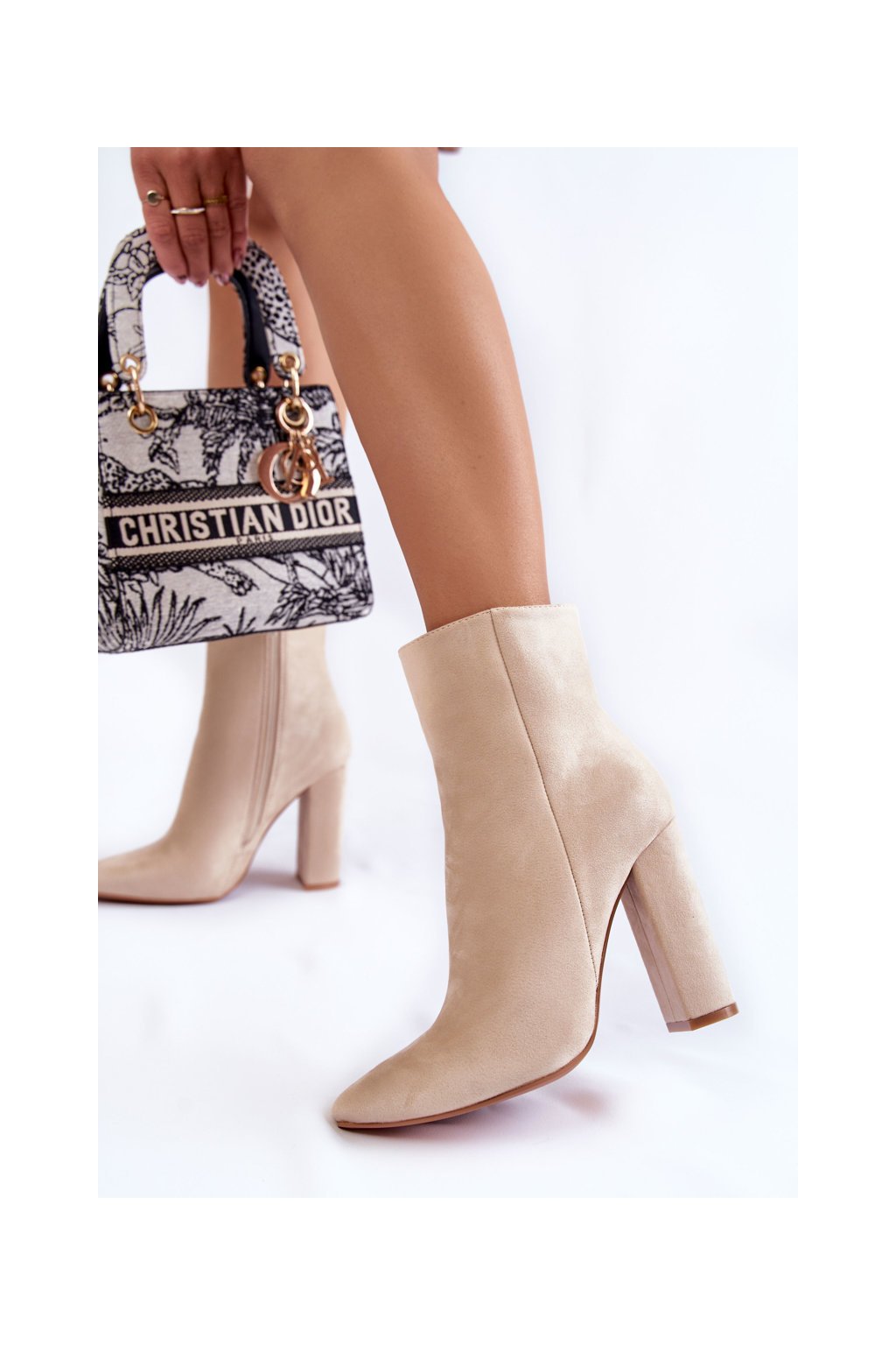 Elegantní semišové boty na sloupku béžové Ettany