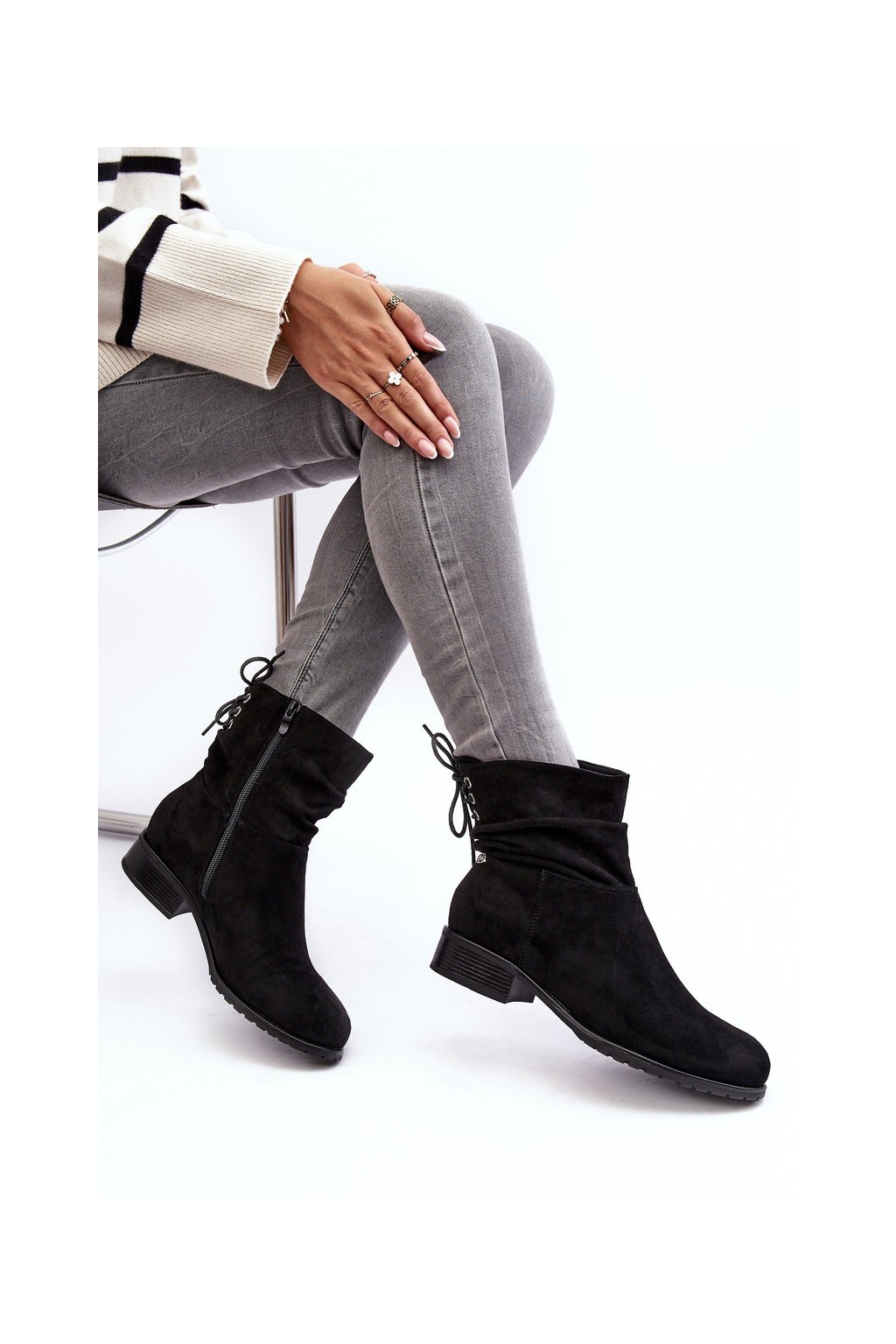 Stojí na plochom podpätku. Zips na boku topánky. Ozdobná šnúrka na zadnej strane. Zaoblená špička. Vnútorná strana podšitá kožou na obuv. Skvelý model pre mnohé štýly! Pri výbere veľkosti sa riaďte tabuľkou veľkostí.