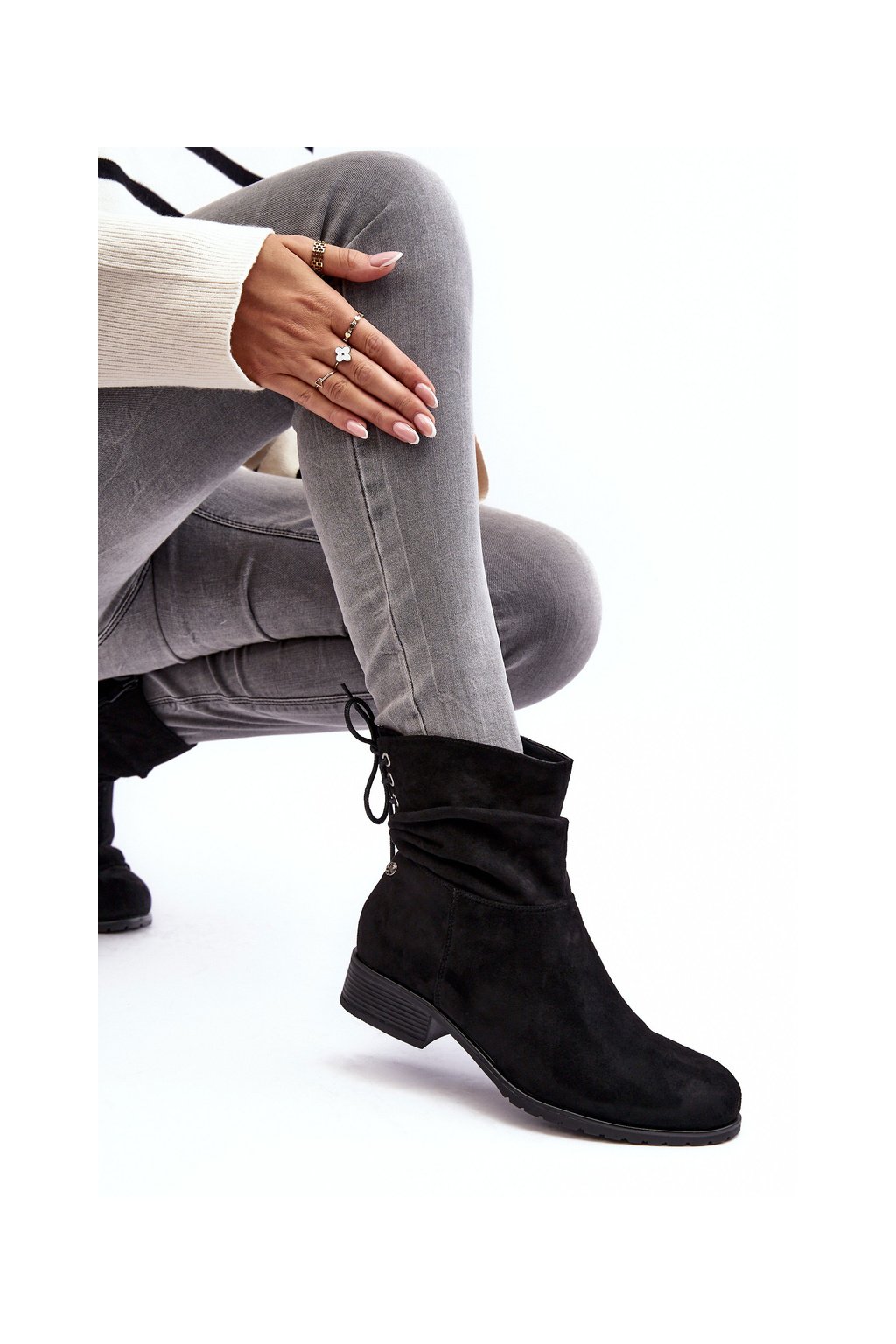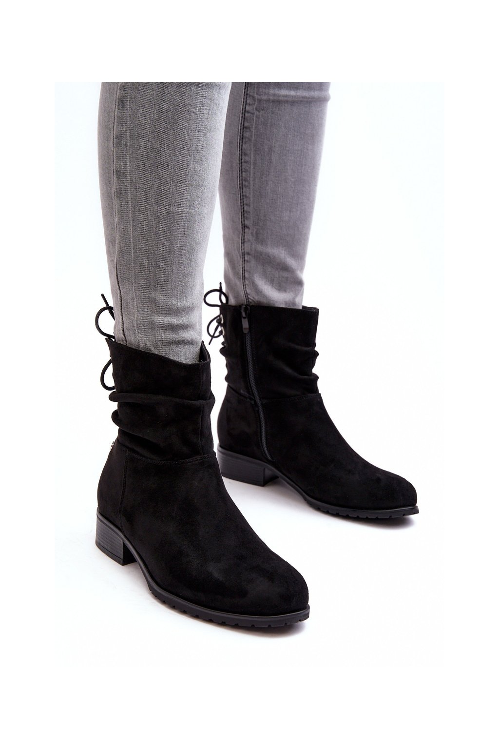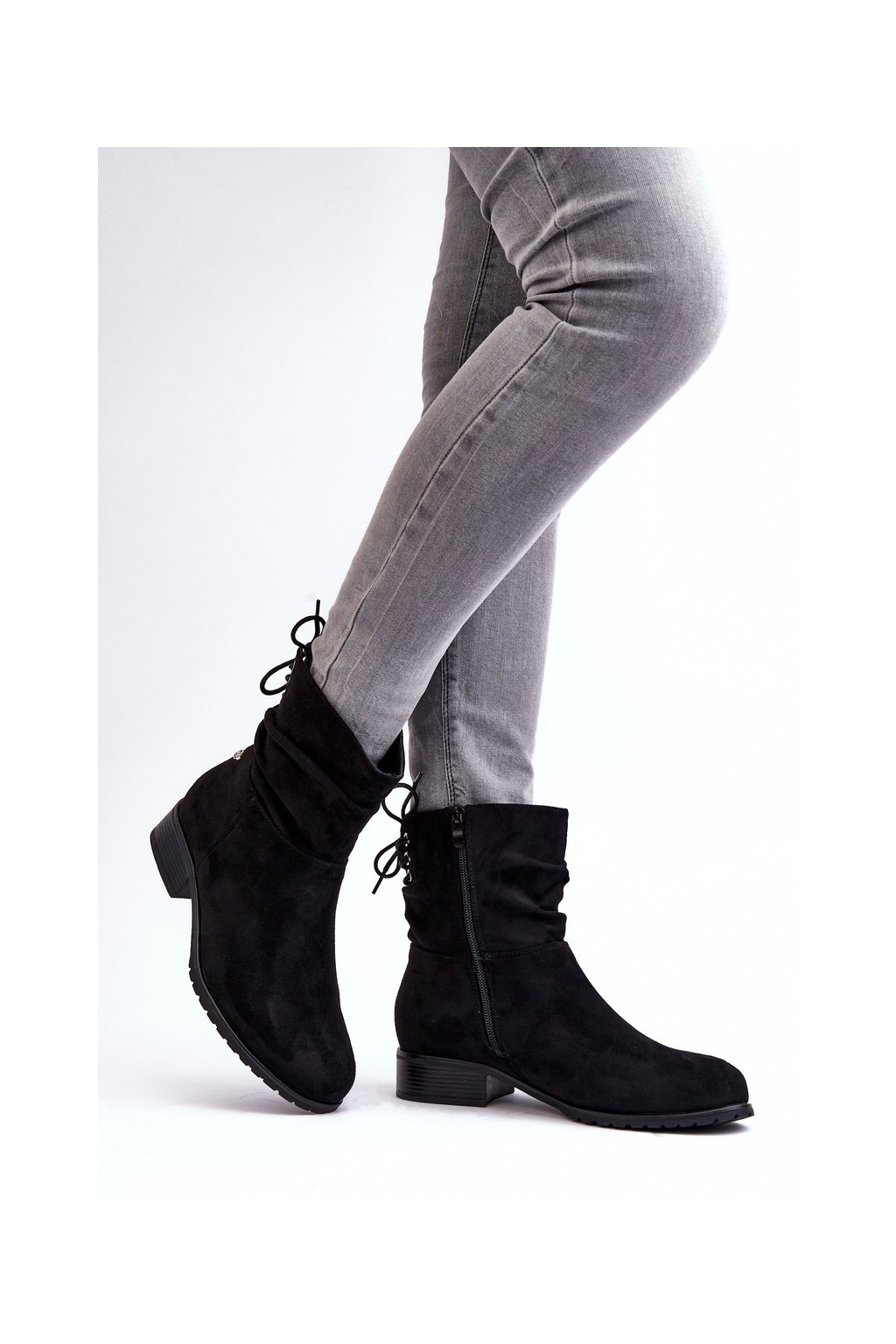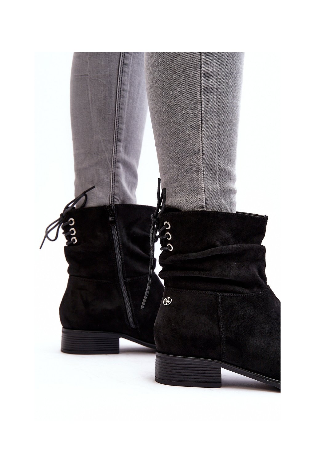 Dámské semišové boty s plochou podpatek černé Keresa (Veľkosť 36)
