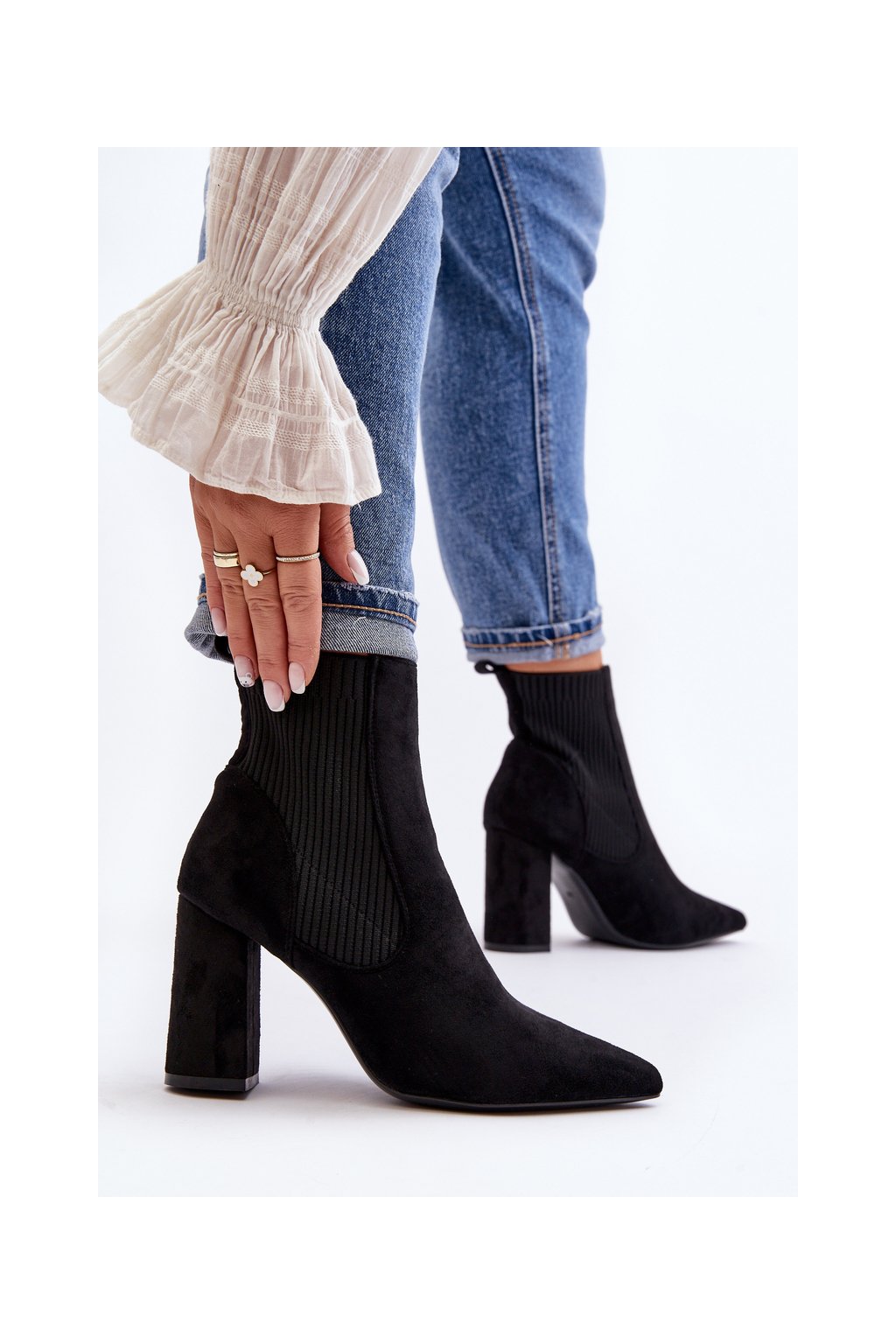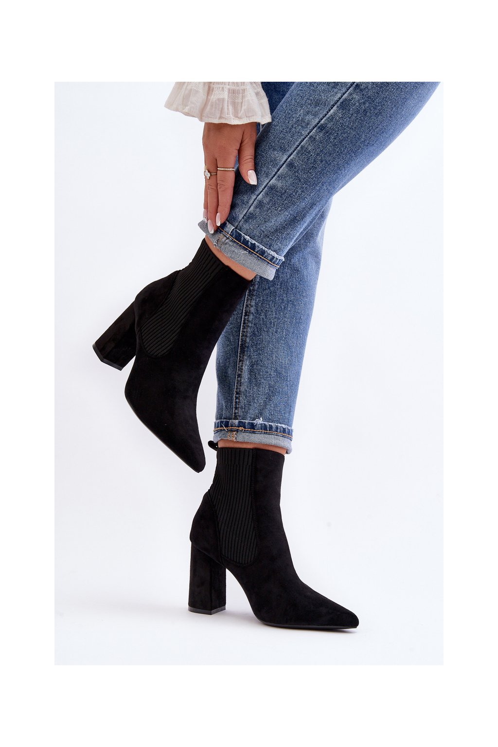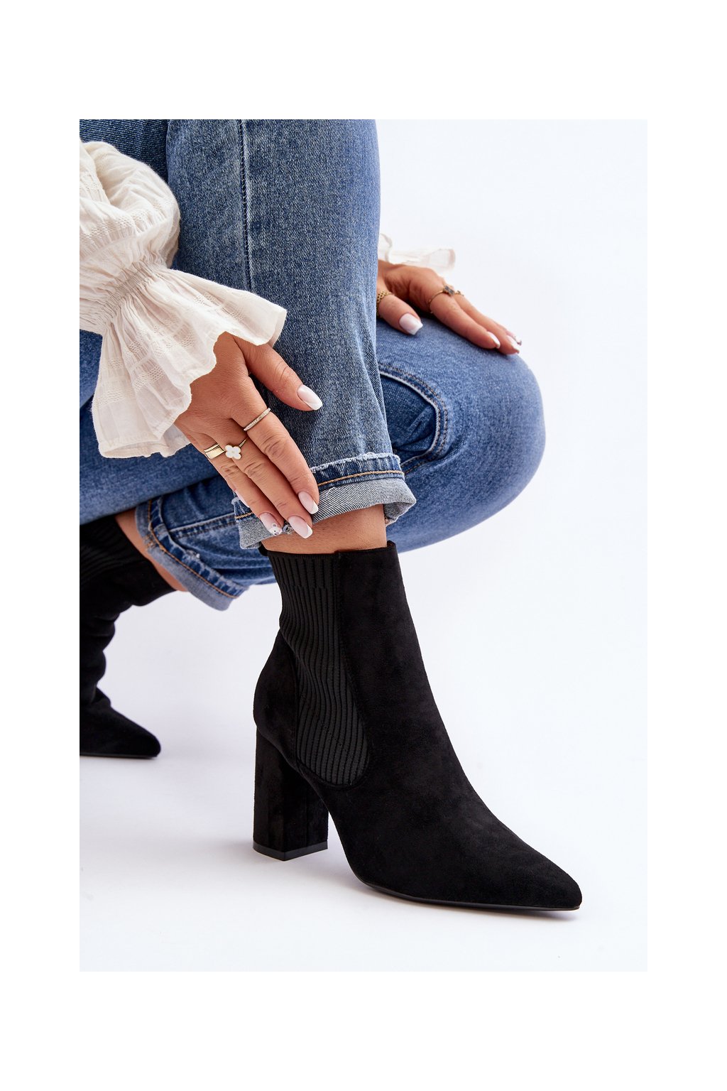 Čierne dámske členkové topánky s stĺpovým podpätkom z eko semišu, DES905S BLACK