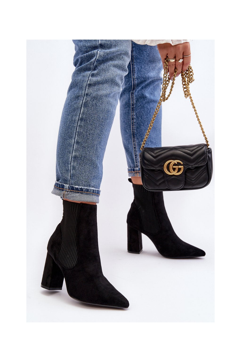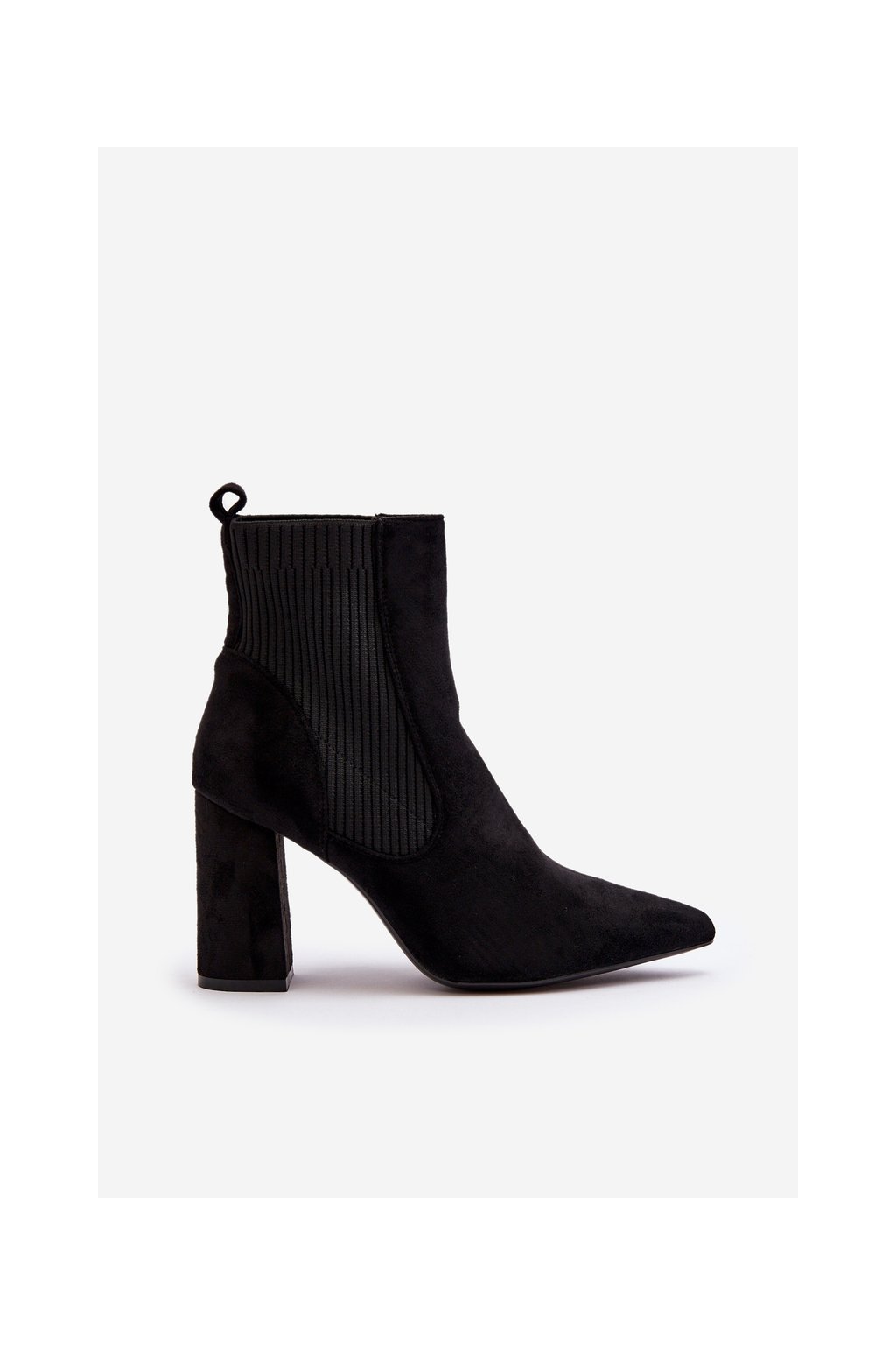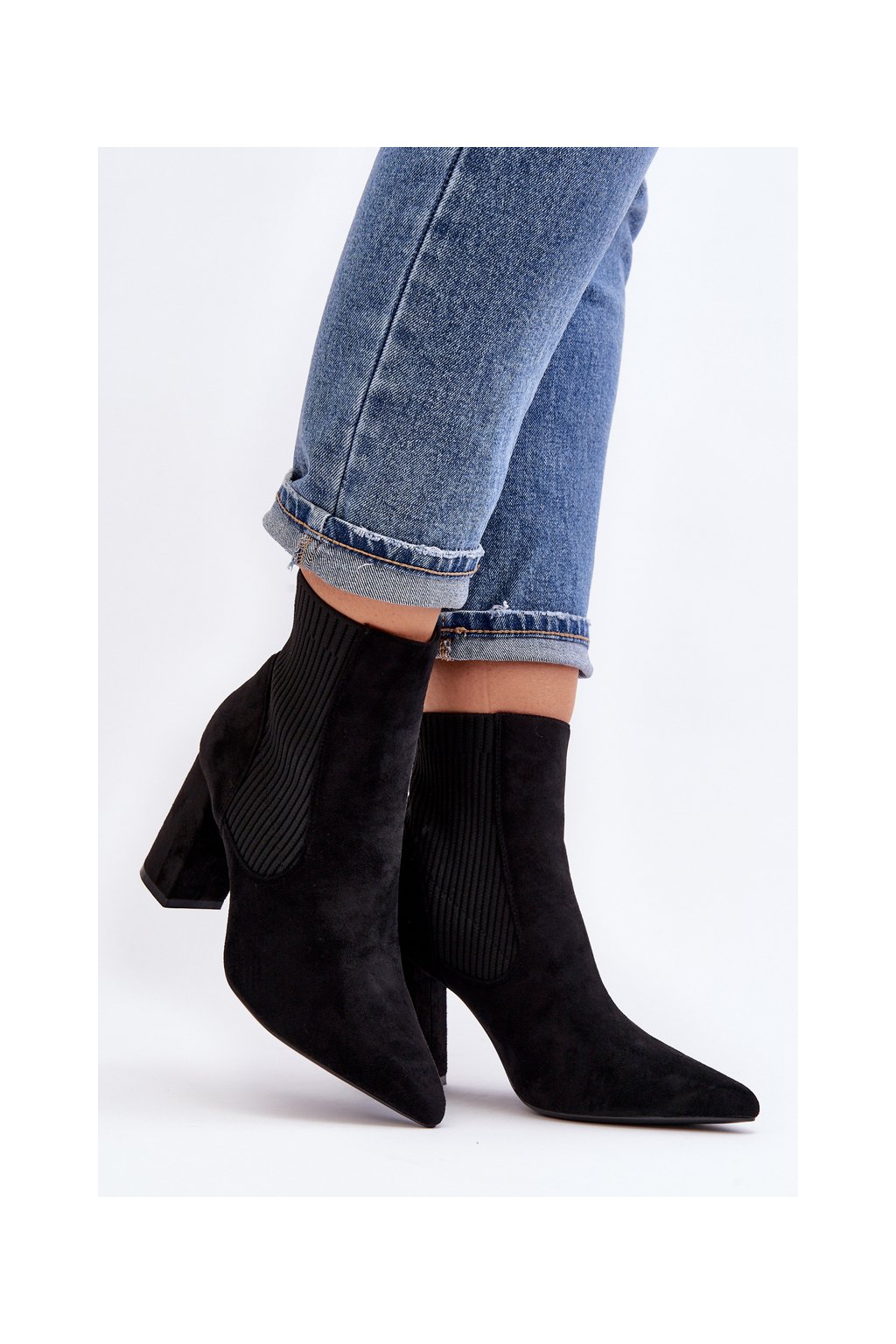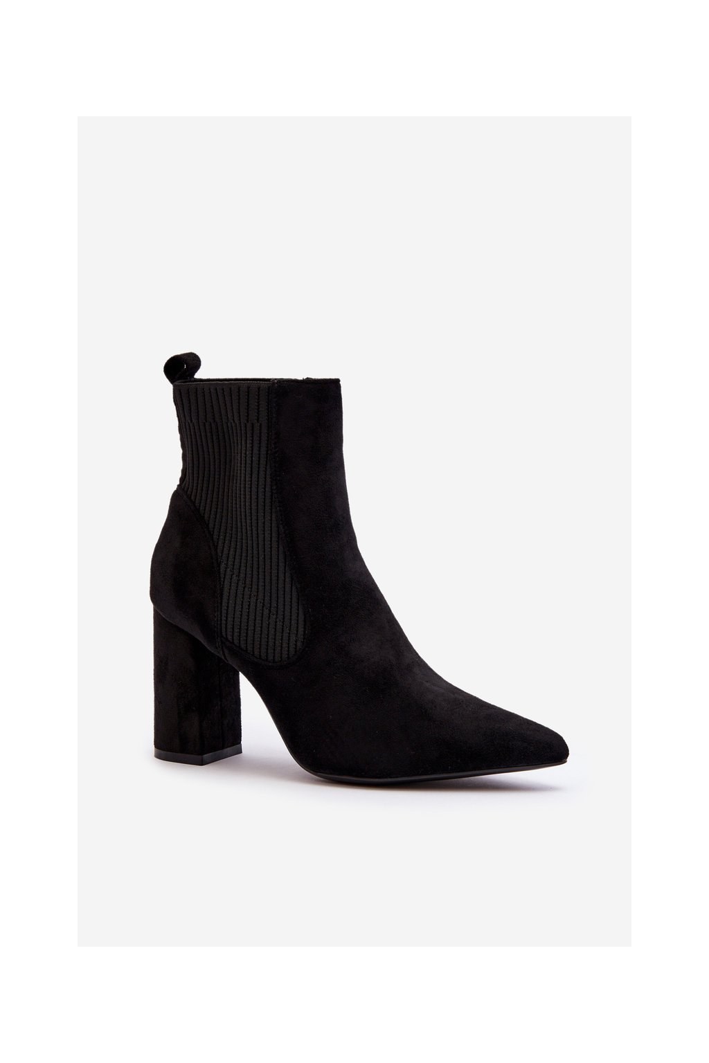 Čierne dámske členkové topánky s stĺpovým podpätkom z eko semišu, DES905S BLACK