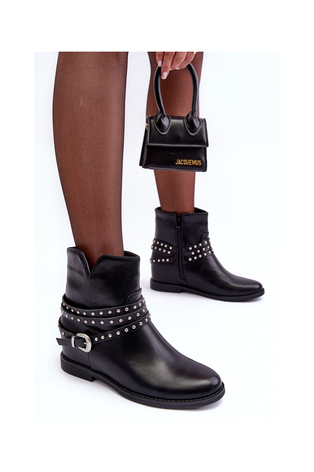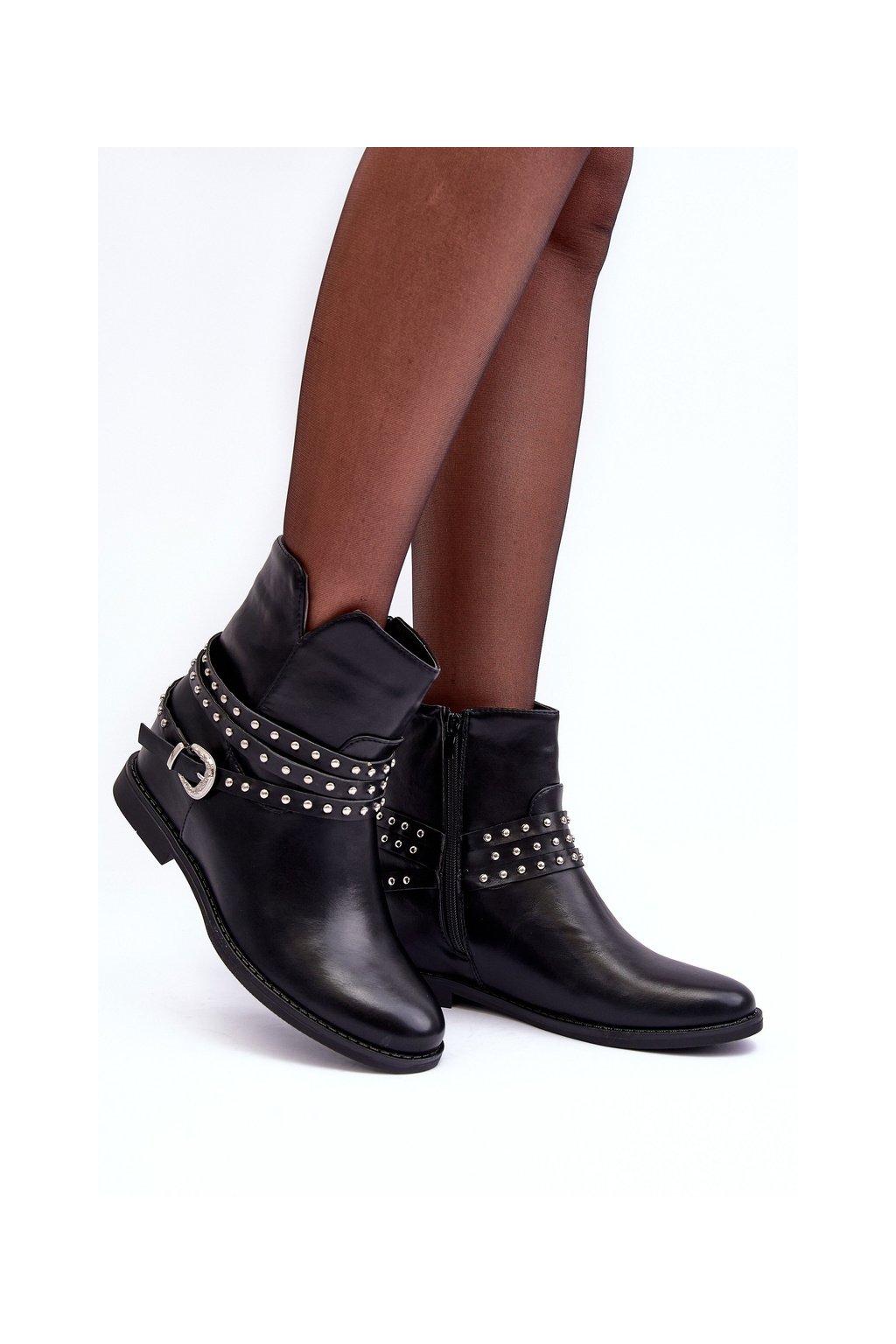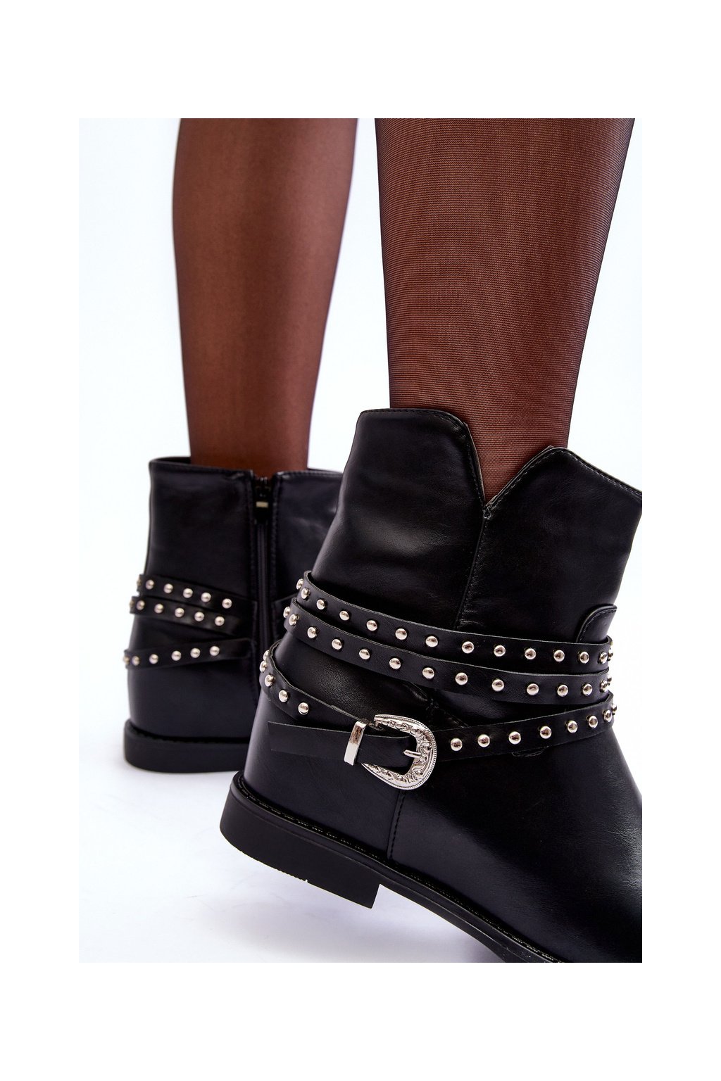 Kůže Zdobené Dámské Boty Na Ploché Podpatku Černé Adkrana