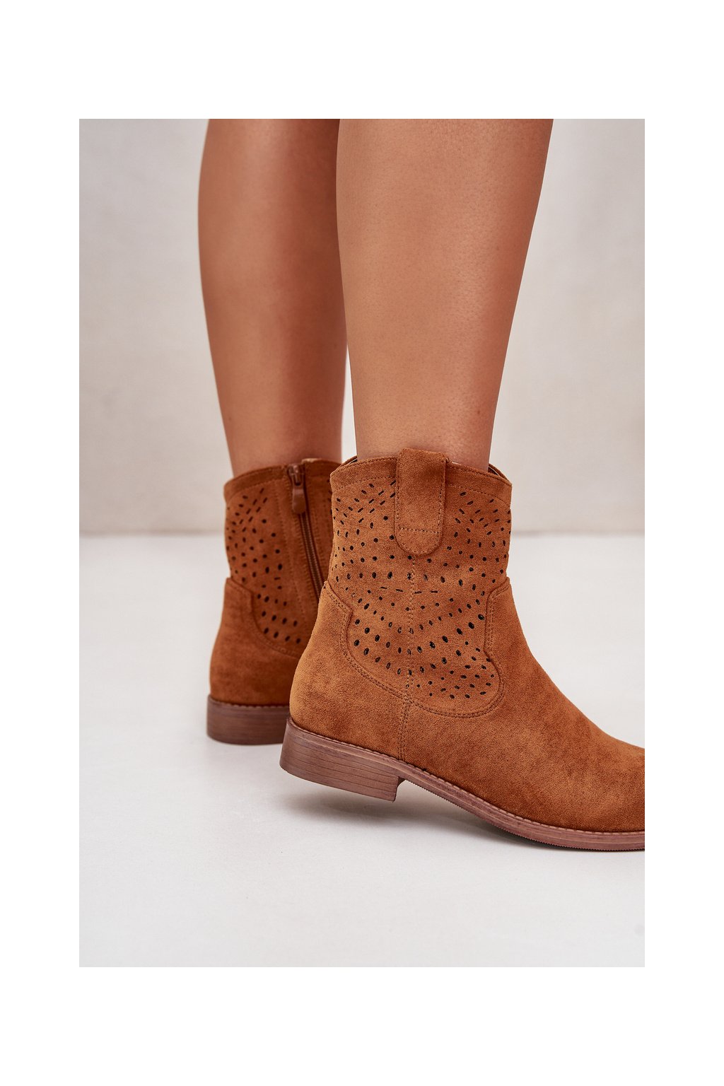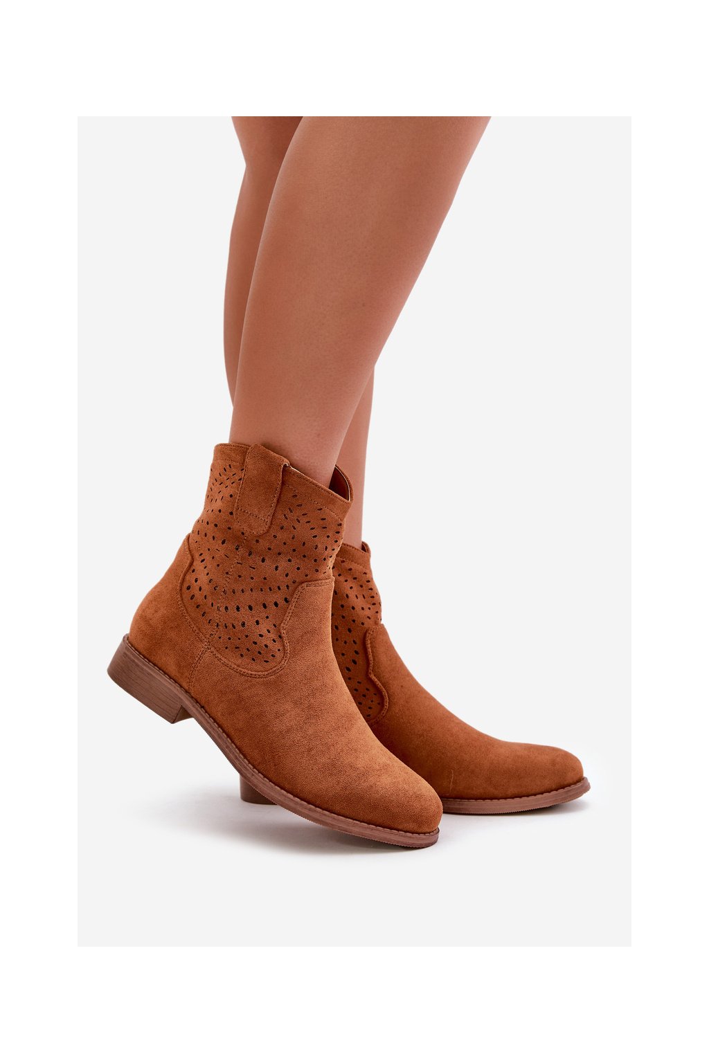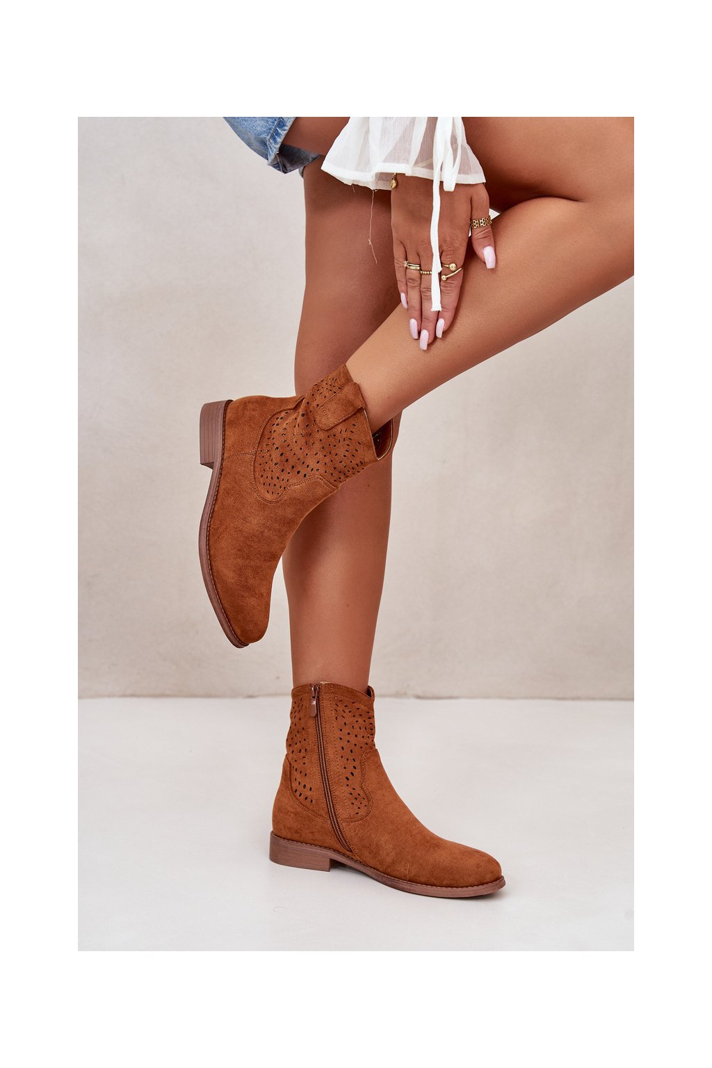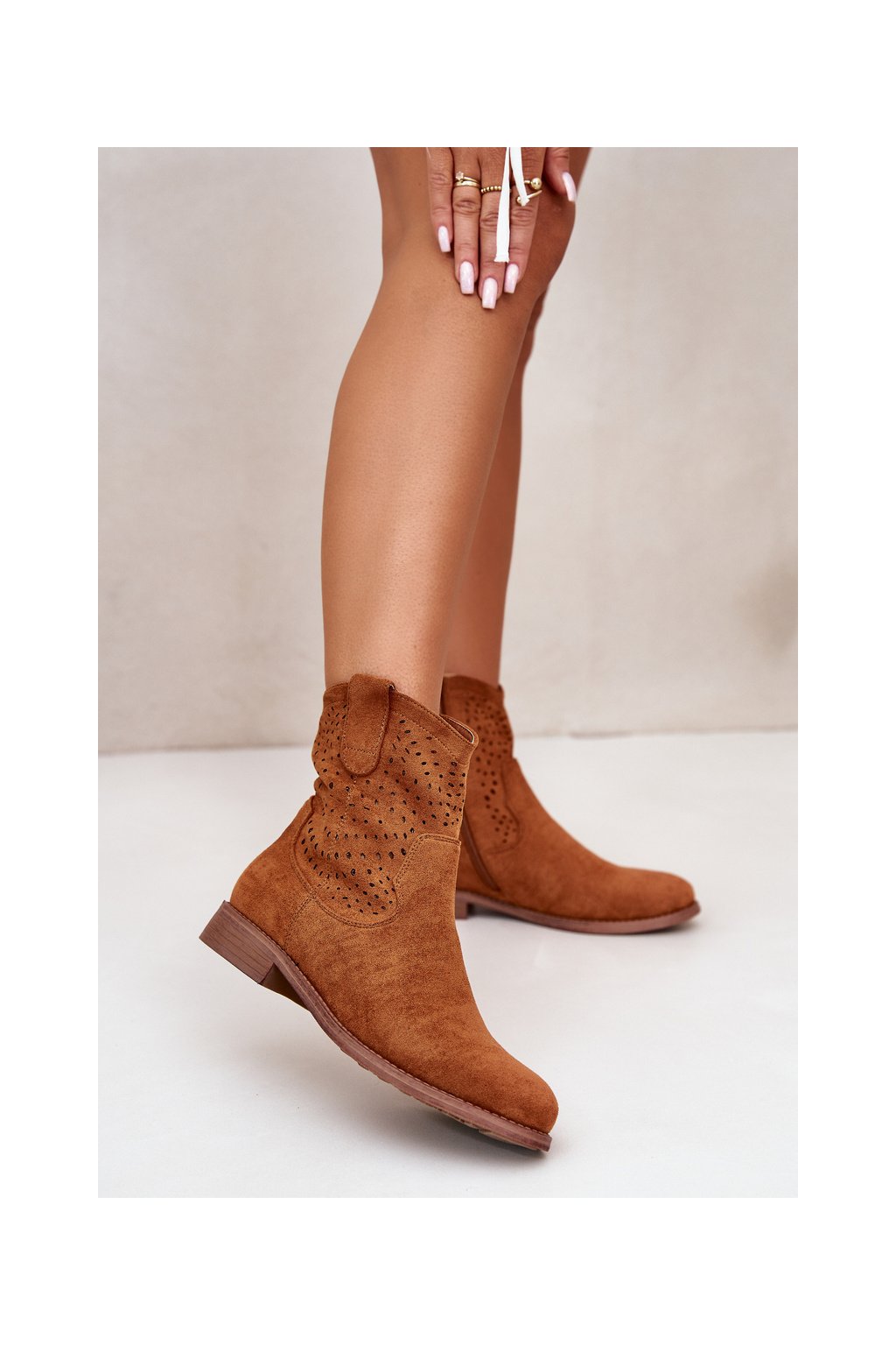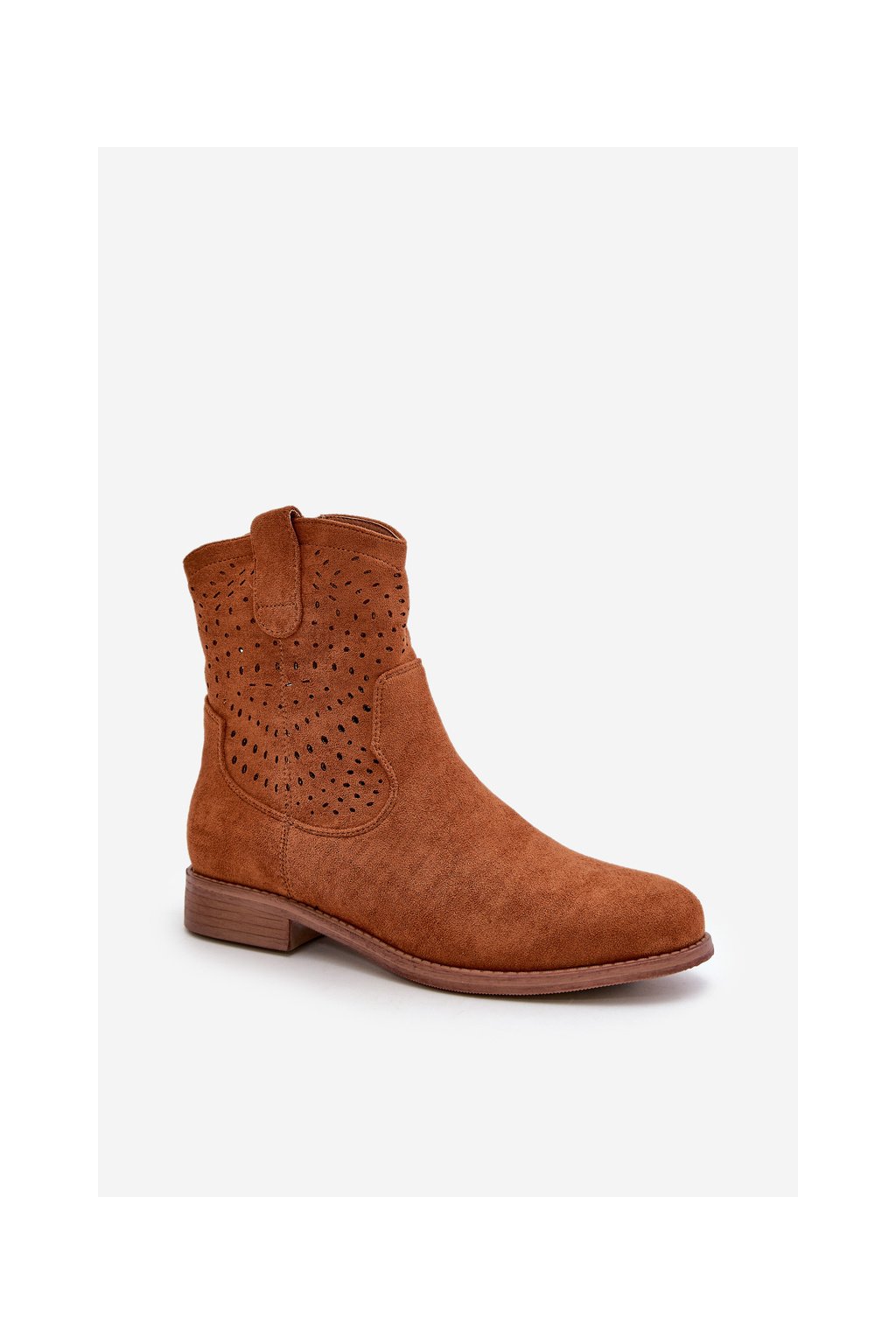 Hnedé dámske členkové topánky z eko semišu na nízkom podpätku, HY42-135 CAMEL