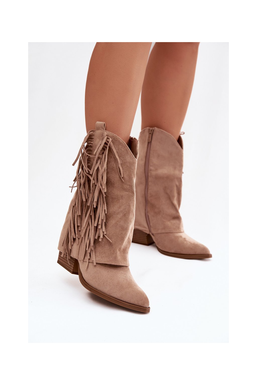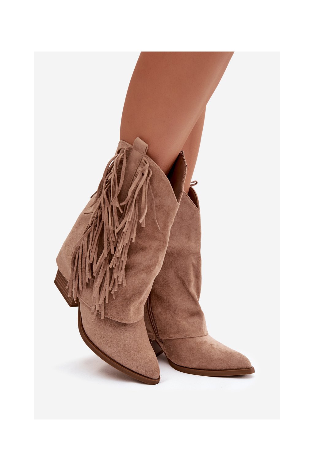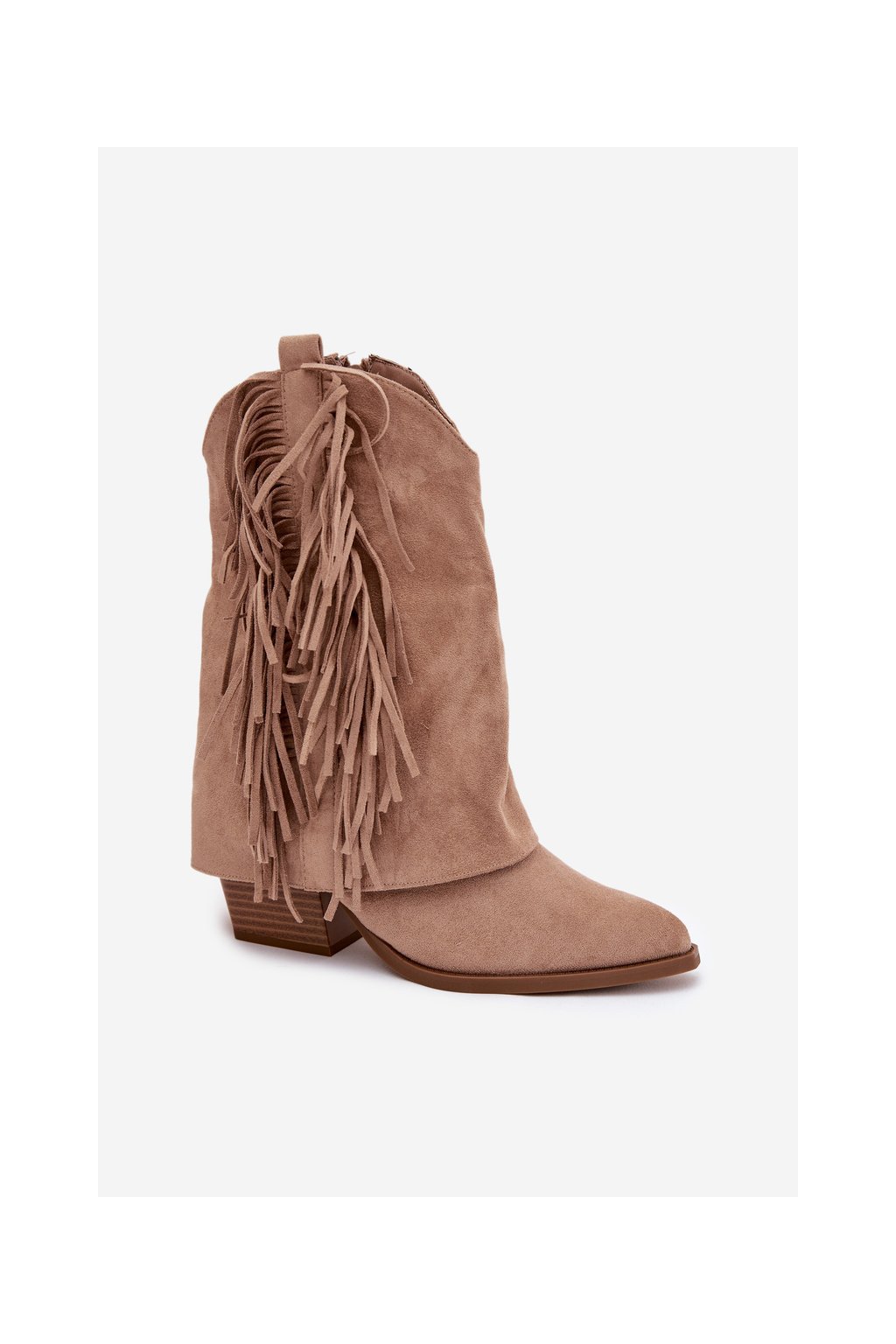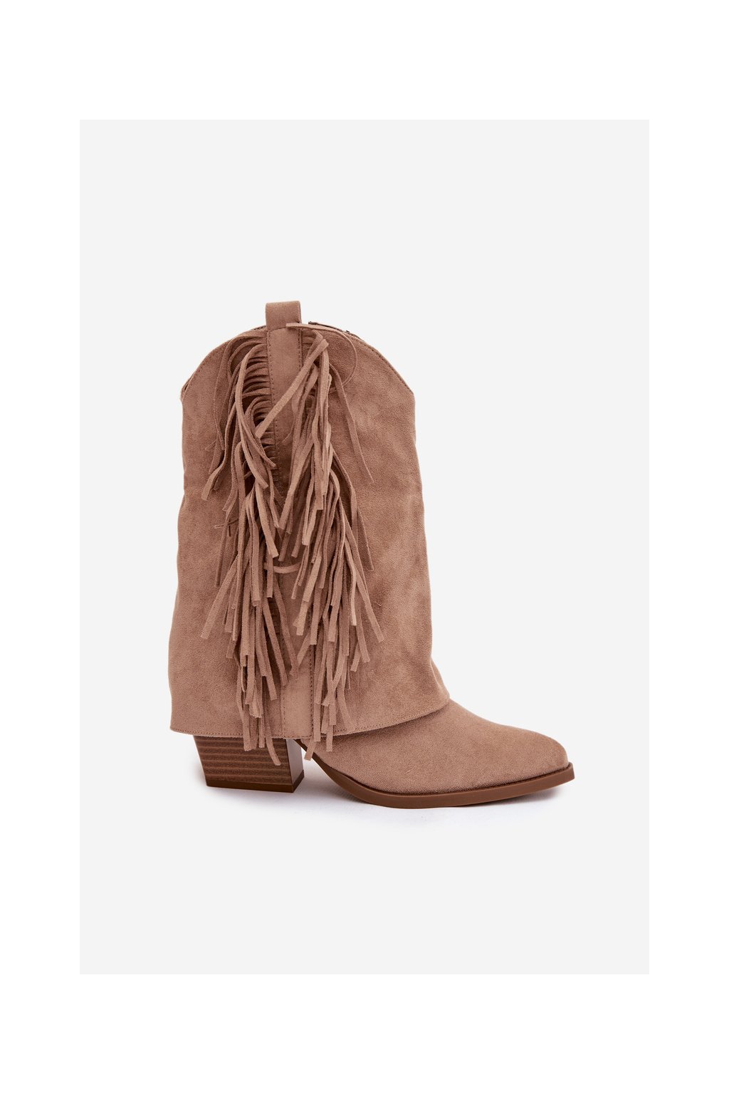 Dámske cowboy členkové topánky so strapcami na podpätku khaki gralina / 168-612 KHAKI