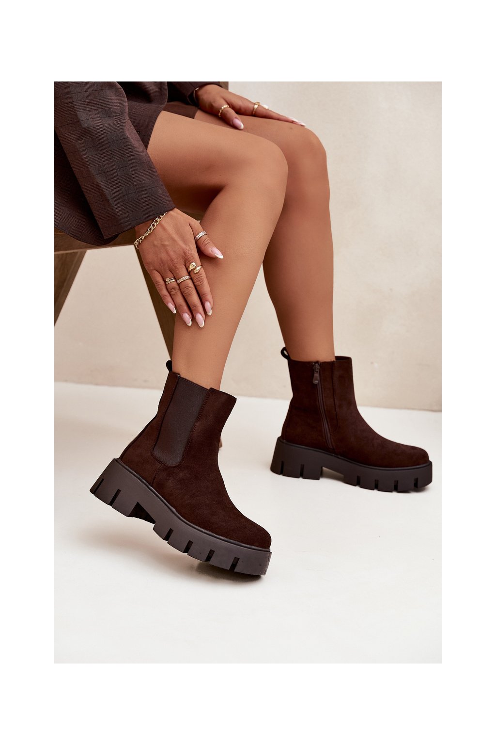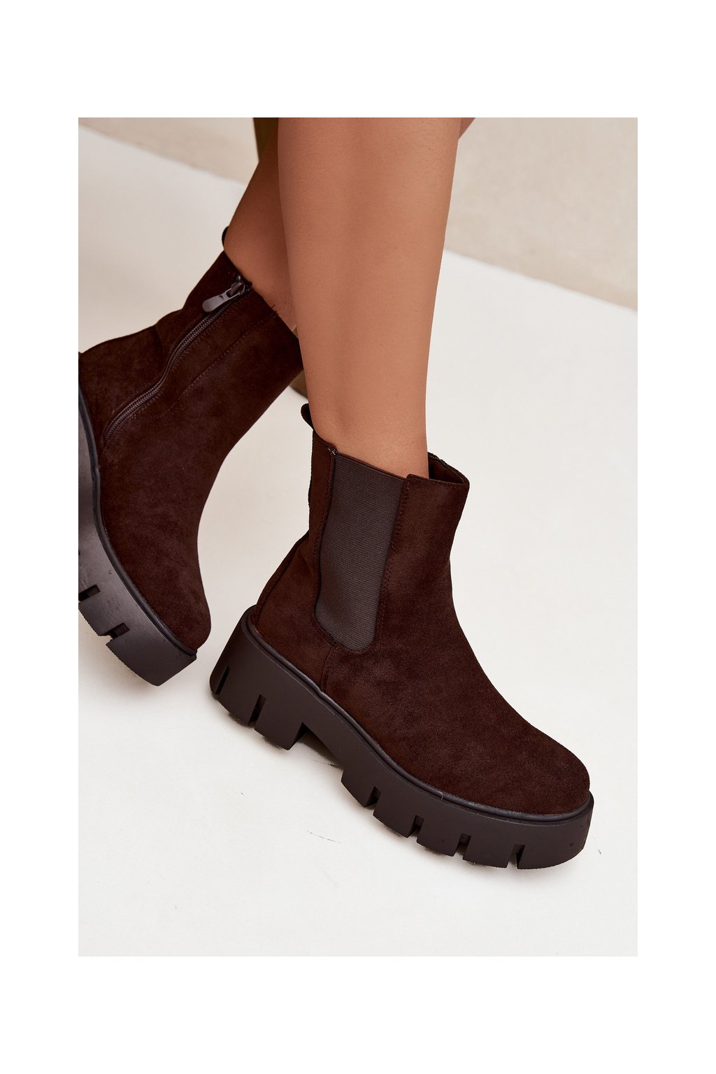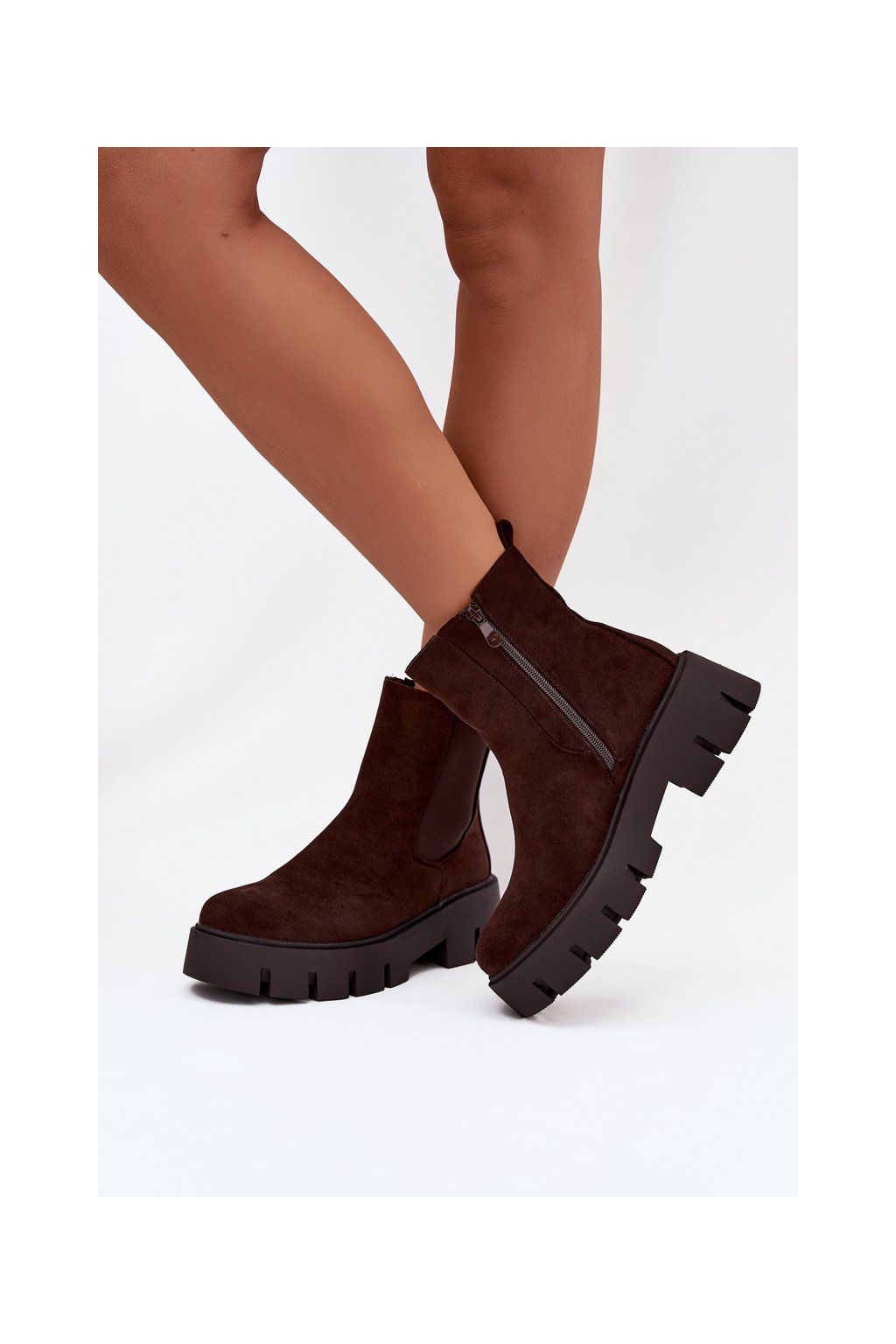 Dámské kotníkové boty se zateplením na zip ekokůže hnědé Fivienne
