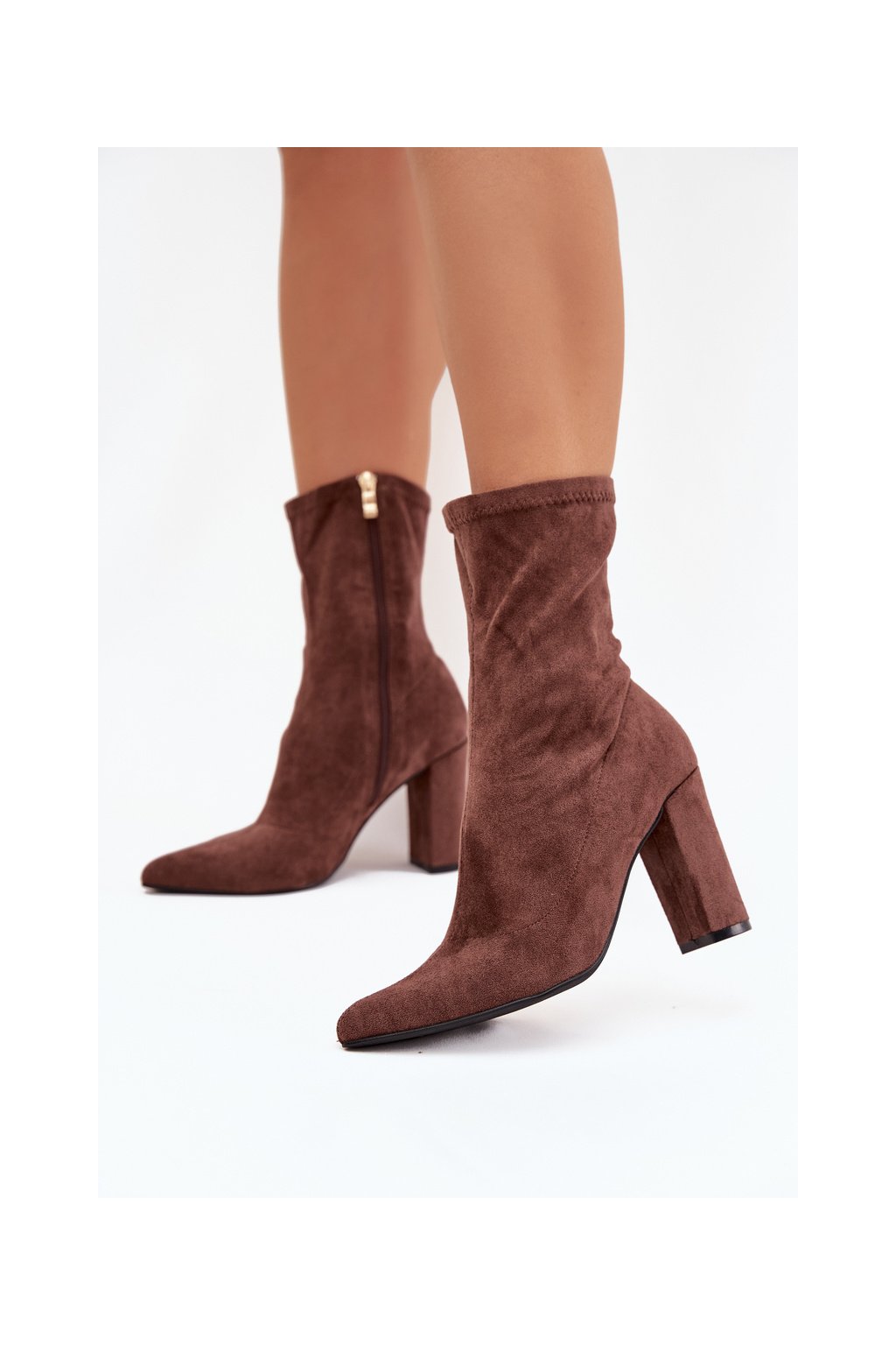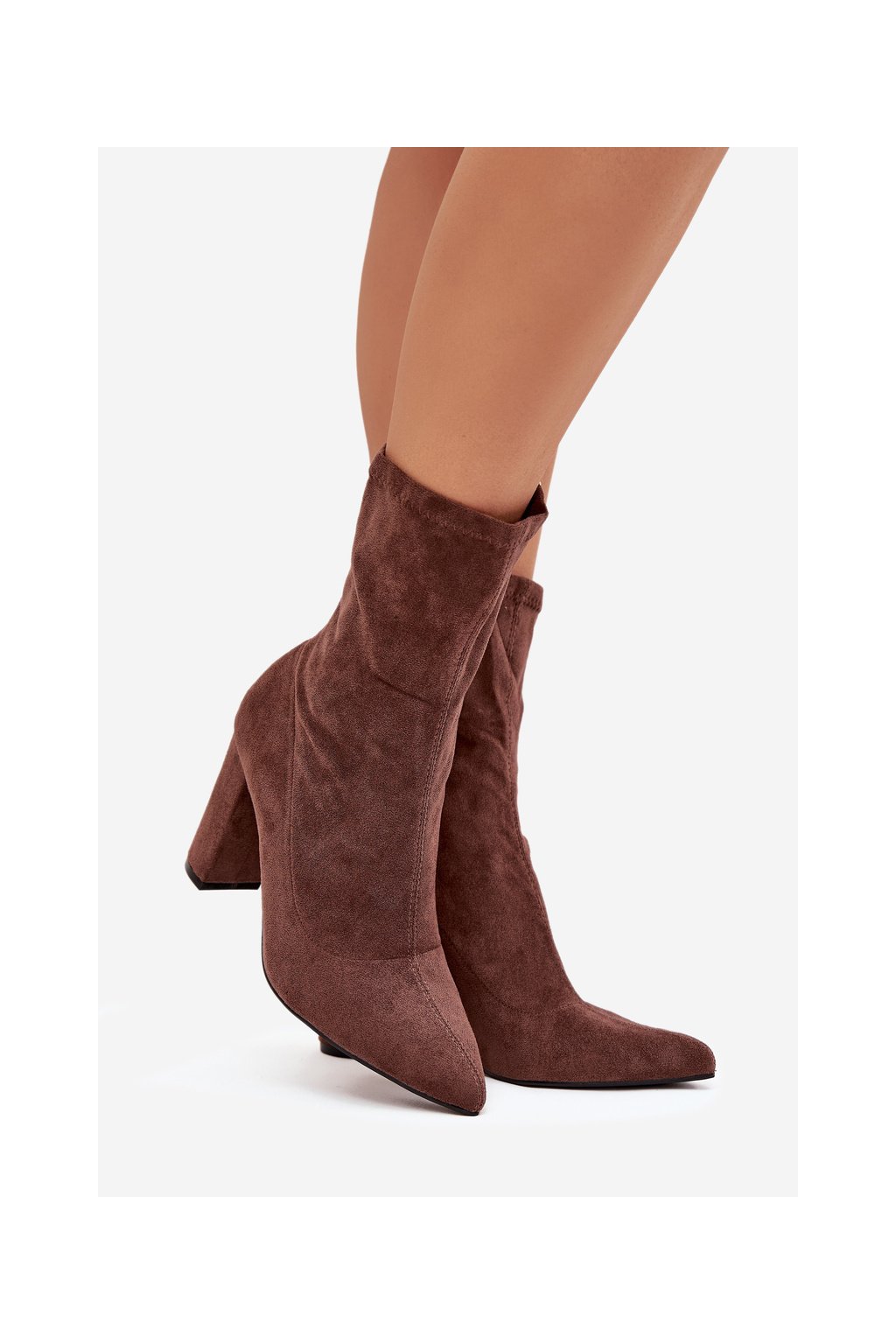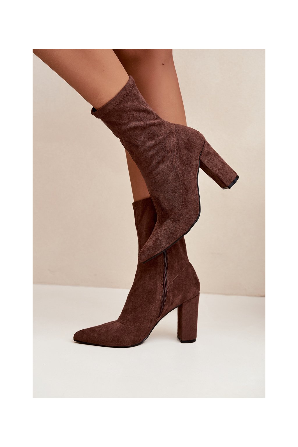 Dámské kozačky na podpatku s prošíváním hnědé Rosivelle
