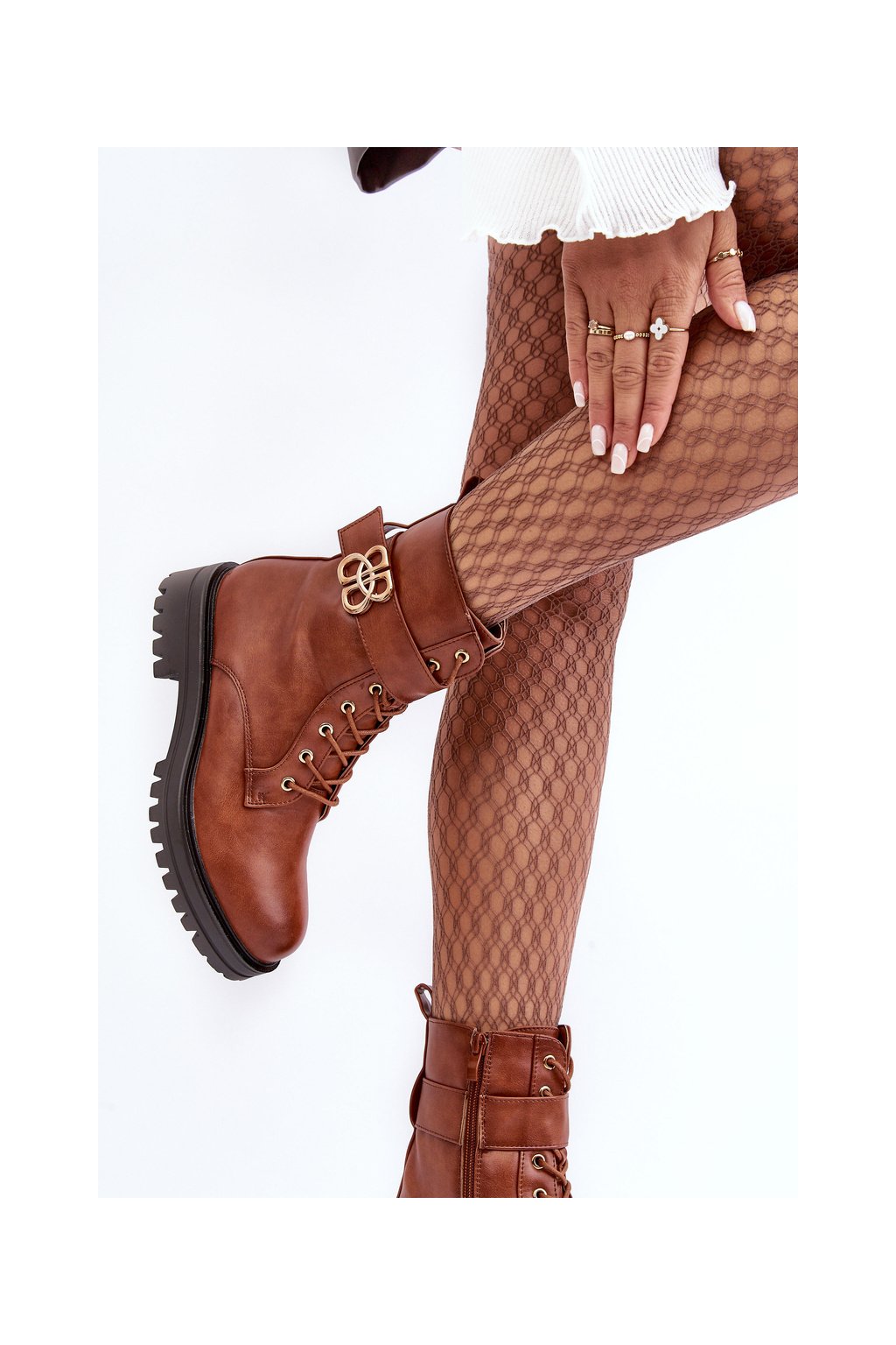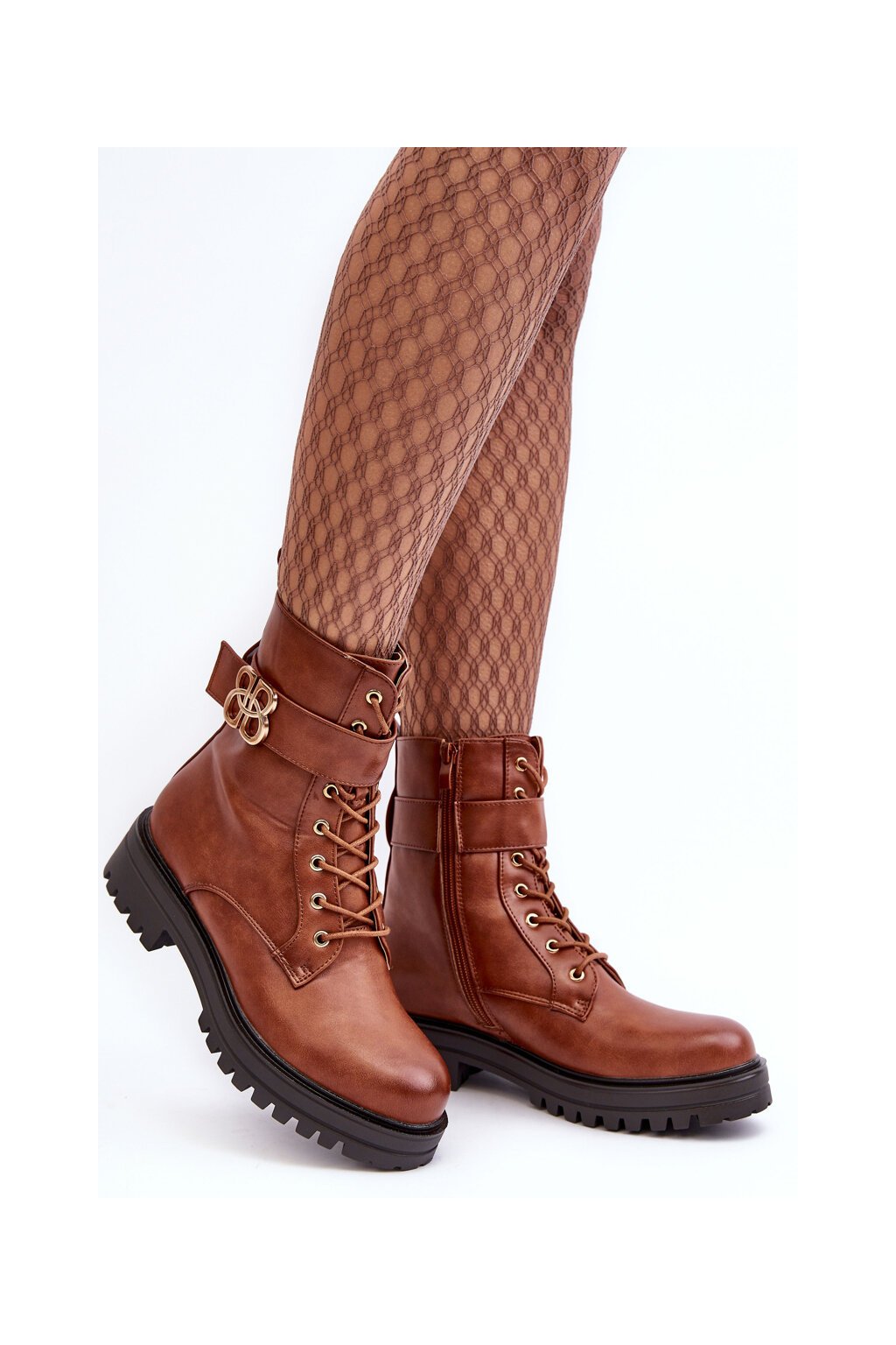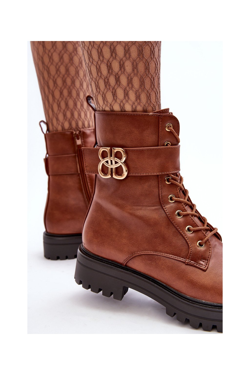 Dámske pracovní členkové topánky na zips s ozdobou hnedé ciossava / QT17 CAMEL