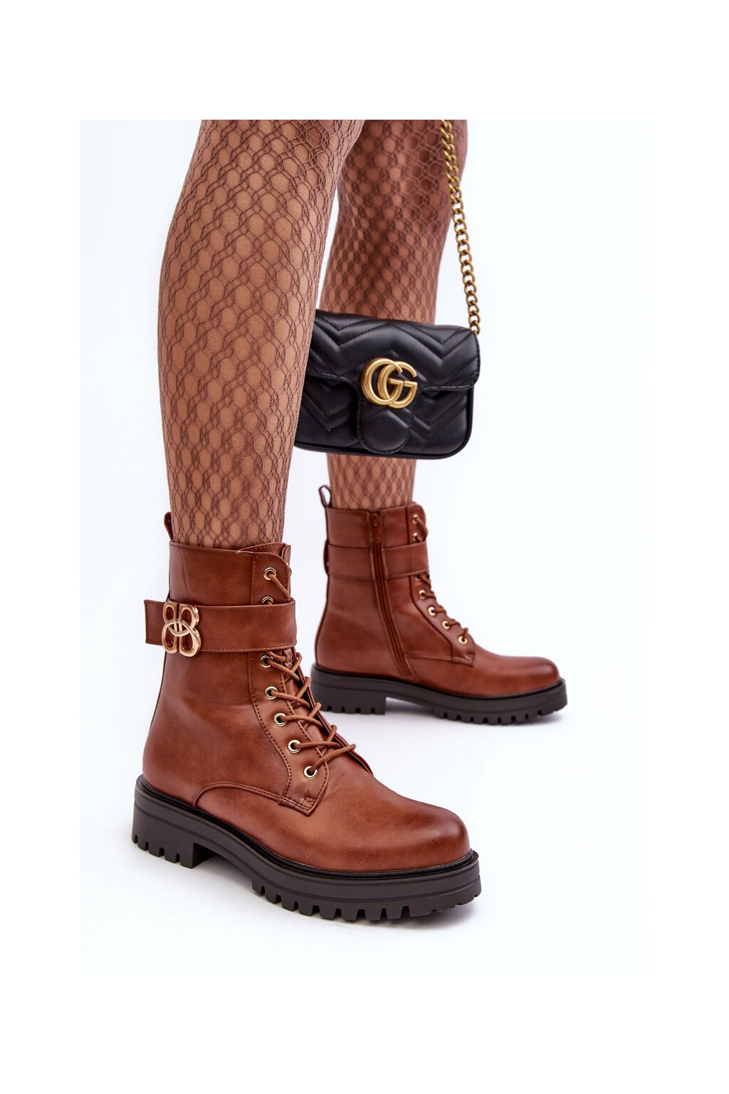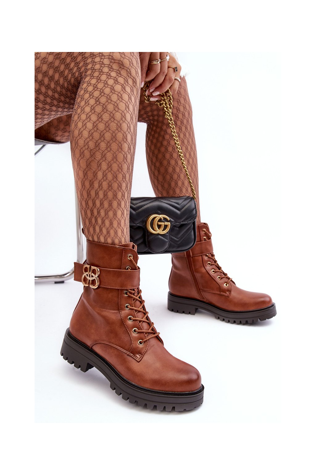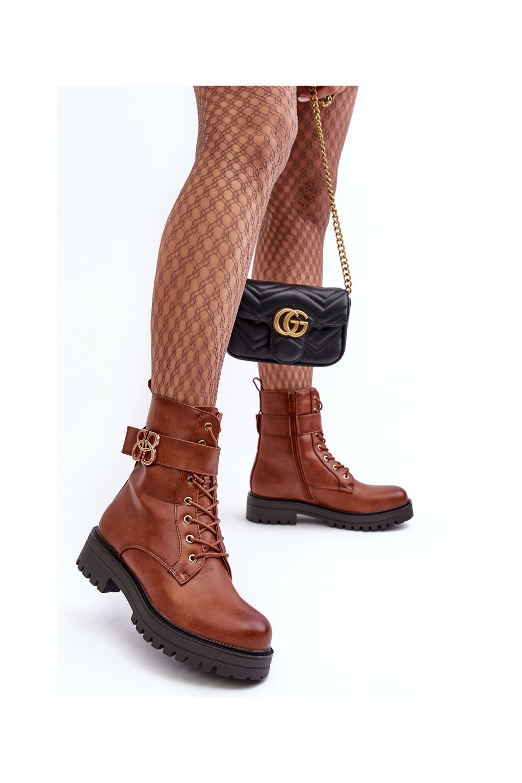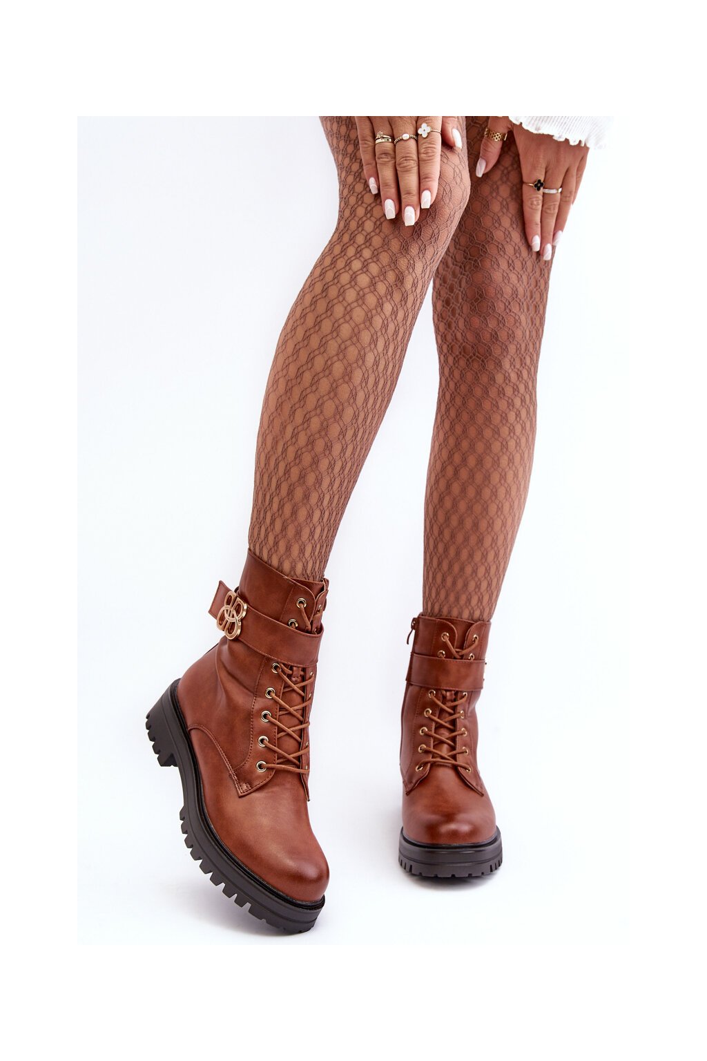 Dámske pracovní členkové topánky na zips s ozdobou hnedé ciossava / QT17 CAMEL