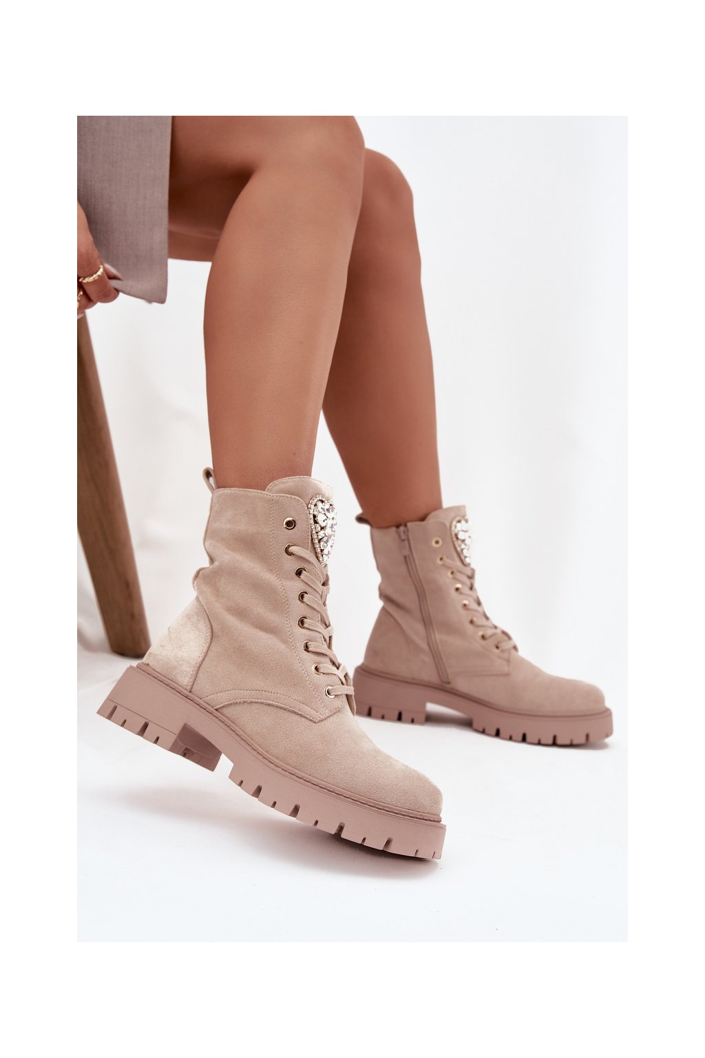 Dámské workery s krystaly na jazyku béžové Rosira