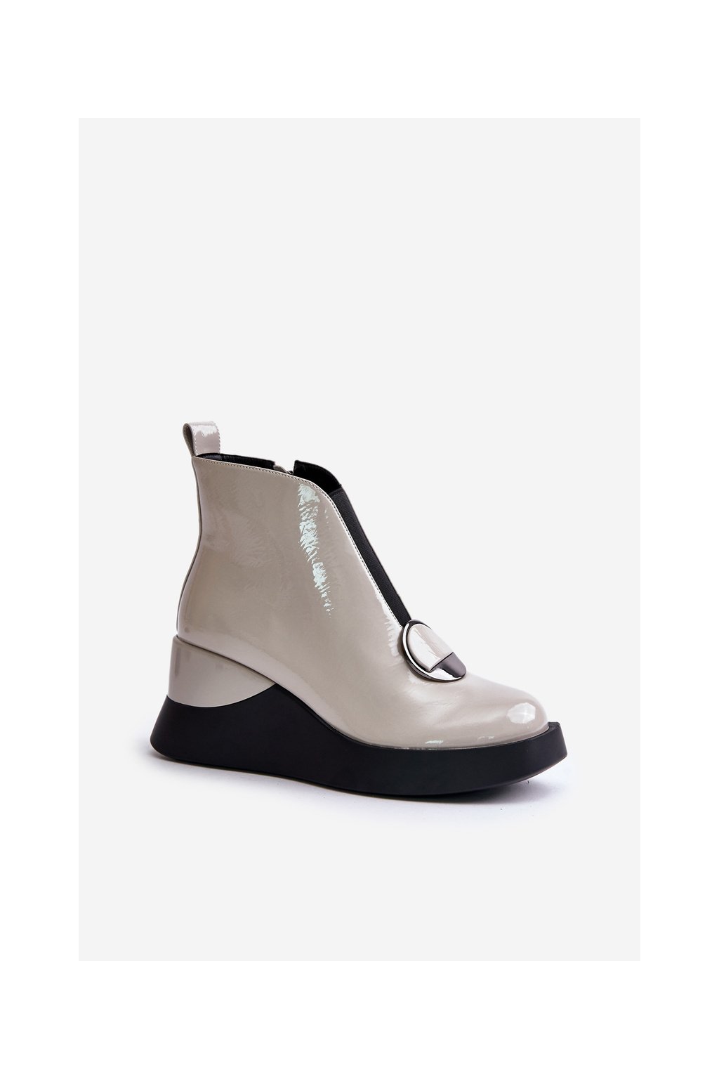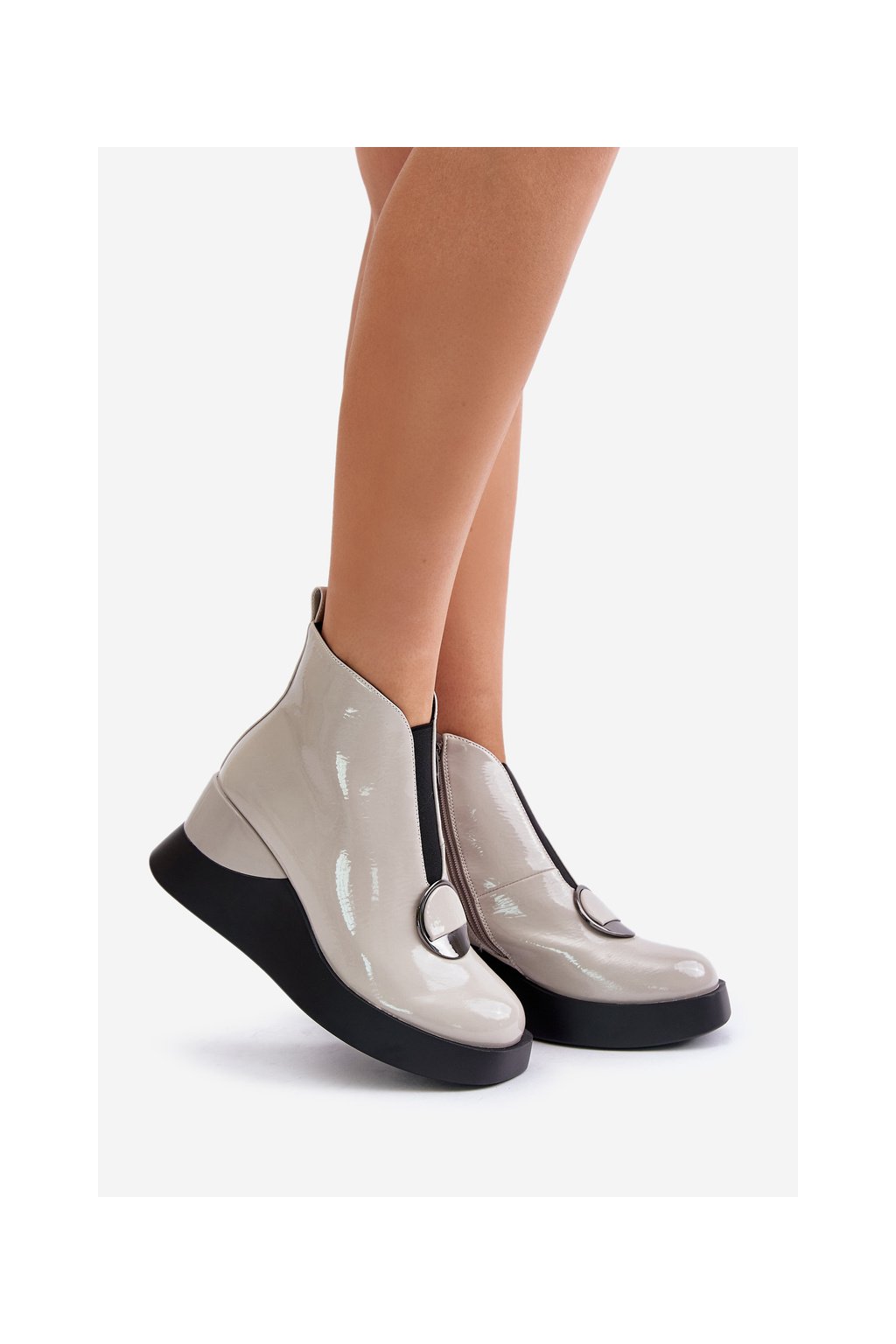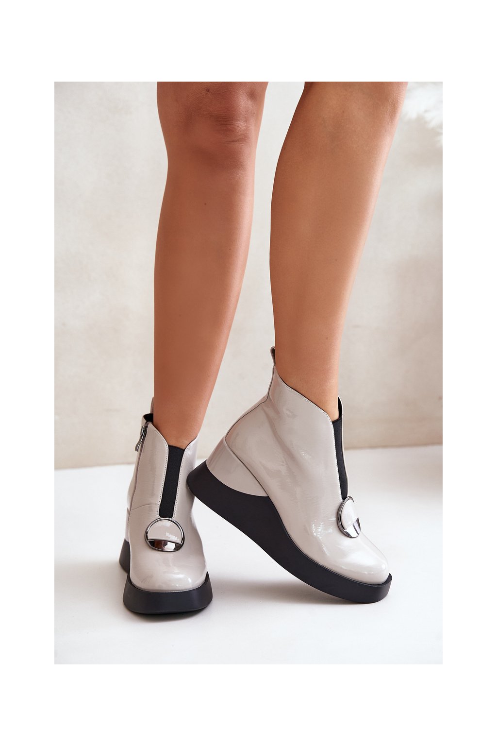 Elegantné sivé dámske členkové topánky s eko kožou, platformou a 7,5 cm podpätkom, kód produktu MR880-136 L.GREY