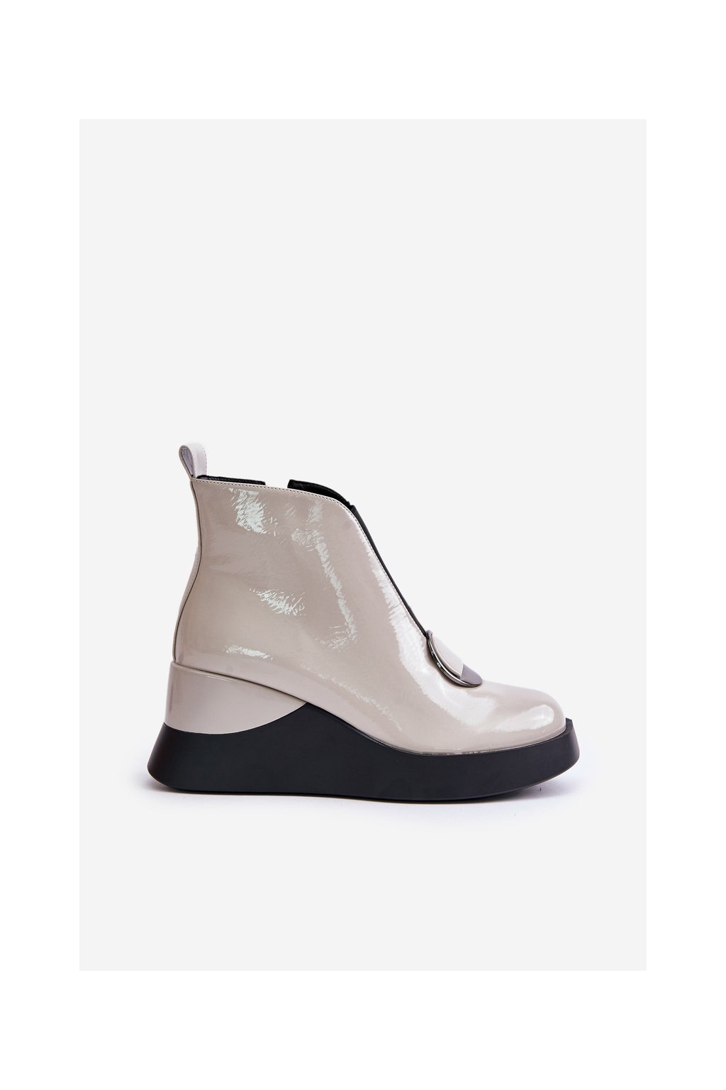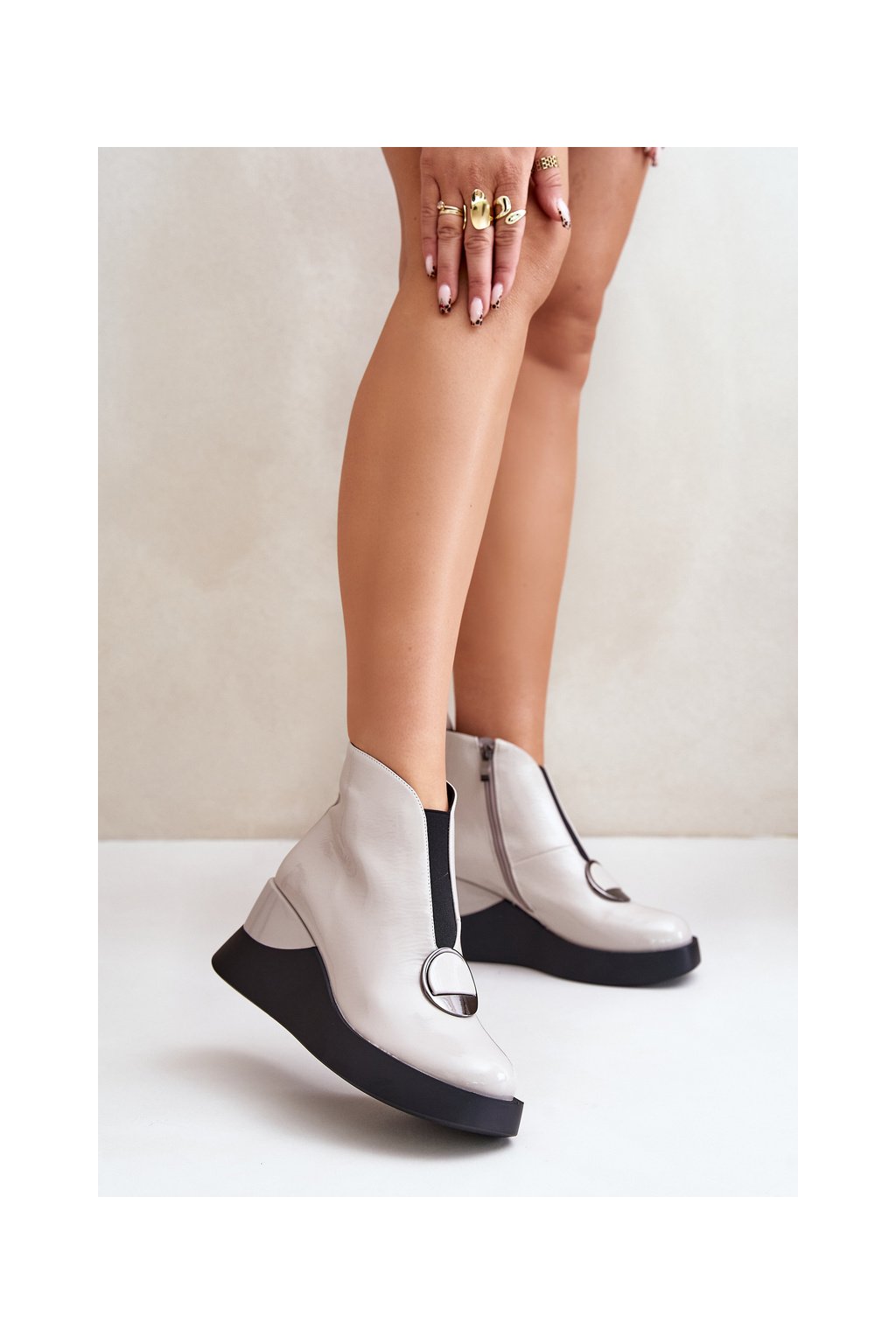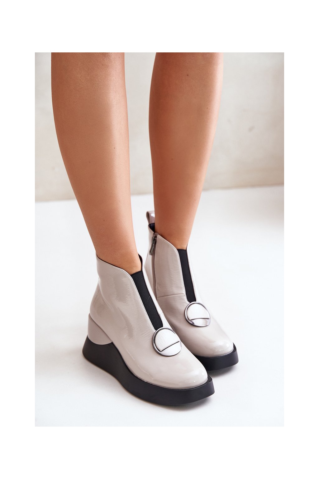 Elegantné sivé dámske členkové topánky s eko kožou, platformou a 7,5 cm podpätkom, kód produktu MR880-136 L.GREY