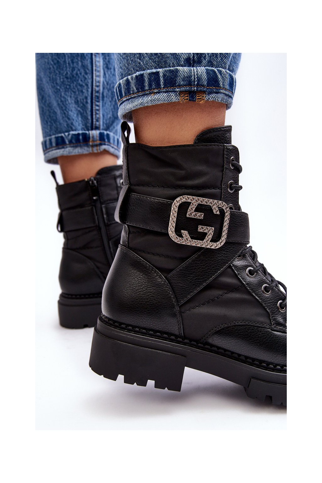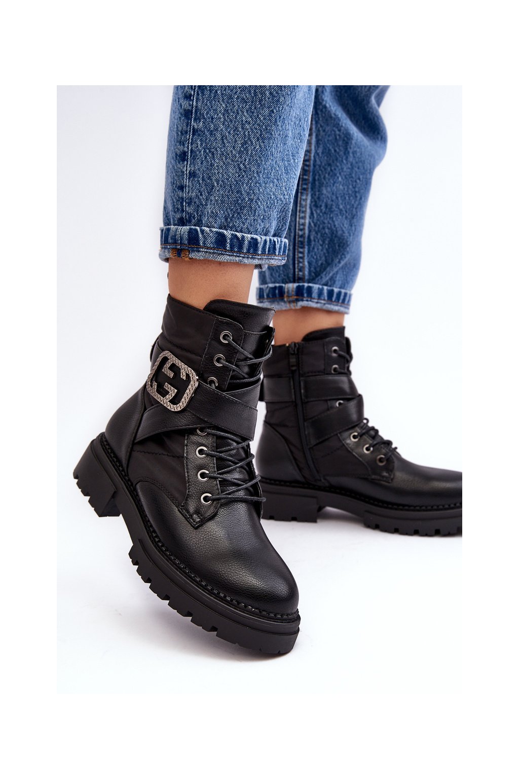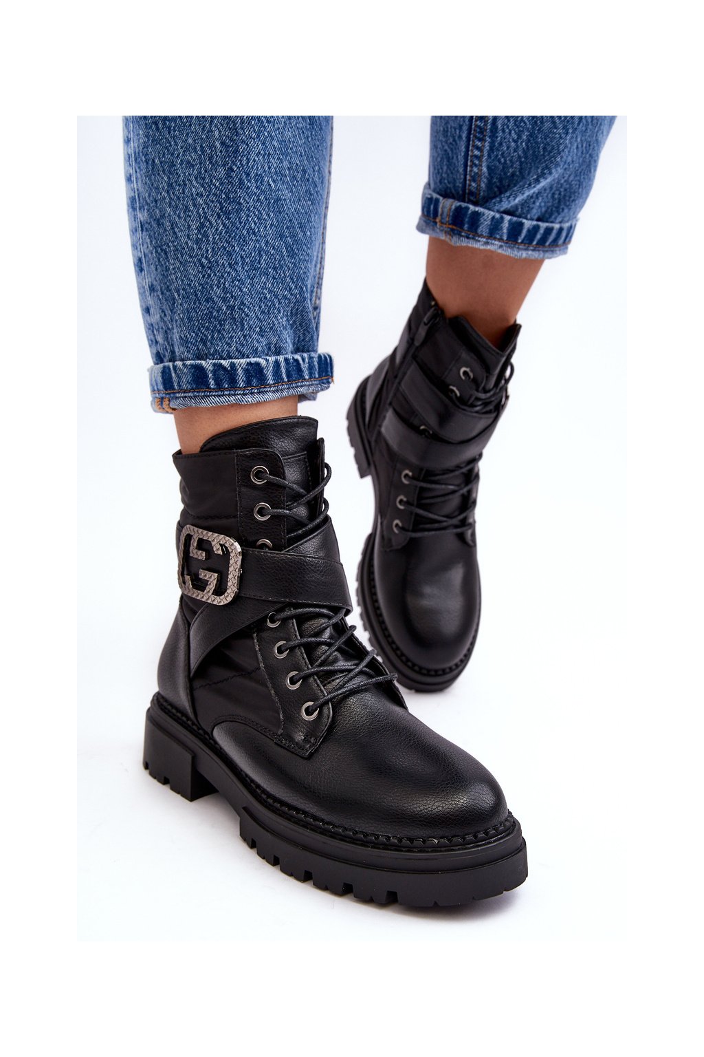 Kožené Černé Botky Workery S Řetízkem Gennee