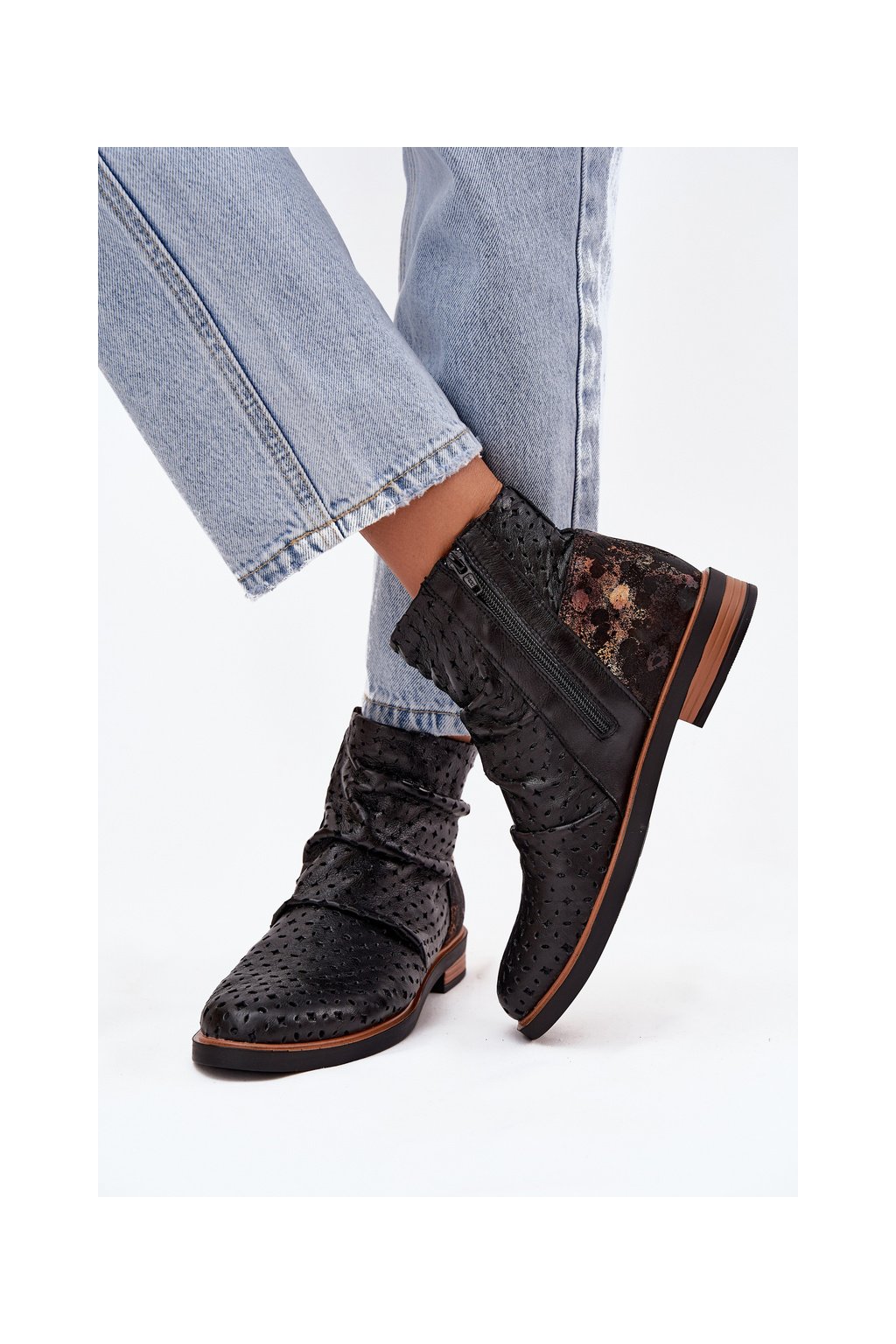 Kožené kotníkové boty s perforovaným vzorem Maciejka 05922-01 Černé (Veľkosť 36)