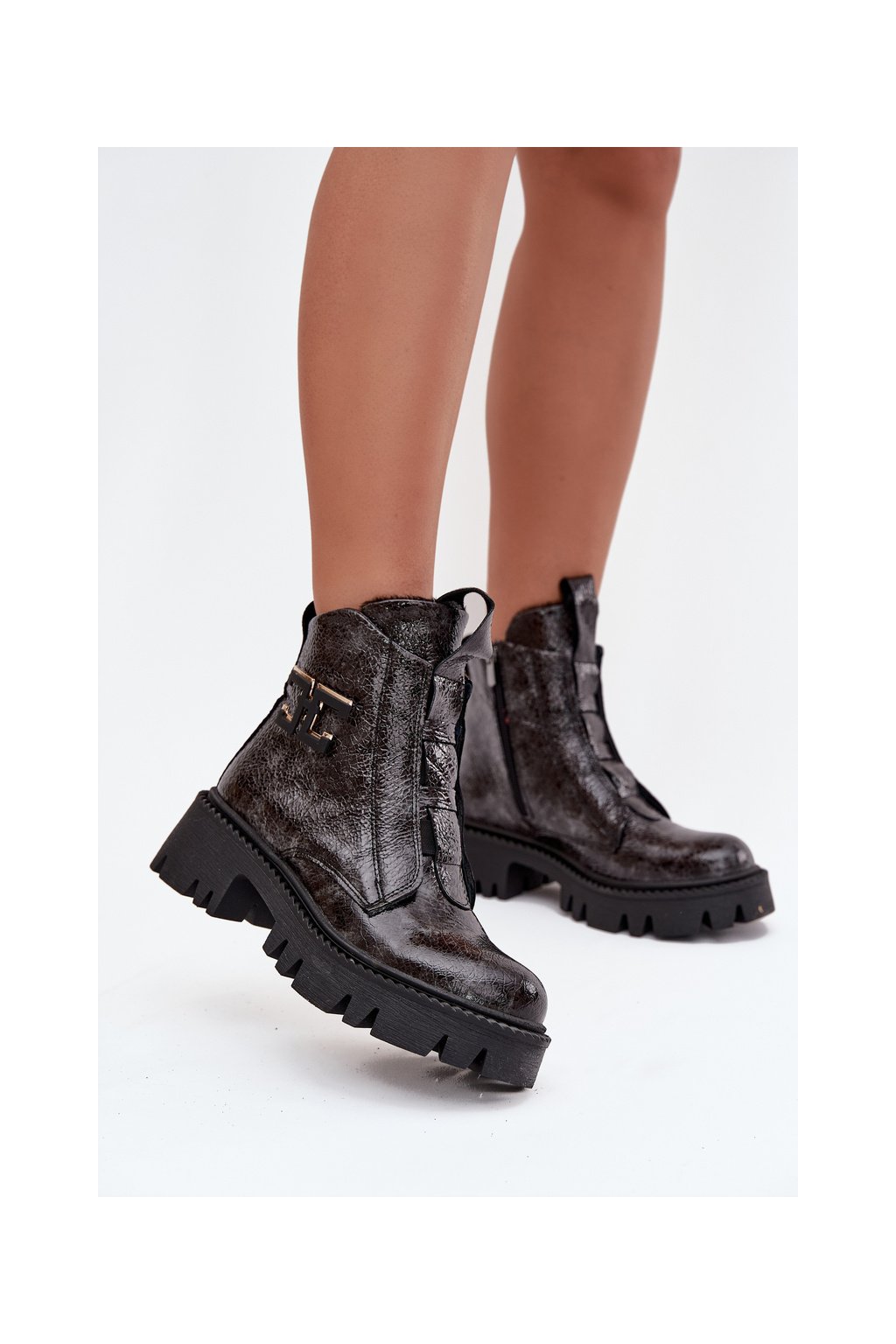 Kožené lakované dámské boty s ozdobou zateplené Artiker 57C2081 grafitové