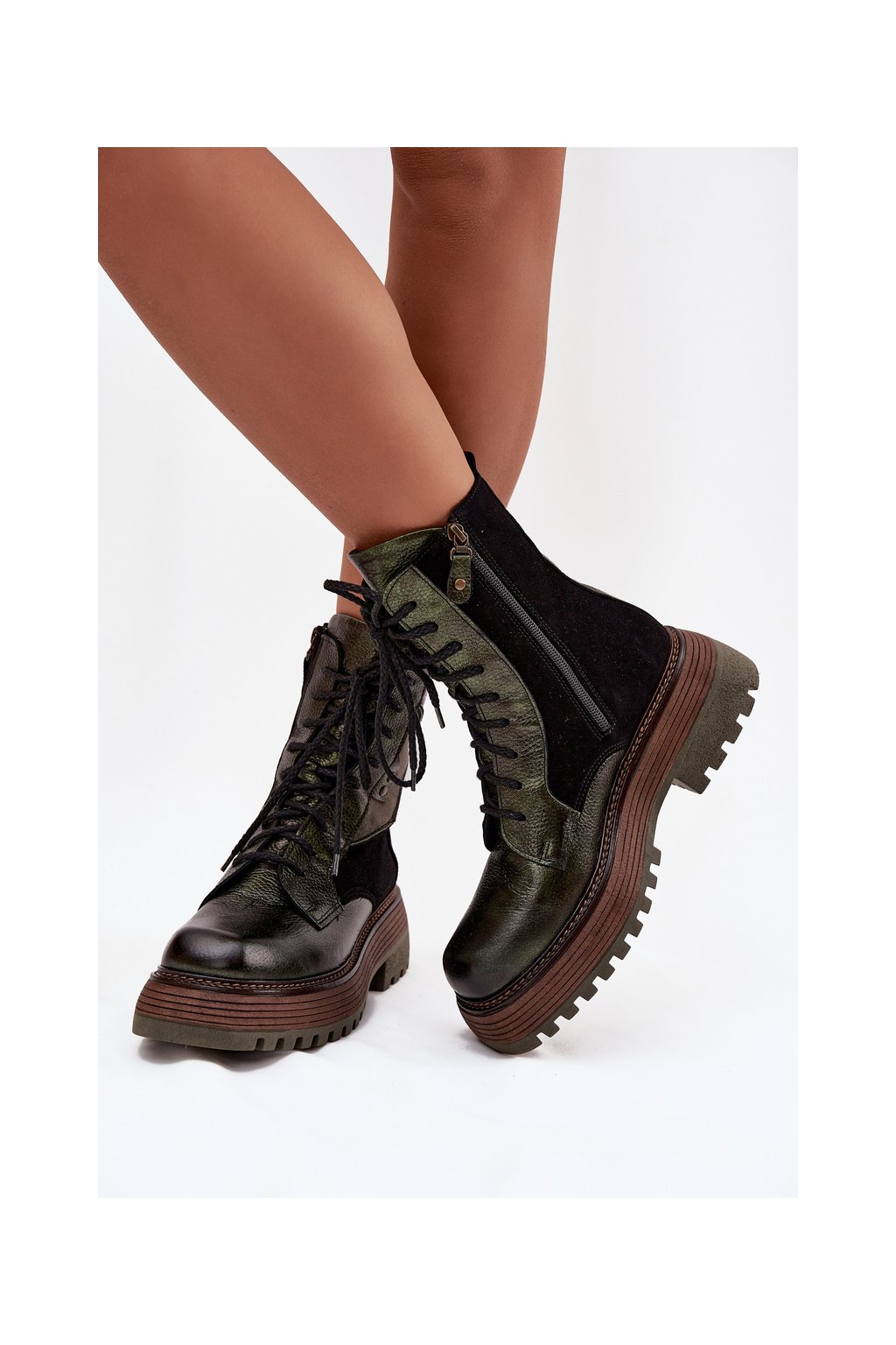 Kožené workery dámské na platformě Maciejka 07104-09 tmavě zelené