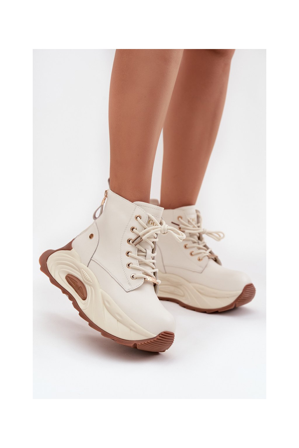 Kožené zateplené dámské kotníčkové boty na platformě GOE SS2N4300 světle béžové