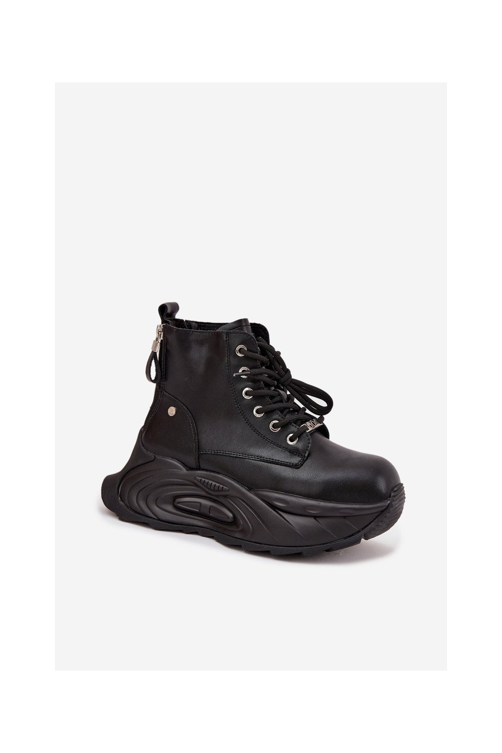 Kožené zateplené dámské kotníkové boty na platformě GOE SS2N4301 Černé