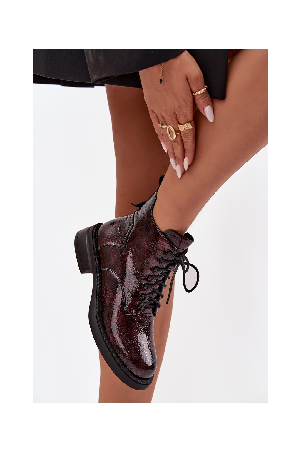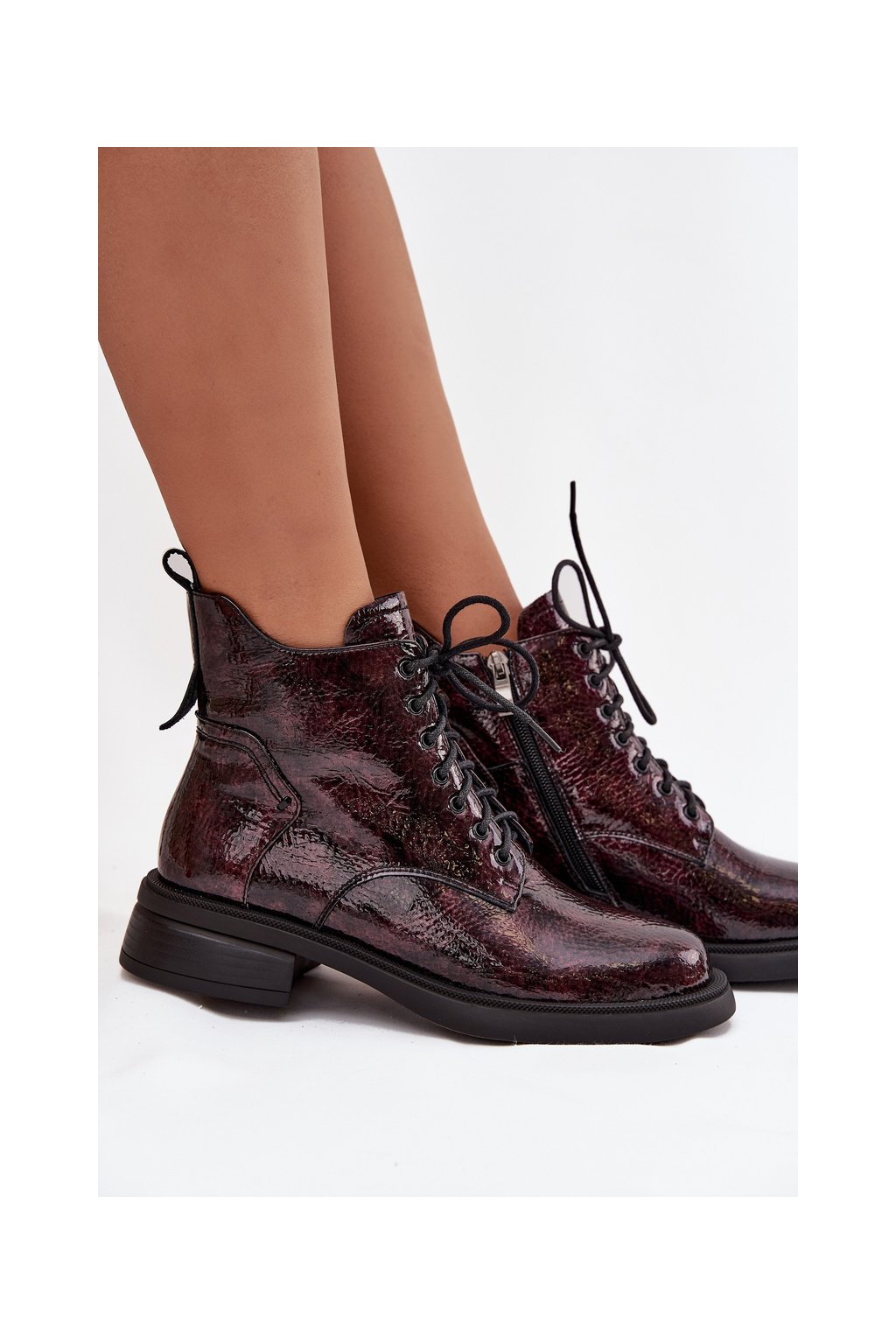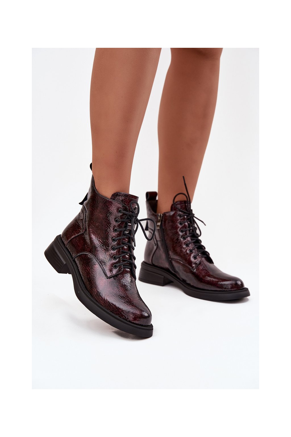 Lakované kožené dámské boty na klínu D&A LZ52-954 bordó