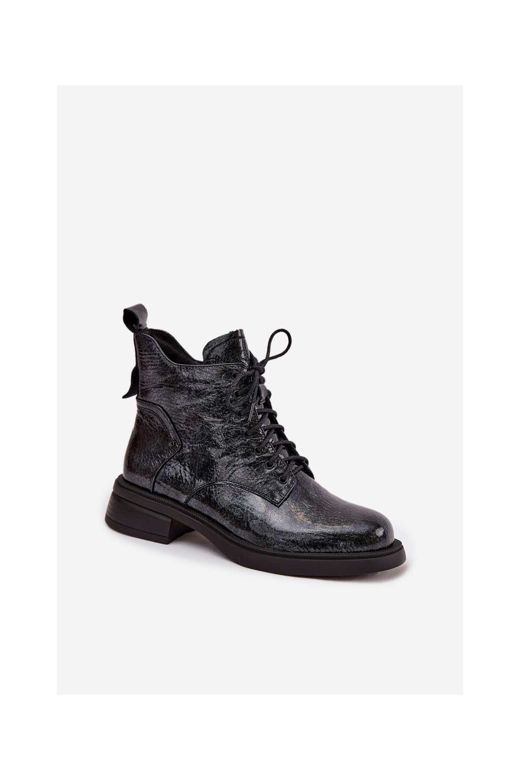 Lakované kožené dámské kotníkové boty na klínu D&A LZ52-954 tmavě modré