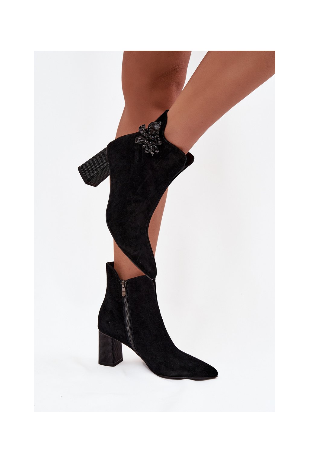 Semišové dámské boty na podpatku s ozdobou D&A CR52-686 Černé