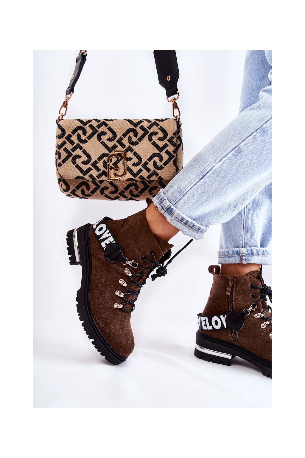 Semišové Teplé Boty S Páskem Tmave Hnědá Aurelio