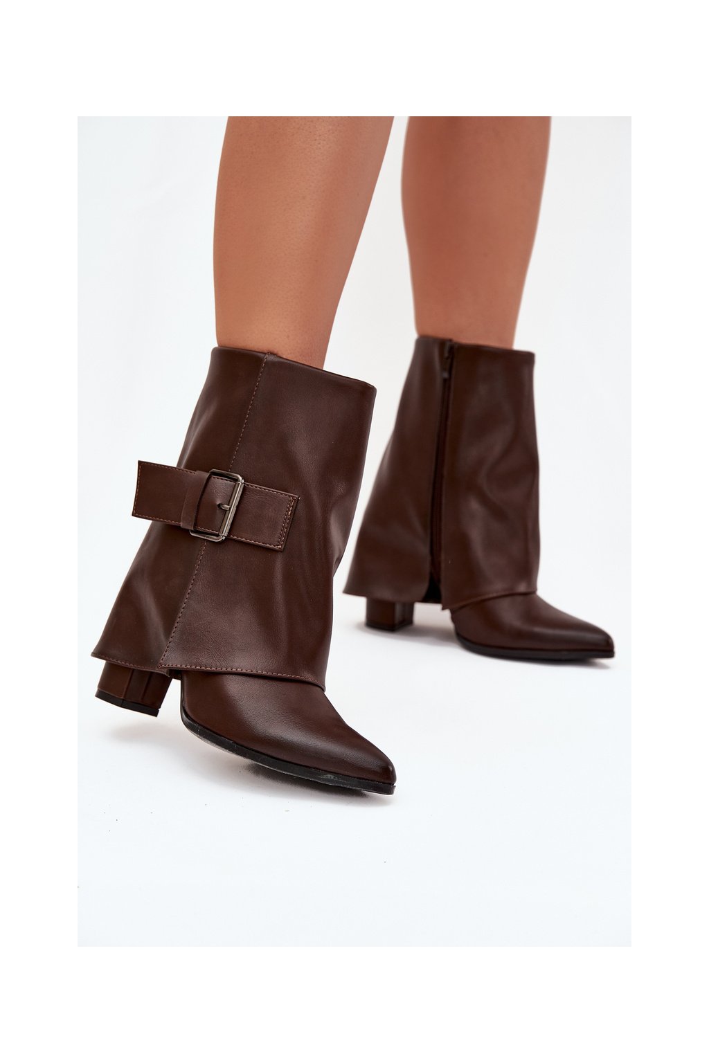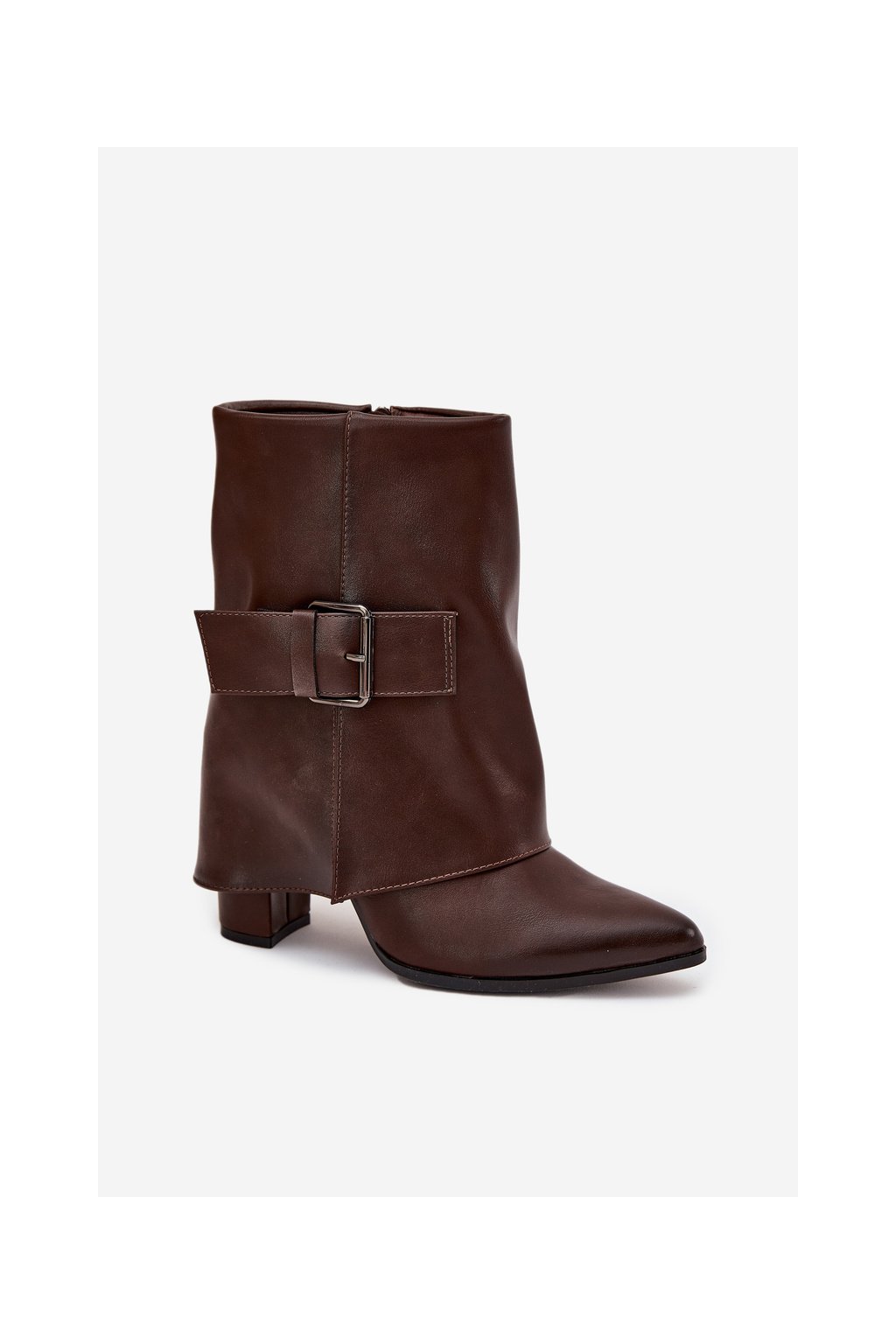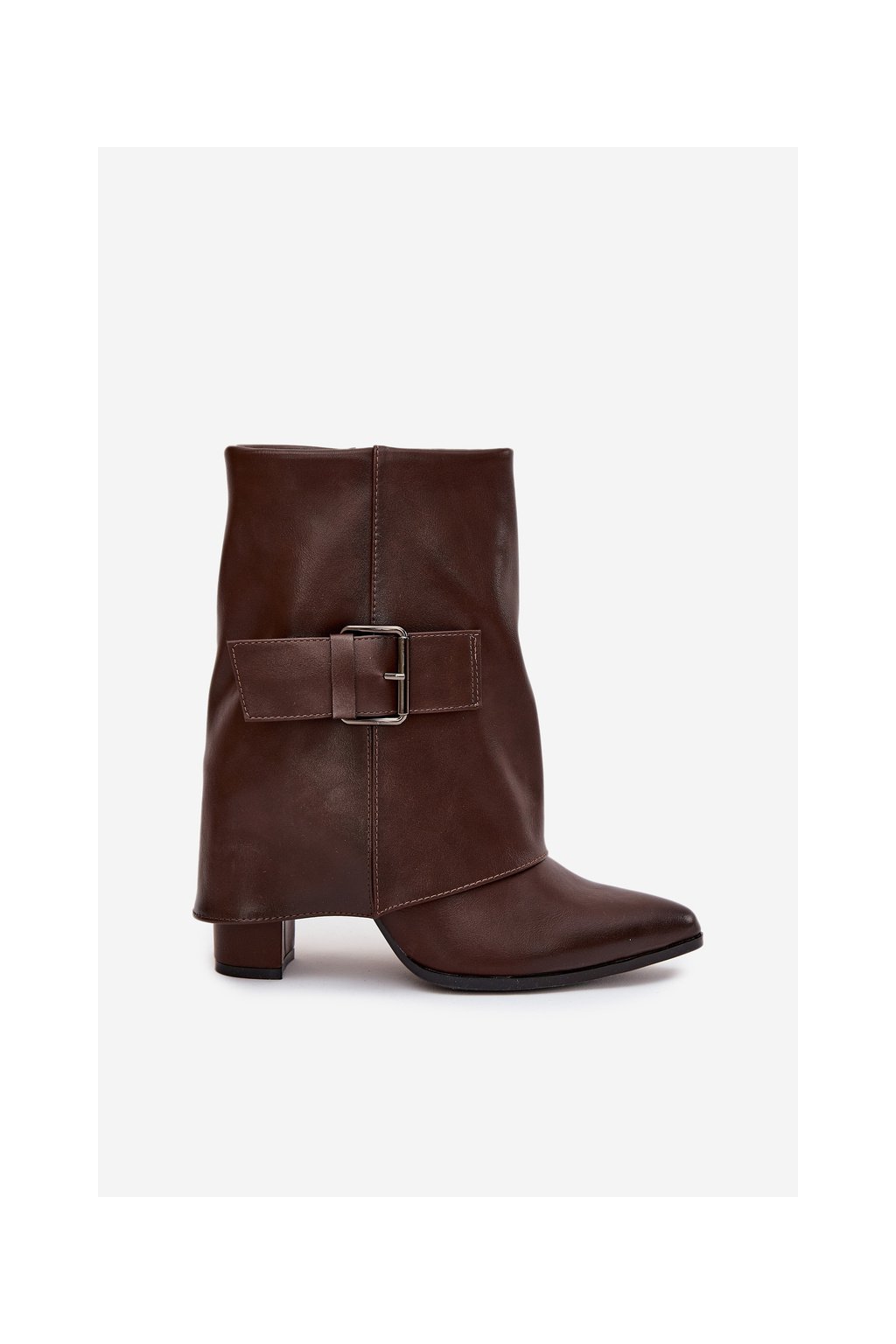 Zateplené boty na podpatku s ohrnutým svrškem a sponou hnědé Ylenara